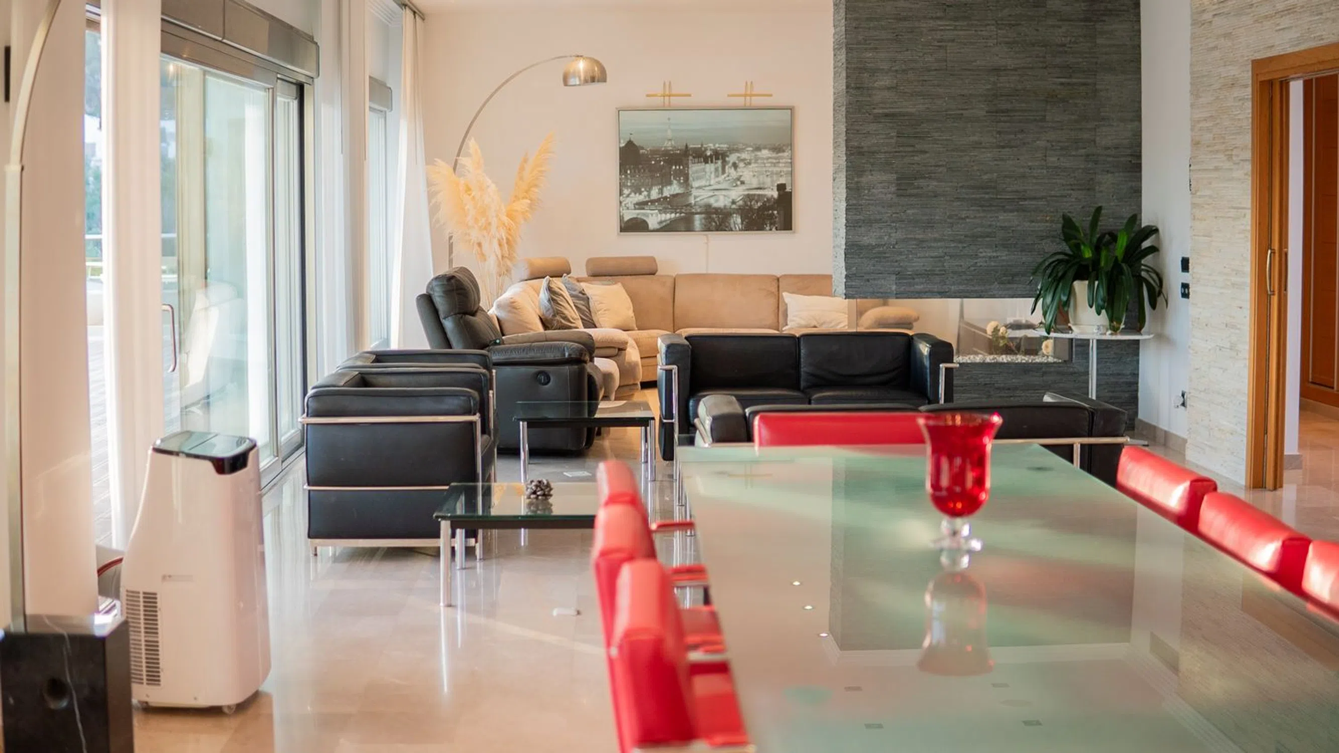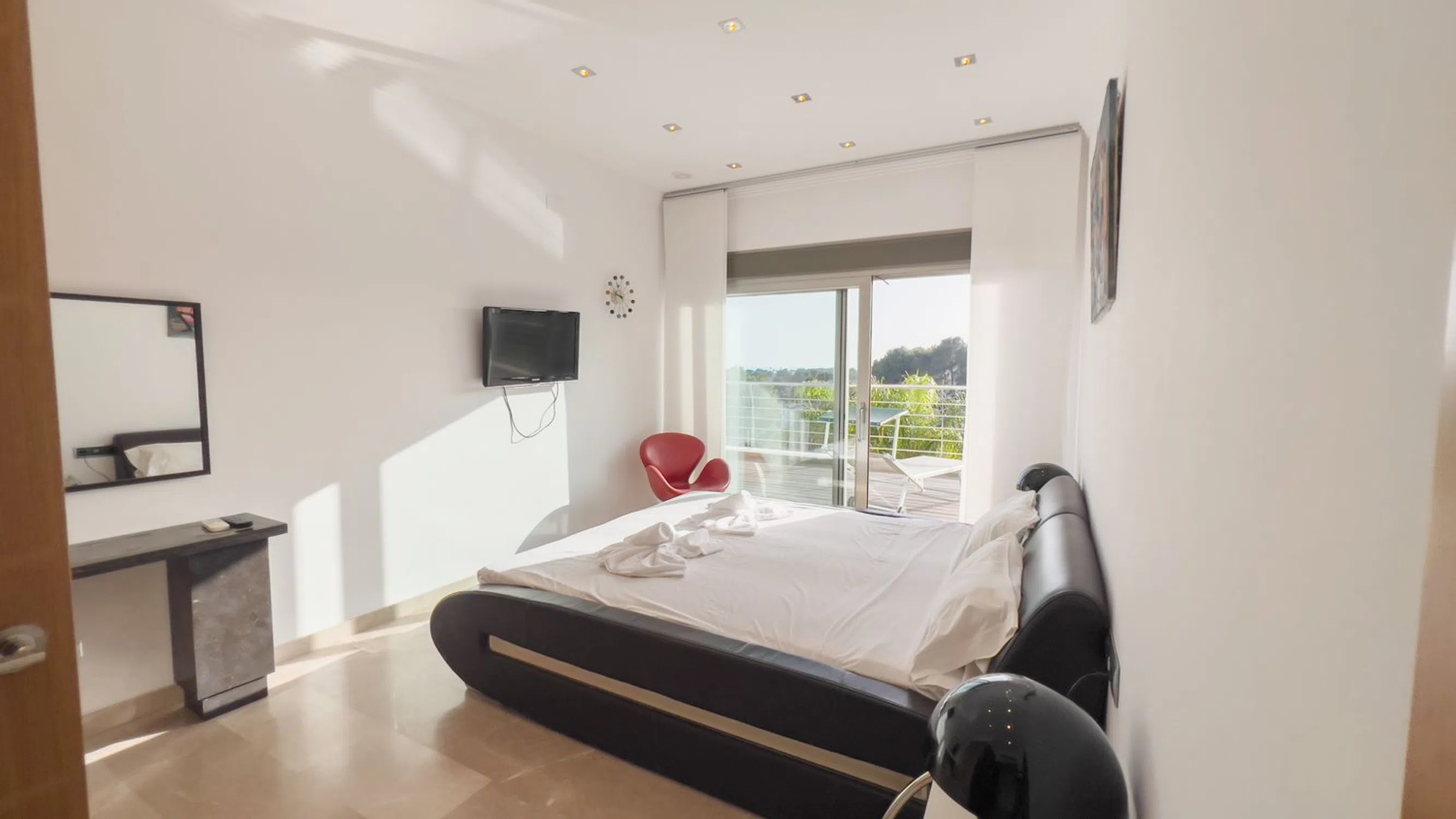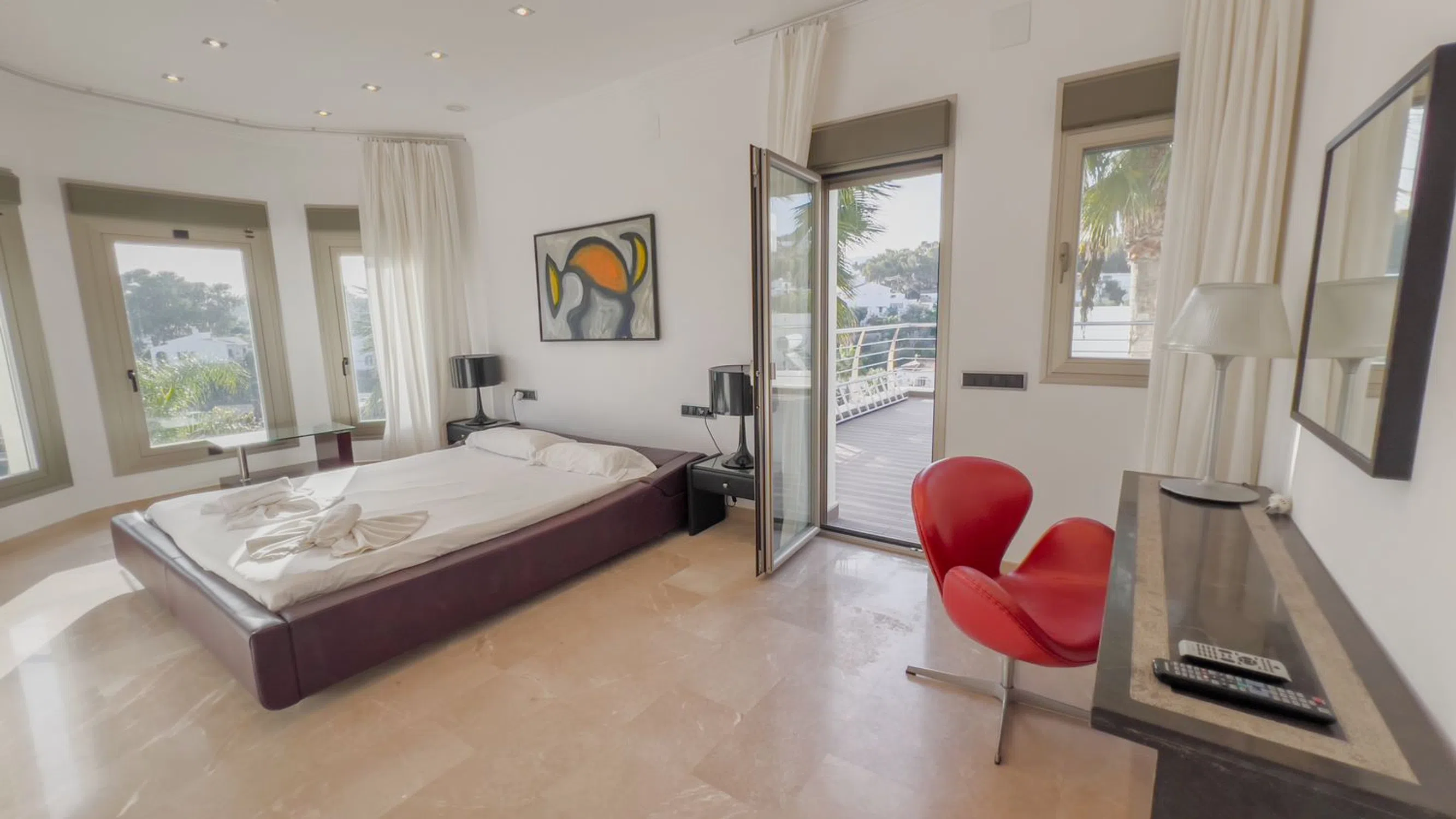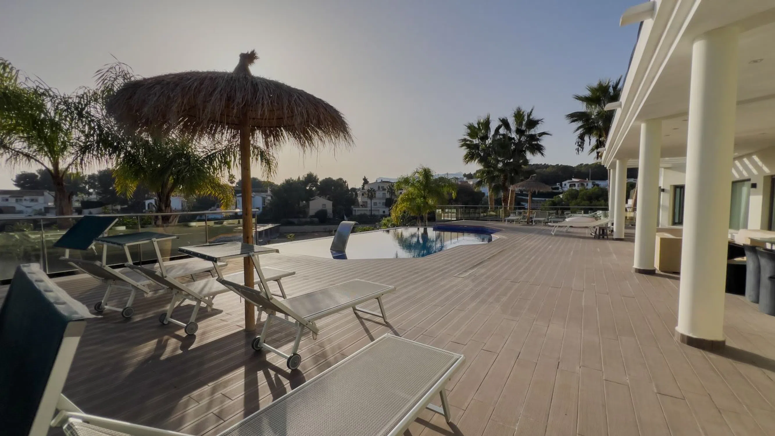 Moderna, espaciosa y lujosa mansión con vistas al mar y spa en Benissa Ubicada en la prestigiosa urbanización La Fustera, a solo 10 minutos de Calpe y 15 minutos de Moraira, esta impresionante mansión ofrece lo último en confort y lujo. Principales características: Vistas al Mar y Privacidad: Vistas panorámicas del mar Mediterráneo desde varias áreas de la propiedad. Amplios Espacios Habitables: Entrada principal con una majestuosa escalera imperial y elegantes suelos de mármol en toda la casa. Espacios Abiertos: Gran salón con tres zonas distintas: comedor formal, sala de estar y acogedora sala de TV con chimenea de gas. Oasis al Aire Libre: Amplia terraza con áreas para comer y relajarse, cocina al aire libre, piscina con jacuzzi y cascada. Instalaciones de Bienestar: Spa totalmente equipado con gimnasio, sauna, piscina cubierta y jacuzzi, ideal para relajarse durante todo el año. Listo para Entretenimiento: Elegante área de bar perfecta para reuniones o disfrutar de una copa con amigos. Apartamento Privado: Apartamento independiente con entrada propia, ideal para invitados, familia o personal. Dormitorios de Lujo: Cuatro amplios dormitorios, todos con baño en suite; el principal incluye vestidor, terraza privada y bañera. Oficina en Casa: Espacio dedicado para trabajar desde casa, con una gran terraza y vistas impresionantes. Esta mansión está diseñada para vivir todo el año y se encuentra a solo 1,5 km de la playa de La Fustera. Para obtener más información o programar una visita, contáctenos hoy mismo. ¡No pierda la oportunidad de hacer suya esta extraordinaria propiedad!