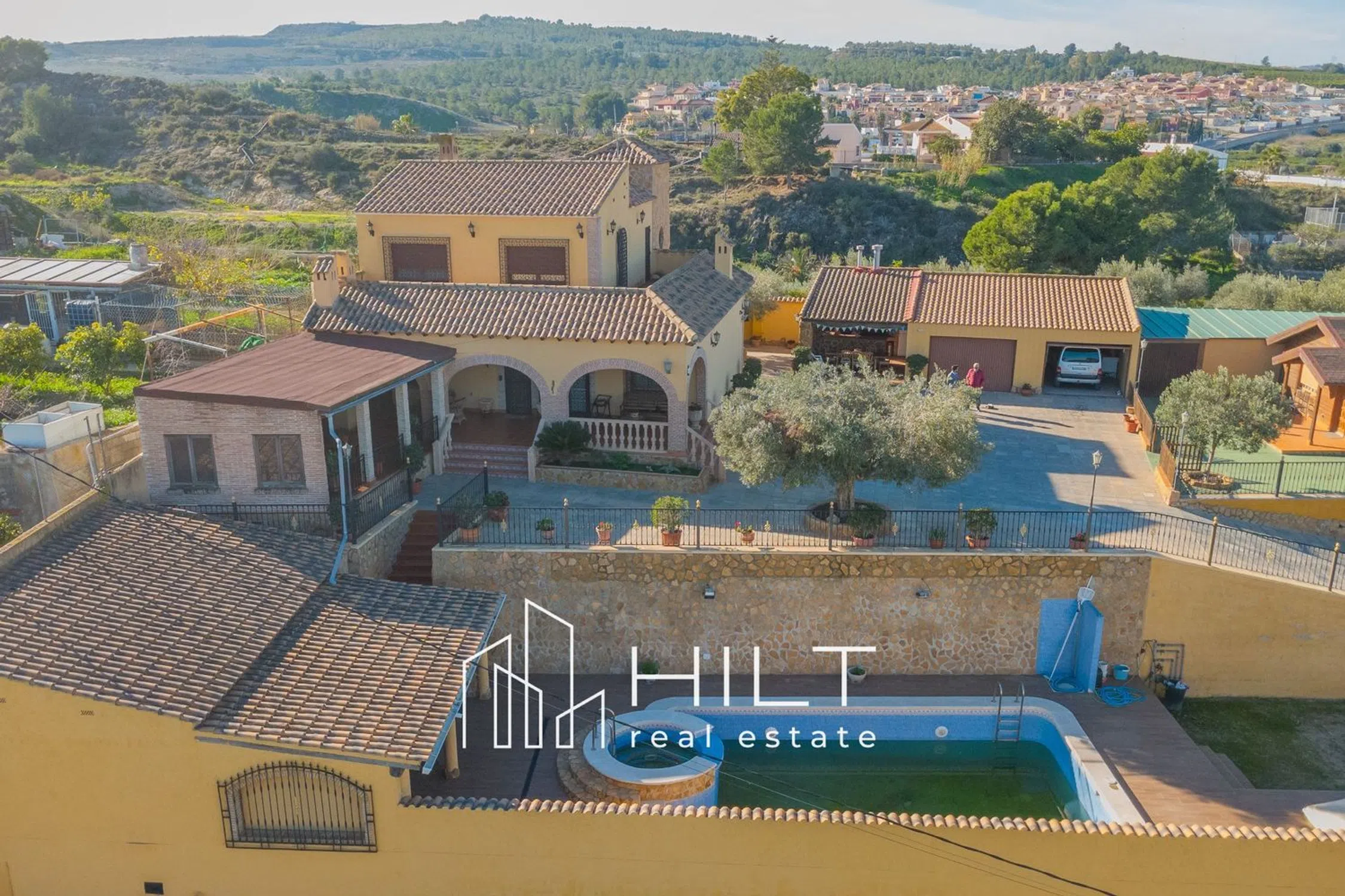Finca independiente sobre parcela de 2.500 m² con vistas abiertas a las montañas y al entorno rural de Orihuela. La propiedad cuenta con vivienda principal de dos plantas, con salón-comedor, cocina independiente, dos dormitorios (uno tipo suite en planta superior), dos baños y terrazas con vistas panorámicas. Dispone de aire acondicionado y calefacción. En el exterior ofrece piscina con jacuzzi, porches y terrazas, cocina exterior con barbacoa y horno de leña, bodega, dos garajes, zonas de almacén y casa de invitados independiente con dos dormitorios y baño. Propiedad amplia y versátil en entorno tranquilo, ideal como vivienda habitual o segunda residencia. [IW].