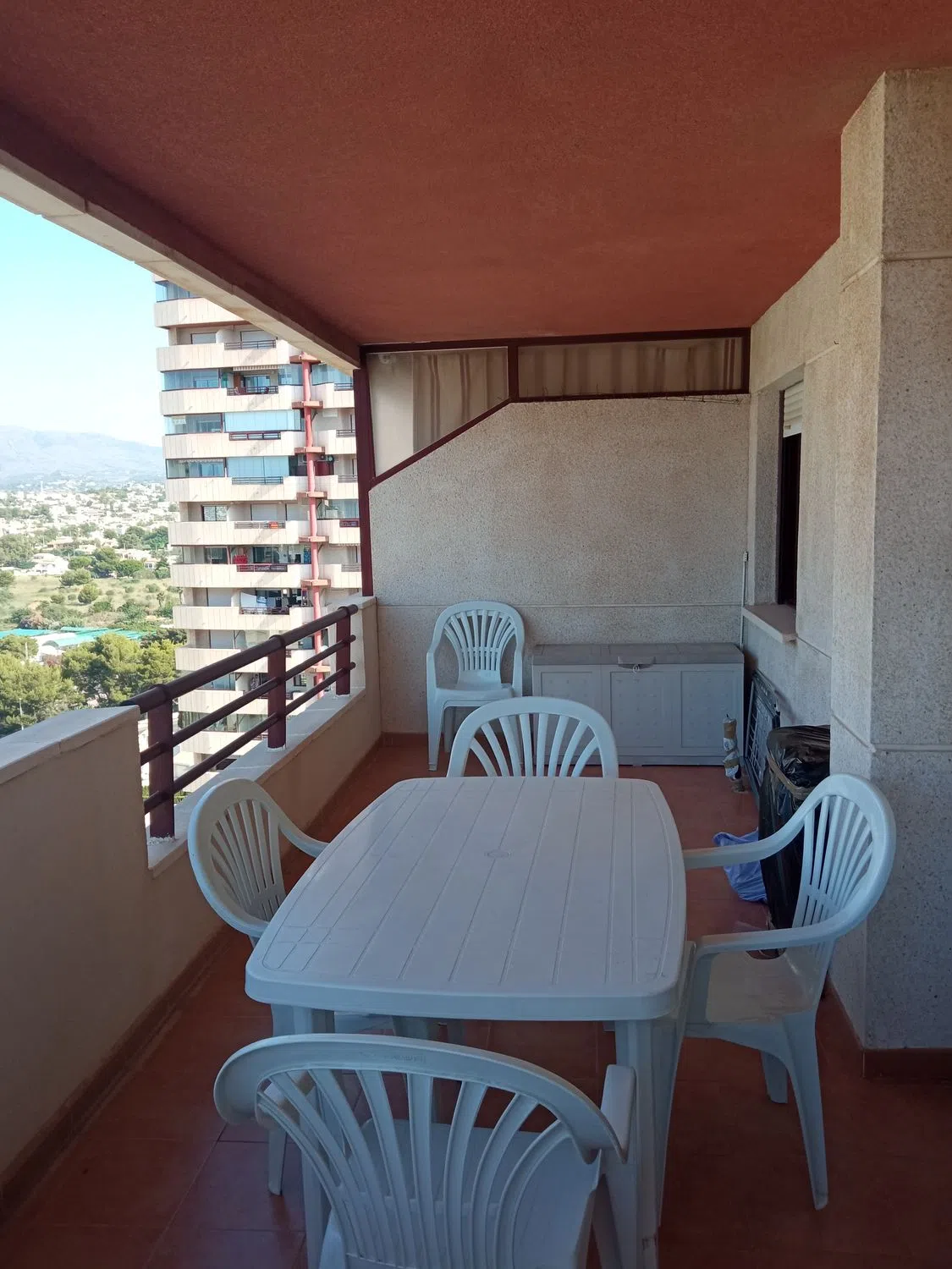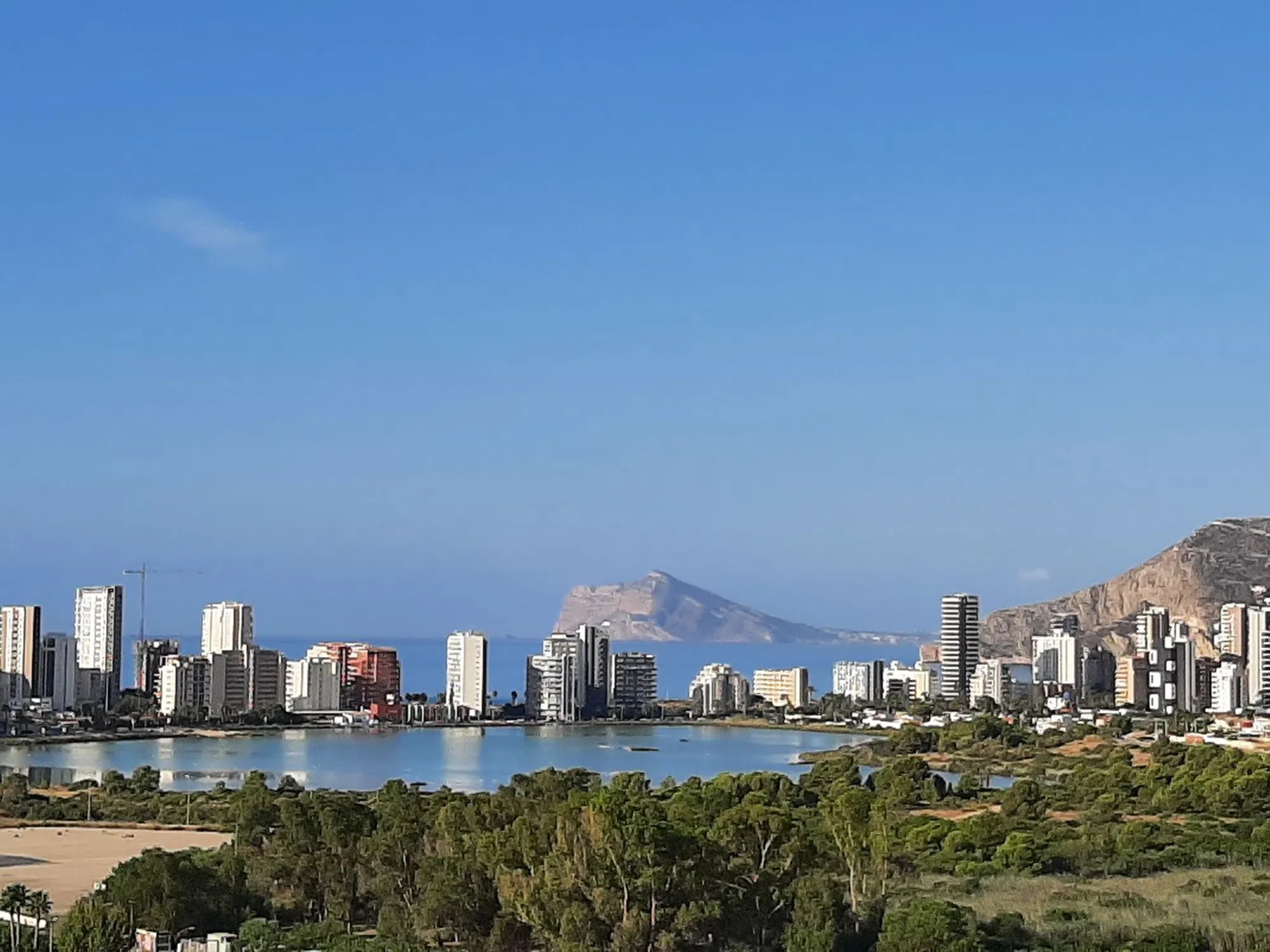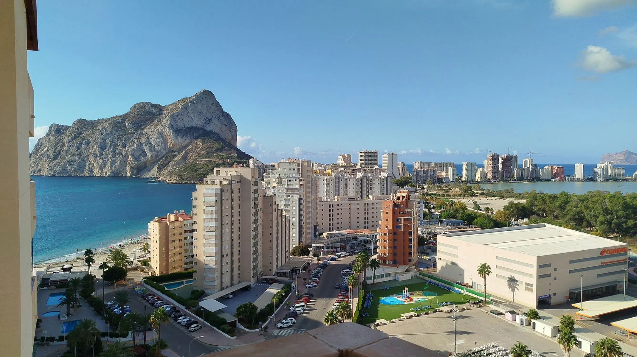 Luminoso apartamento en planta alta, a un paso del mar, con espléndidas vistas panorámicas de todo el entorno de Calpe (ver las fotos desde el exterior desde la terraza). Completamente equipado está formado por un dormitorio con armario empotrado, gran salón-comedor, cocina americana, cuarto de baño y estupenda terraza de 16 metros cuadrados, con orientación Oeste y Sur, desde la que se disfrutan las mejores vistas: el Peñón de Ifach, la playa de la Fossa, Salinas de Calpe…, y a lo lejos el perfil de El Albir, la Sierra Gelada y las torres de Benidorm. El complejo Coral Beach en que se encuentra dispone de todo lo necesario para disfrutar de las mejores vacaciones o para una residencia prolongada a lo largo del año: tres piscinas, gimnasio completamente equipado para uso de residentes, sala de juegos, wifi comunitario.. . y dos grandes supermercados a menos de 100 metros. La propiedad se vende amueblada. Abstenerse Agencias.