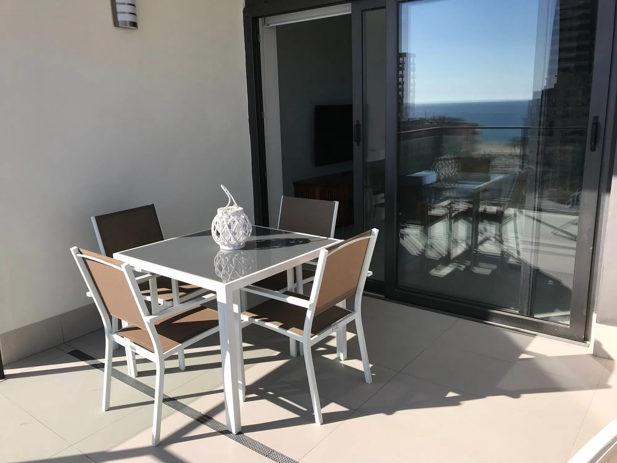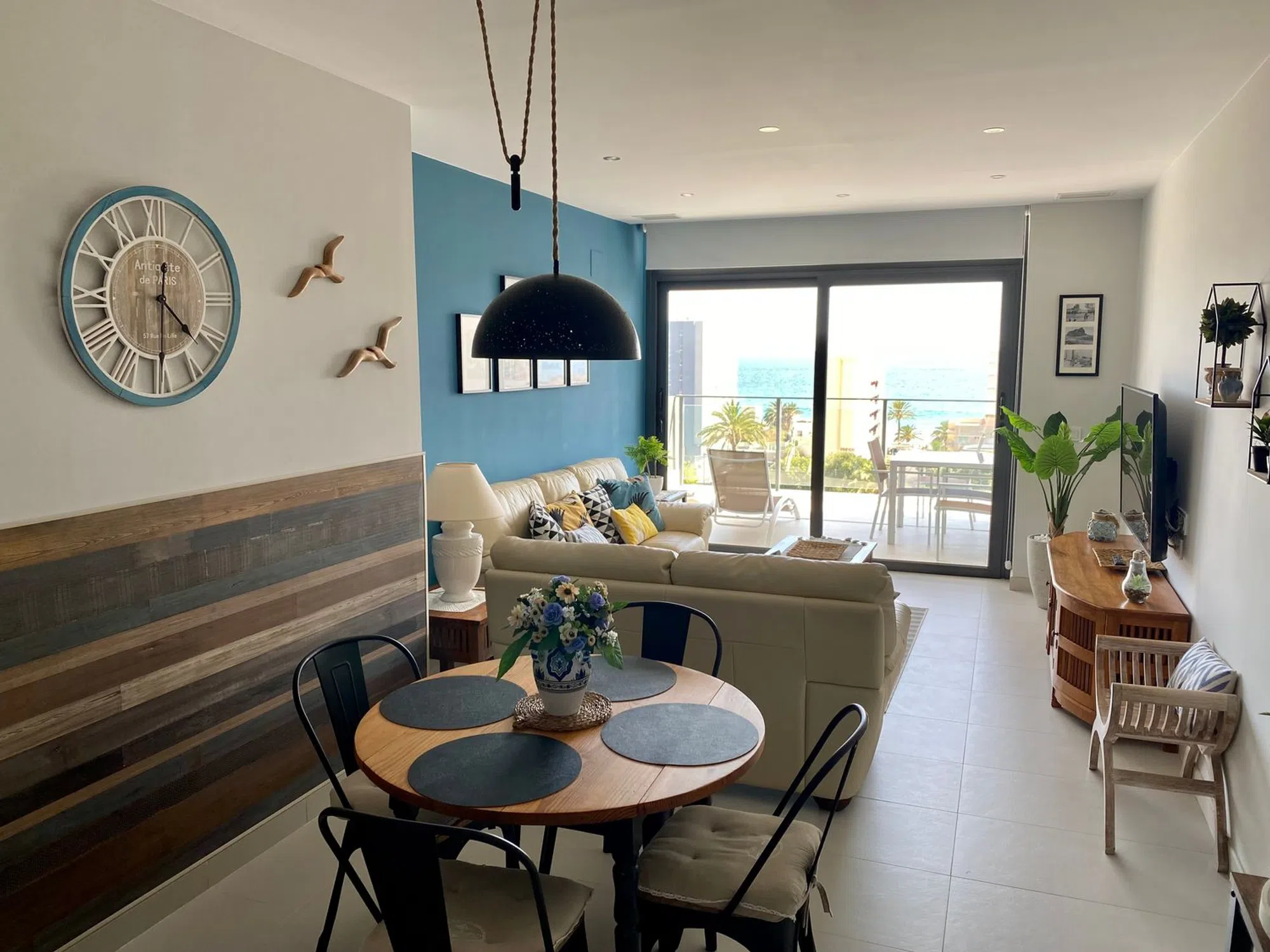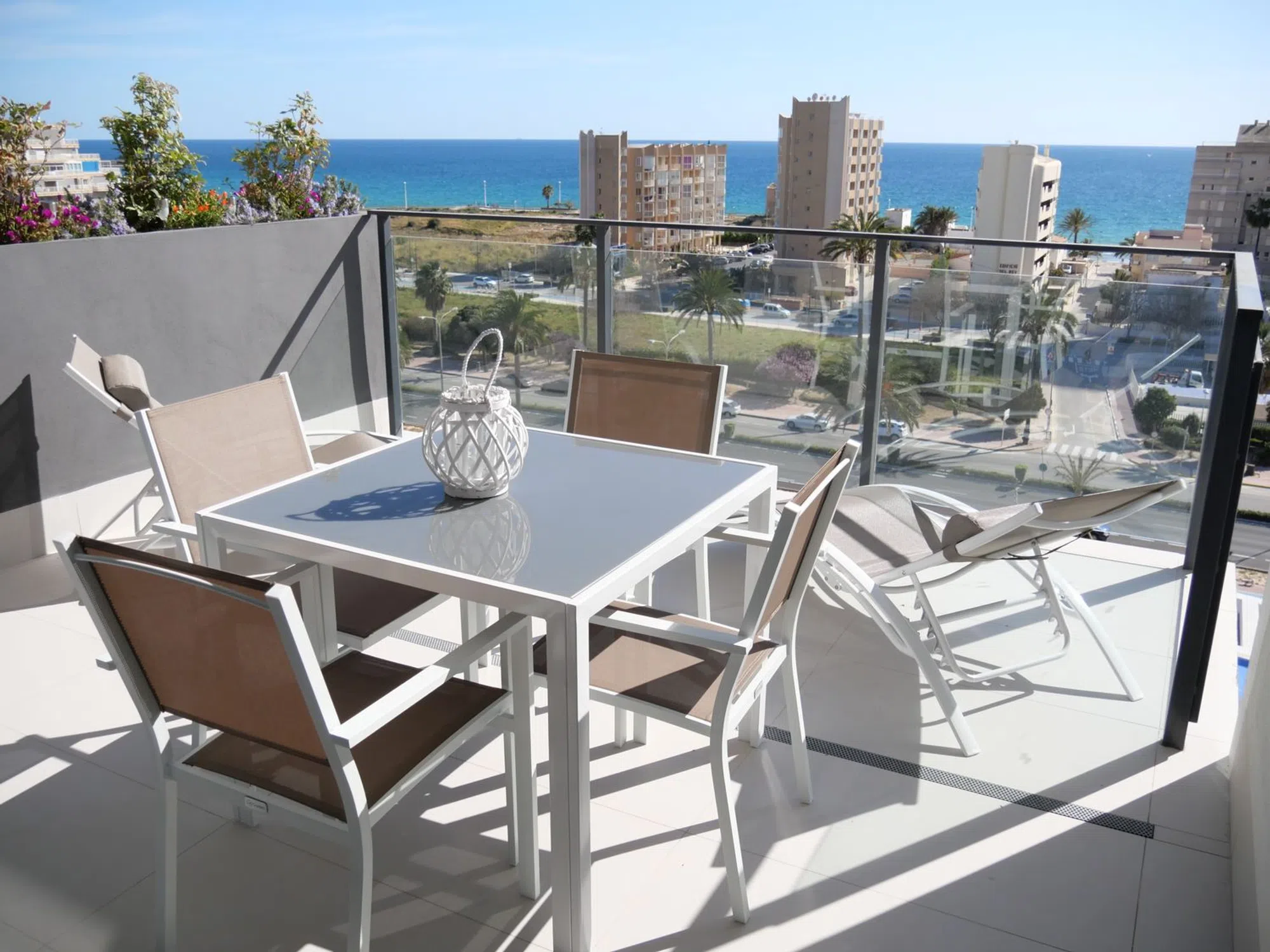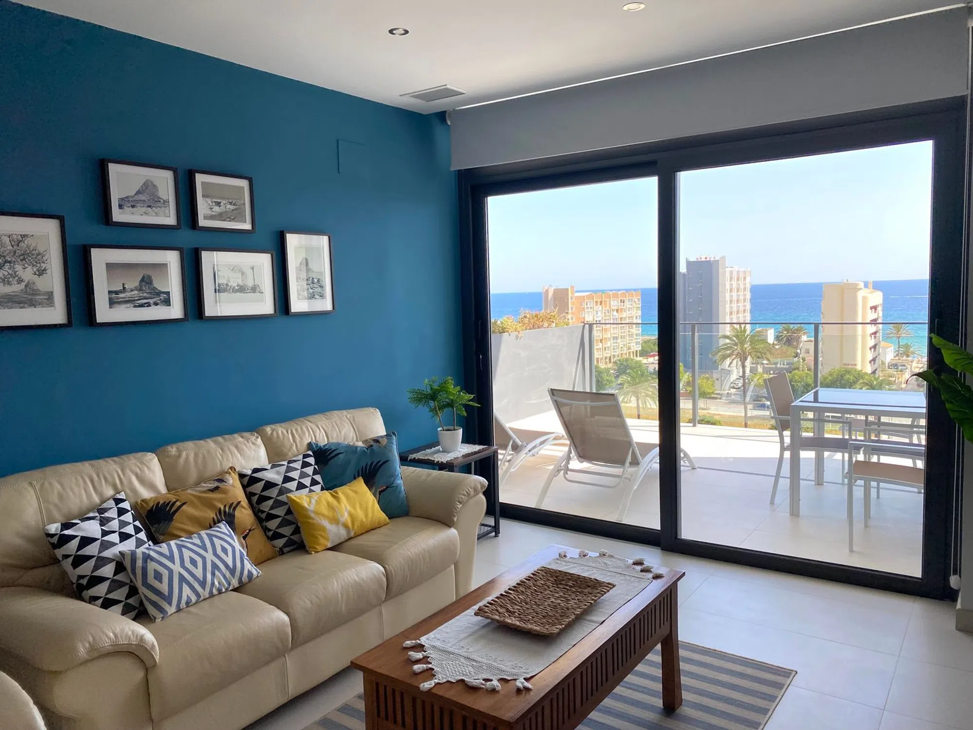 Apartamento muy reciente de 85m2 con una gran terraza de 18m2 con magníficas vistas al mar, la salina y el Peñón de Ifach. Está en perfecto estado, consta de una entrada, una cocina totalmente equipada, un salón-comedor con acceso a la preciosa terraza, dos dormitorios, uno de ellos principal con baño privado y acceso a la terraza, otro dormitorio con vistas a la montaña, un segundo baño común al apartamento, un espacio detrás de la cocina para la lavadora, el sistema de calefacción y el calentador de agua. Este apartamento está perfectamente aislado térmica y acústicamente, está totalmente climatizado y los baños tienen suelo radiante. Dispone de fibra óptica y televisión por satélite. El apartamento se vende completamente amueblado y listo para vivir o alquilar.