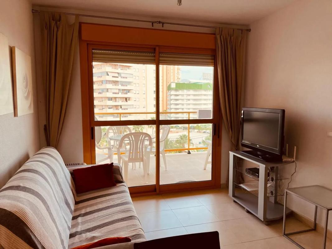 Venta de piso en Calpe, en Edificio Ambar Beach, Avenida Juan Carlos I, con bonitas vistas al mar y al Peñón de Ifach. Situado en la 5ª Planta del edificio que dispone de piscina comunitaria. Se distribuye en 1 dormitorio, 1 baño completo, salón con acceso a terraza y cocina americana completamente amueblada. El precio incluye una plaza de aparcamiento en el exterior. [IW].