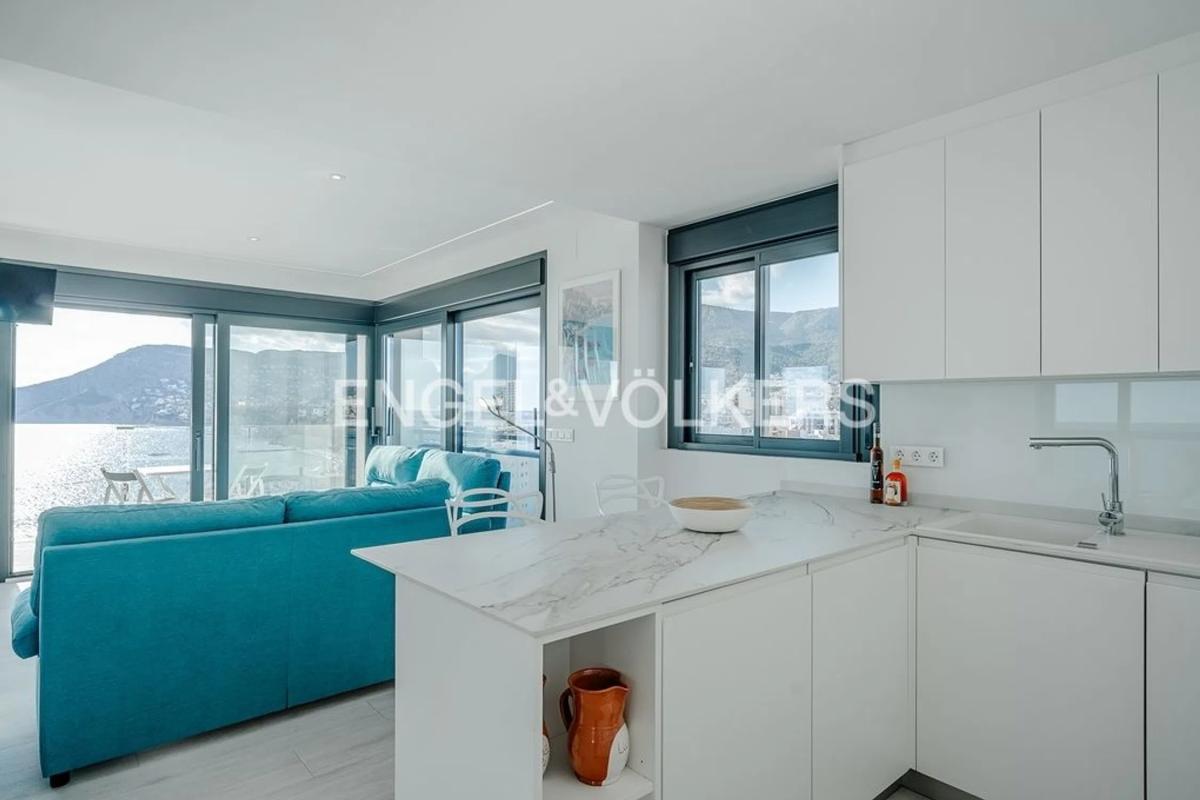 Exclusivo ático de lujo en segunda línea del mar en Calpe, con acabados de alta calidad, piscina privada climatizada y espectaculares vistas panorámicas de 360º al mar Mediterráneo y a la bahía. Una vivienda única que combina diseño contemporáneo, confort y tecnología avanzada, ideal para quienes buscan una propiedad singular frente al mar. Con una superficie construida de 208m², este ático ocupa una planta completa del edificio, garantizando privacidad y tranquilidad. Se distribuye en dos niveles diseñados para aprovechar al máximo la luz natural y las vistas. En la planta principal (14ª) se encuentra un amplio salón con cocina integrada totalmente equipada, que ofrece un ambiente elegante y luminoso con impresionantes vistas al mar. En este nivel hay también un aseo de cortesía, un baño completo, un dormitorio y una suite principal con baño privado, equipada con materiales de primera calidad y un diseño moderno y funcional. La planta superior (15ª) dispone de un espectacular solárium con piscina privada climatizada, jacuzzi exterior y un dormitorio adicional con baño en suite, perfecto para invitados. Desde esta zona se pueden contemplar los mejores atardeceres de Calpe y sus alrededores. La vivienda cuenta con sistemas de climatización de última generación: suelo radiante en ambas plantas, bombas de calor Daikin y sistema de extracción de CO₂ para una ventilación óptima. Los acabados destacan por su calidad: cerámica Saloni, encimera de Silestone, grifería Grohe y carpintería exterior de aluminio color antracita con doble acristalamiento Climalit. El edificio, de 15 plantas, ofrece zonas comunes con jardines, piscina y área infantil, creando un entorno ideal para disfrutar de la tranquilidad sin renunciar a la cercanía del mar y todos los servicios. Incluye dos plazas de aparcamiento subterráneas y un trastero. Una propiedad excepcional que ofrece el máximo confort y exclusividad en una de las zonas más privilegiadas de la Costa Blanca.