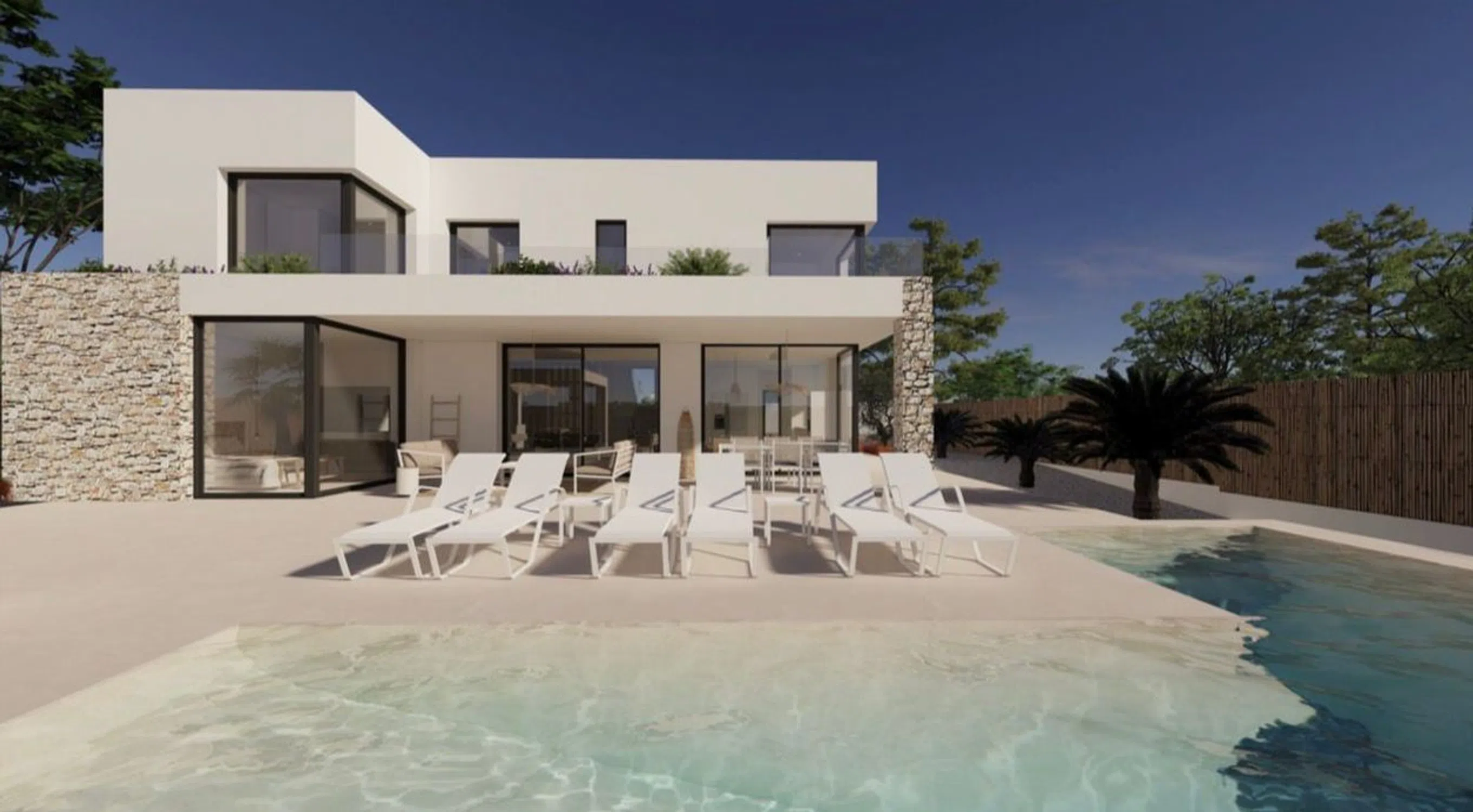 Nuevo proyecto a construir en Carrió Alto, Calpe-Benissa con vistas al mar, al peñon de Ifach y a la montaña. La villa se distribuye en dos plantas y ha sido concebida para ofrecer amplitud, confort y una cuidada conexión entre los espacios interiores y exteriores. En la planta principal, la vivienda cuenta con un amplio y luminoso salón-comedor con cocina americana, diseñado como un espacio abierto y funcional. En este nivel se ubica un dormitorio con baño en suite, además de un aseo de cortesía y lavadero independiente. La planta superior alberga dos dormitorios adicionales, ambos con baño privado, y da acceso a una gran terraza desde la que se disfrutan vistas panorámicas y privilegiadas, que se extienden desde el Peñón de Ifach hasta la Sierra de Bernia. En el exterior, la villa ofrece un cuidado conjunto de espacios pensados para el disfrute al aire libre: porche cubierto, amplias terrazas, solárium y una espectacular piscina infinita. En la parte delantera de la parcela se dispone además de una zona de aparcamiento con pérgola para dos vehículos. La vivienda presenta un diseño moderno y contemporáneo y está equipada con calefacción por suelo radiante y aire acondicionado, garantizando el máximo confort durante todo el año. Los acabados son de alta calidad, con suelos porcelánicos, carpintería exterior de aluminio y detalles en piedra natural en fachada, que aportan elegancia y carácter. La parcela goza de vistas al mar y se sitúa en una ubicación privilegiada, a tan solo 800 metros de la Cala de la Fustera y a 1,5 km de la Playa de la Fossa. Cuenta con fácil acceso a la carretera principal, lo que permite una conexión rápida con todos los servicios y comodidades de la Marina Alta.