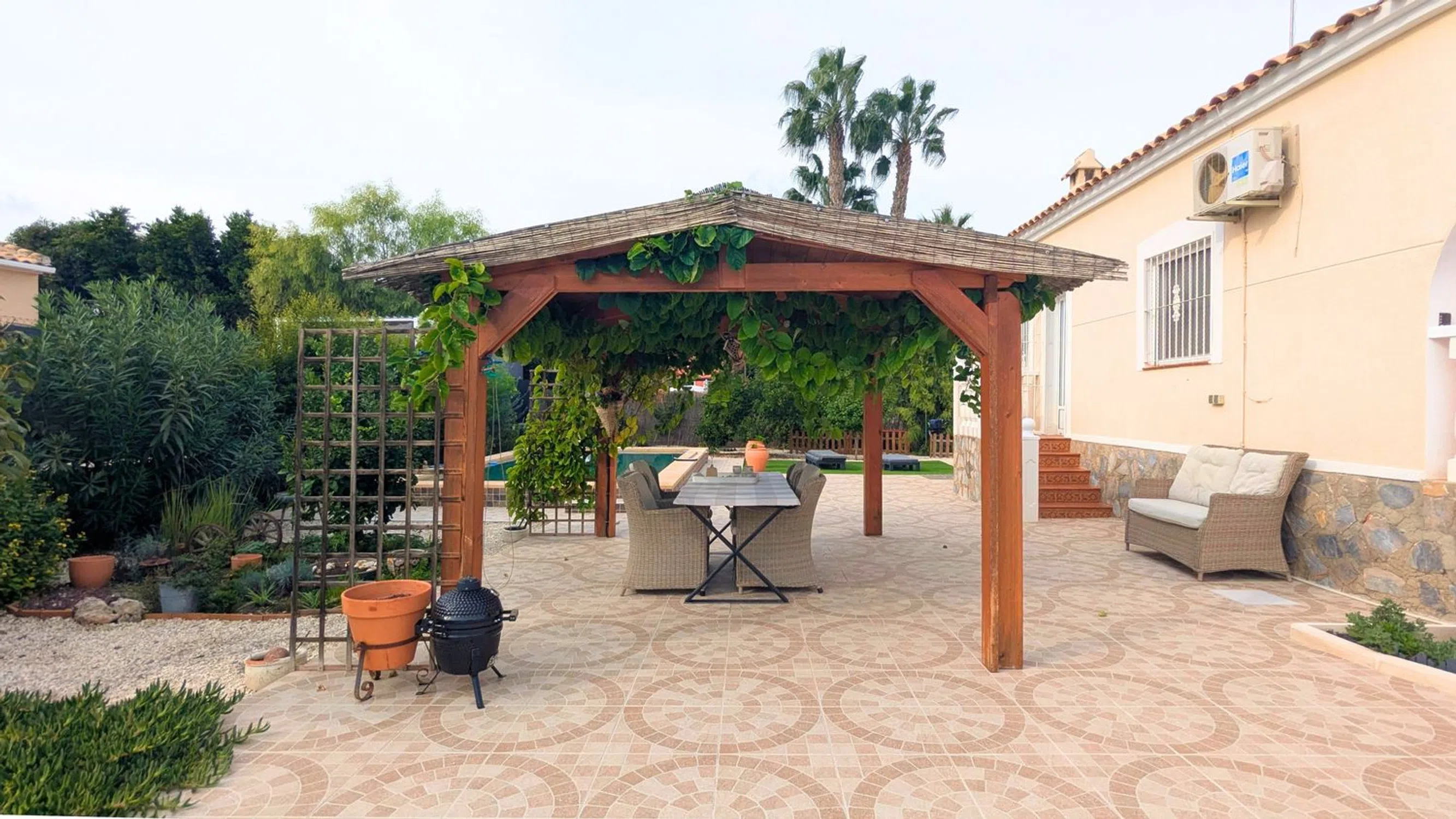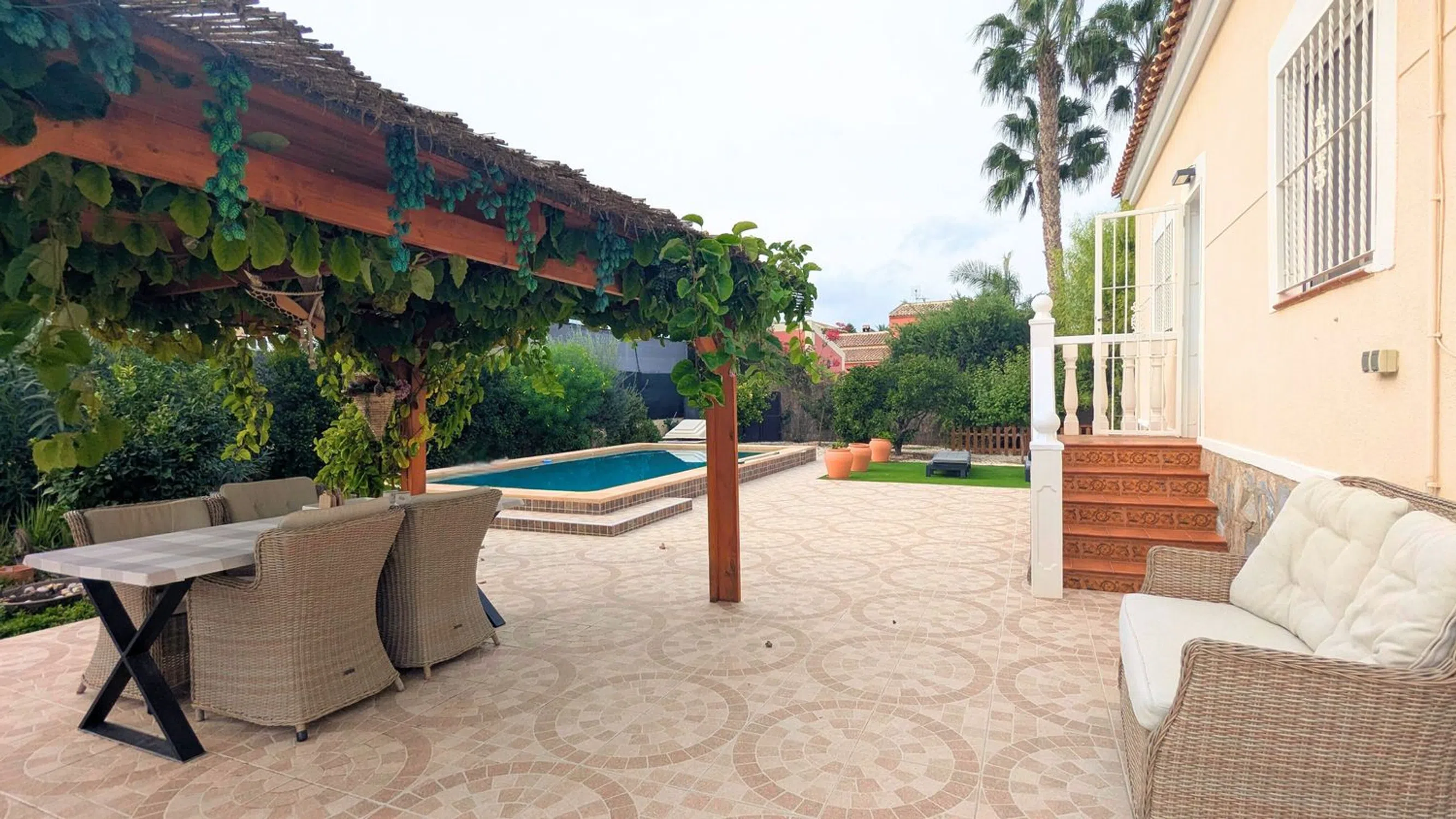 Presentamos este encantador chalet independiente en la zona de Catral: una casa bien cuidada y acogedora que ofrece comodidad, privacidad y la esencia de la vida mediterránea. Sumérjase en la comodidad mediterránea con esta hermosa villa independiente construida en 2005, que ofrece la combinación perfecta de privacidad, espacio y estilo. Ubicada en una generosa parcela de 1.000 m², esta encantadora casa cuenta con una superficie construida de 115 m² y cuenta con 3 dormitorios y 2 baños. El luminoso y acogedor interior de la villa se abre a una encantadora terraza cubierta, ideal para relajarse o cenar al aire libre mientras disfruta de las vistas al jardín y las palmeras. La piscina privada invita a refrescarse en los cálidos días de verano, mientras que las dos casas de jardín ofrecen espacio de almacenamiento adicional o espacio de trabajo creativo. Disfrute del sol desde la terraza de la azotea, donde podrá contemplar vistas panorámicas del tranquilo entorno. Ubicada en una tranquila zona residencial, la villa se encuentra a poca distancia de todos los servicios, incluidos restaurantes, tiendas, supermercados e instalaciones médicas. Con un buen precio, esta propiedad representa una maravillosa oportunidad de poseer una casa bien ubicada, lista para disfrutar, con un espacio exterior excepcional en el tranquilo entorno de Catral. Descubra más de esta impresionante casa: contáctenos hoy para planificar su visita.