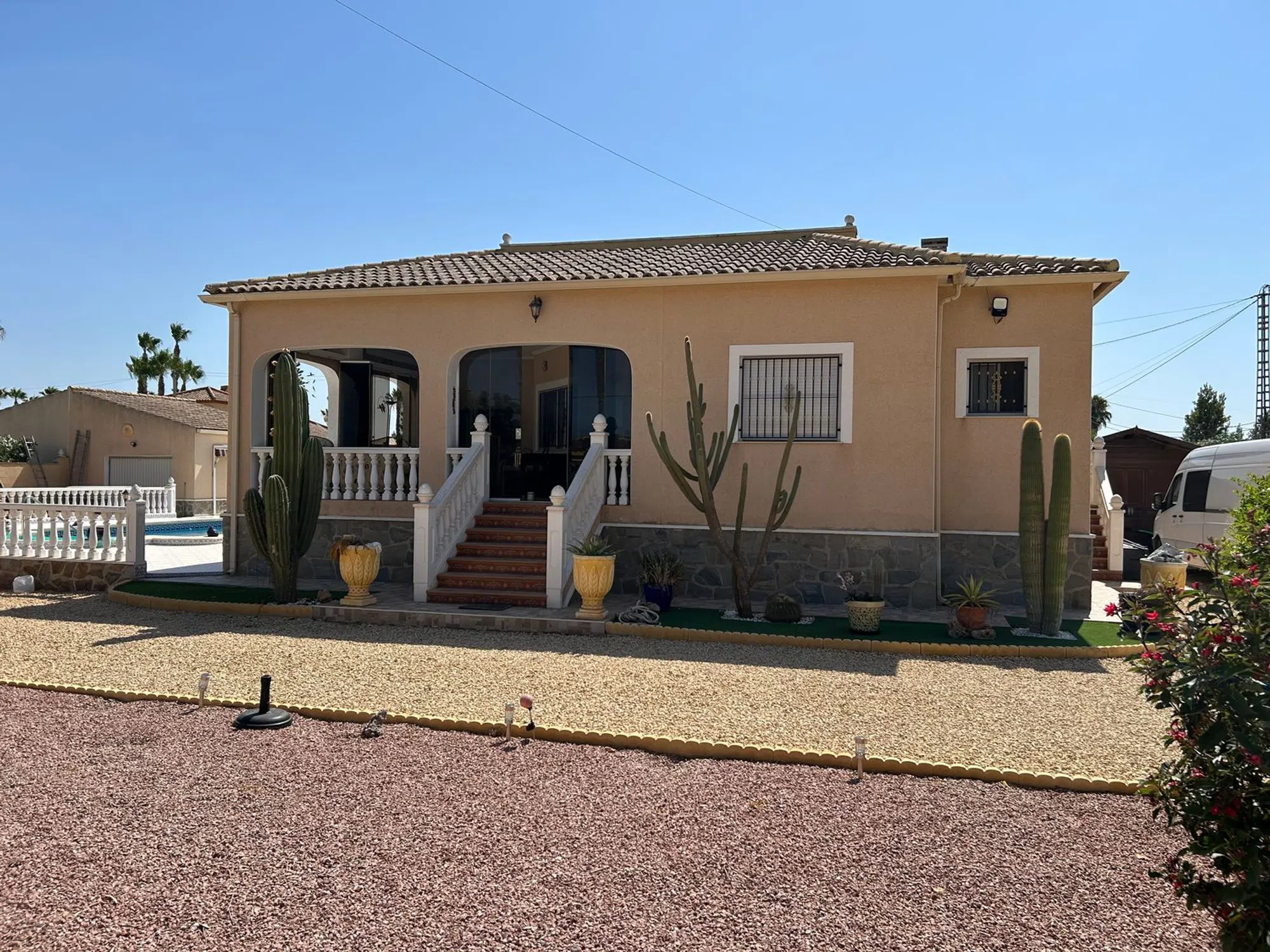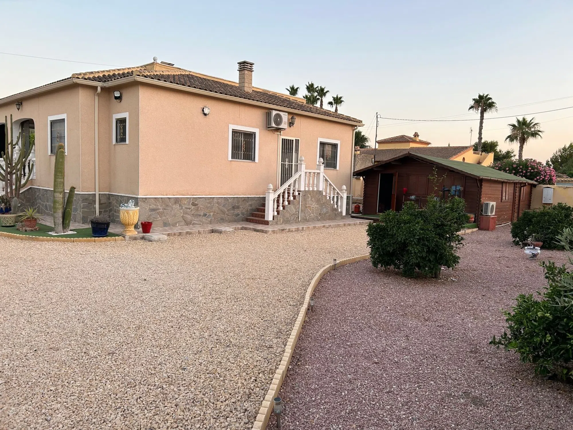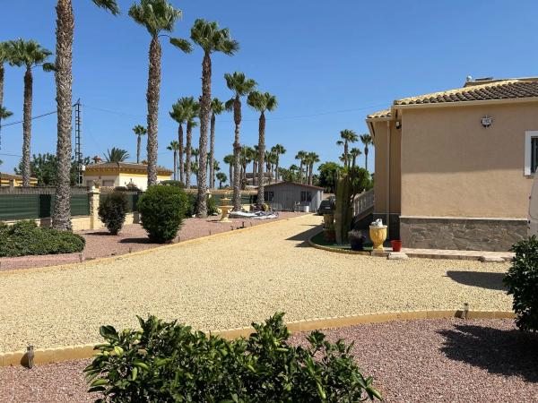 Casa unifamiliar, 1 planta, 162 m² construidos, 3 dormitorios, 2 baños, 1900 m² de terreno, terraza, parking, buen estado, armarios empotrados en dos de los dormitorios, lavadero, calefacción central: gas, aire acondicionado, piscina, jardín, Casa principal: 3 dormitorios dobles grandes (el principal con un gran baño con ducha) 2 baños (1 en suite) Salón grande Comedor Gran terraza con cortinas de cristal Cocina totalmente equipada Totalmente calefacción central Mosquiteras en todas las ventanas Se vende completamente amueblado, listo para entrar a vivir. Piscina (10 m x 5 m) Garaje grande Cocina exterior Puerta de entrada eléctrica 1900 m² de jardín con naranjos, limoneros, granados y olivos Taller grande (6m x 3.6m) más cobertizo (3m x 2m) Chalet independiente: 1 dormitorio doble de buen tamaño 1 baño con ducha de esquina Cocina pequeña Salón espacioso Totalmente amueblado, ideal como apartamento de invitados Esta es una hermosa propiedad rural a solo 5 minutos en coche del pueblo de Catral, a 25 minutos de Alicante/Santa Pola y Torrevieja, hogar permanente o refugio de vacaciones. Zona tranquila, fácil acceso y lista para entrar a vivir, completamente amueblada con todo lo que necesita.