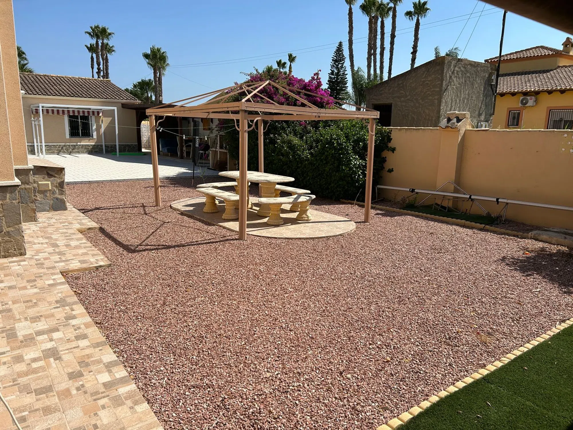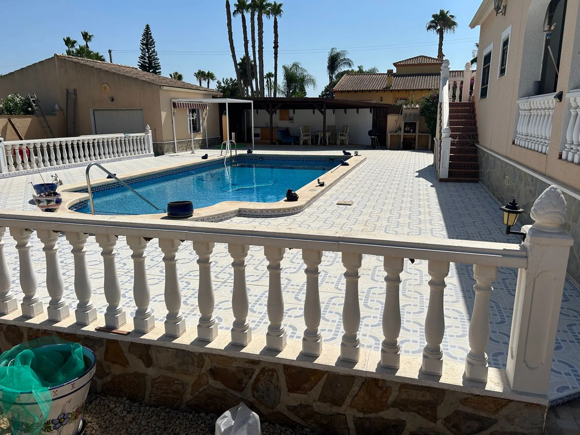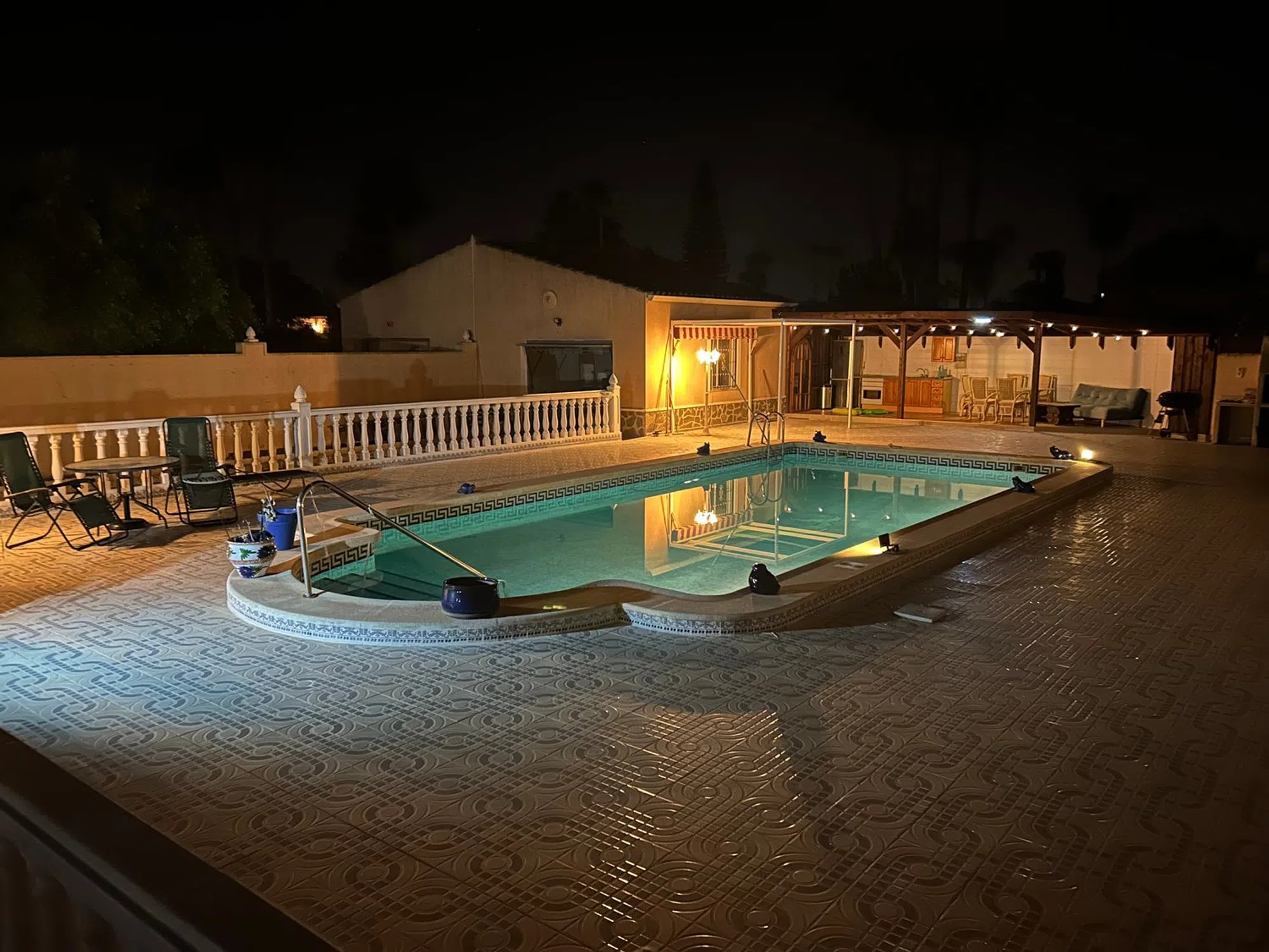 Casa unifamiliar, 1 planta, 162 m² construidos, 3 dormitorios, 2 baños, 1900 m² de terreno, terraza, parking, buen estado, armarios empotrados en dos de los dormitorios, lavadero, calefacción central: gas, aire acondicionado, piscina, jardín, Casa principal: 3 dormitorios dobles grandes (el principal con un gran baño con ducha) 2 baños (1 en suite) Salón grande Comedor Gran terraza con cortinas de cristal Cocina totalmente equipada Totalmente calefacción central Mosquiteras en todas las ventanas Se vende completamente amueblado, listo para entrar a vivir. Piscina (10 m x 5 m) Garaje grande Cocina exterior Puerta de entrada eléctrica 1900 m² de jardín con naranjos, limoneros, granados y olivos Taller grande (6m x 3.6m) más cobertizo (3m x 2m) Chalet independiente: 1 dormitorio doble de buen tamaño 1 baño con ducha de esquina Cocina pequeña Salón espacioso Totalmente amueblado, ideal como apartamento de invitados Esta es una hermosa propiedad rural a solo 5 minutos en coche del pueblo de Catral, a 25 minutos de Alicante/Santa Pola y Torrevieja, hogar permanente o refugio de vacaciones. Zona tranquila, fácil acceso y lista para entrar a vivir, completamente amueblada con todo lo que necesita.