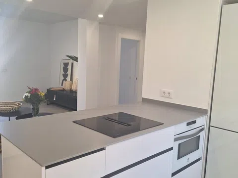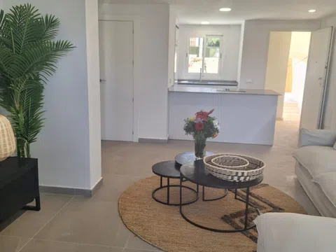 Magnifico apartamento de 2 dormitorios, 1 baño salón y cocina independiente totalmente equipada, con amplia terraza ajardinada privada junto a piscina comunitaria y zonas verdes. La Siesta es un conjunto residencial de 88 viviendas compuesto por apartamentos de 1 y 2 dormitorios con vistas al parque natural del Montgó. Todas las viviendas están construidas y acabadas con materiales de primera calidad. - Puerta de seguridad. - Recinto vallado - Ventanas de Aluminio de doble cristal - Alicatados de primera calidad - Agua caliente sanitaria producida por energía solar. - Cocina equipada con vitrocerámica, nevera, horno y microondas. -Aire acondicionado en toda la vivienda con bomba de calor. (Primeras marcas LG, Mitsubishi, etc. ) Las zonas comunitarias se componen de piscinas (adultos e infantil) y jardines, creando un bello entorno donde disfrutar del confort y el relax. Todas las viviendas son exteriores, los áticos tienen solárium de uso privado, y las plantas bajas disponen de su propio jardín privado el resto de viviendas disponen dé amplias terrazas las cuales están integradas en el salón de gran luminosidad gracias a sus amplios ventanales La Siesta ofrece todo tipo de equipamientos y servicios, desde supermercados, restaurantes y colegios a farmacias, centro de salud y hospitales, que dan respuesta a todas las necesidades de sus compradores. Esta vivienda en planta baja posee una superficie de 86,47m2 mas jardín privado. Esta compuesta por dos dormitorios, armarios empotrados en todas las habitaciones, cocina abierta con todos los electrodomésticos (nevera, horno, vitrocerámica de inducción, lavavajillas), 1 baño totalmente terminado (ducha y mampara de cristal) Terraza alicatada privada en salón y dormitorio principal, jardín privado colindante a zonas comunitarias (jardín y piscina) y una plaza de parking en el exterior. Estas modernas viviendas le permitirán vivir todo el año en una zona residencial tranquila, con todas las comodidades. También es ideal para disfrutar durante las vacaciones y fines de semana.