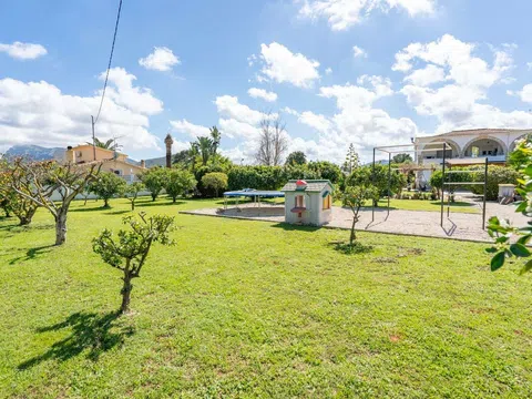 Amplia villa con casa de invitados en parcela de 2885 m2 en venta en La Xara, Denia Esta villa de 6 dormitorios se encuentra en una parcela totalmente vallada y ajardinada de hasta 2885 m2 y ofrece hermosas vistas del Montgó. La villa tiene una superficie total construida de 391 m2 y se distribuye en dos plantas. La villa (excluida la casa de invitados) fue renovada en 2023. A través de una gran puerta de madera se accede a un espacio abierto con un salón con estufa a la izquierda y una zona de comedor y escaleras a la planta superior a la derecha. Junto al comedor está la cocina abierta con una barra americana. Al final de la sala hay una zona de despacho y acceso al dormitorio principal y a dos cuartos de baño. El dormitorio principal tiene armarios empotrados a ambos lados. Unas escaleras conducen a una naya que da acceso a un pasillo donde hay tres dormitorios más y un baño moderno. Desde la naya también se accede a una gran terraza cubierta conectada con la casa de invitados. La casa de invitados también tiene acceso privado a través de una escalera exterior. Esta parte consta de un salón, una cocina, dos dormitorios y un baño y necesita una reforma. La casa principal tiene ventiladores, aire acondicionado y calefacción central, lo que le permite mantener un agradable clima interior durante todo el año. En el exterior, podrá disfrutar de un hermoso jardín con una espaciosa piscina en forma de riñón con terraza para tomar el sol, una cocina exterior cubierta con un bar, una espaciosa terraza cubierta directamente conectada con la casa, un salón cubierto, una mesa de comedor bajo una pérgola junto a la piscina y un extenso césped con árboles frutales y plantas y flores. Para mayor comodidad, también hay un lavadero con acceso exterior y una cochera con aparcamiento para dos coches. El chalet está situado en una zona rural pero a poca distancia de todos los servicios. Caminando se llega al centro de La Xara, donde hay un supermercado, un colegio, farmacias, bares y restaurantes. El centro y las extensas playas de arena de Denia están a sólo 5 minutos en coche. A 5 minutos en coche también se llega a Ondara, donde encontrará un gran centro comercial y acceso a la autopista.