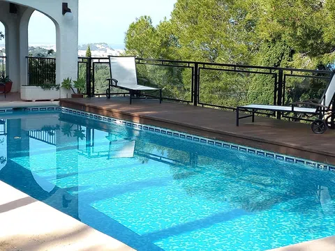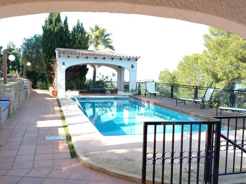 Espectacular villa en Denia, partida de Las Rotas, junto al Parque Natural del Montgó. La vivienda se encuentra ubicada en una parcela, de unos 2.300 m2 aprox, muy cuidada con diferentes tipos de plantas ornamentales, árboles, etc. varias terrazas, barbacoa y en la que también podemos encontrar la piscina con una especie de chill-out cubierto. La casa cuenta con unas impresionantes vistas a la montaña y al Mar Mediterráneo y que en dias claros podemos llegar a divisar Cullera, el Golfo de Valencia. Es una construcción típica de la zona y el núcleo principal de la misma se encuentra dividido en 2 plantas no conectadas entre si, lo cual permite la estancia a más de una familia con total independencia compartiendo solamente aquellas zonas comunes de la parcela: piscina, jardín, barbacoa, etc.. . En la planta principal nos encontramos con una terraza cubierta, salon-comedor muy amplio con chimenea y dónde destacaria especialmente una zona de estar, con un amplio ventanal, desde dónde se divisa una exquisita panorámica del Mar Mediterráneo, cocina independiente con acceso a un patio donde se ubica la barbacoa, 3 dormitorios y 1 baño. Situado bajo esta planta principal nos encontramos con un apartamento con entrada independiente distribuido en salón-comedor con cocina integrada, 3 dormitorios y 2 baños. Existe otro apartamento abuhardillado, independiente, con un dormitorio y baño incorporado. De todo el conjunto, parcela más construcciones, yo destacaría, como ya he comentado antes, las espectaculares vistas de esta casa desde cualquier rincón de la misma y de la parcela en la que se encuentra ubicada y es lo que yo, personalmente, creo le da un valor exclusivo y diferenciador con respecto al resto de propiedades de la zona. Si desea más información de este inmueble no dude en contactar con nosotros y estaremos encantados de atenderle.