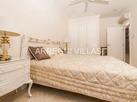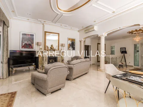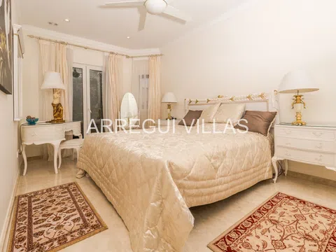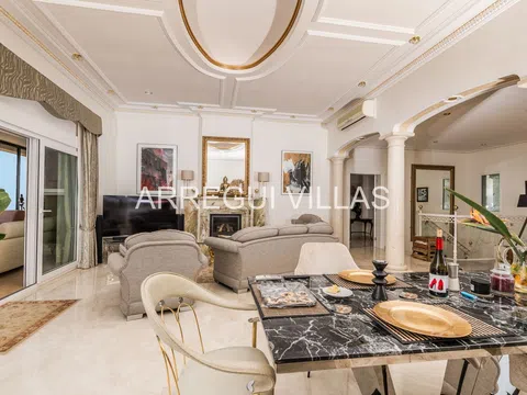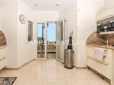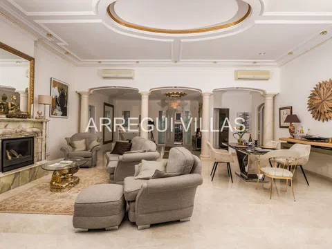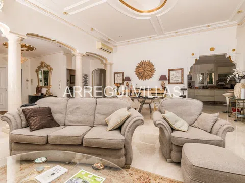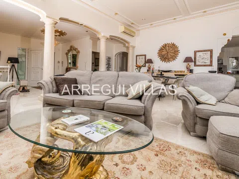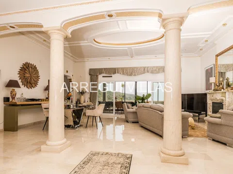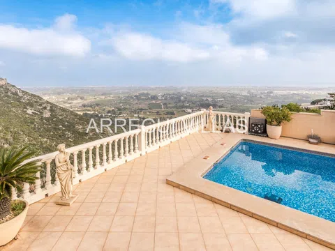 Villa de lujo con vistas panorámicas y equipamiento de alto nivel. Bienvenido a esta exclusiva villa situada en una de las zonas más prestigiosas de España. Con espectaculares vistas al paisaje verde y al mar Mediterráneo, esta propiedad combina elegancia, confort y privacidad. Rodeada de naturaleza y otras residencias de lujo, su ubicación elevada garantiza tranquilidad, luz natural y un ambiente relajado. Las amplias estancias destacan por su diseño abierto, suelos de mármol, techos decorados y grandes ventanales que conectan interior y exterior con armonía. El salón principal se integra con un comedor refinado, ideal para disfrutar con familia o invitados. Un moderno salón panorámico con acristalamiento renovado (2024) ofrece vistas y confort durante todo el año. El baño principal recuerda a un spa privado, con bañera de esquina, lavabos dobles y luz natural. Todo en esta propiedad ha sido diseñado para el bienestar y el disfrute. En el exterior, amplias terrazas, un jardín con sistema de riego y una cocina exterior invitan a vivir el estilo de vida mediterráneo. Aspectos destacados: Vistas abiertas al mar y al paisaje natural, interiores elegantes con materiales de alta calidad, cocina Miele, chimenea de gas, calefacción por suelo radiante, sauna, sistema solar de 5 kW, carport cubierto, internet rápido, bajos costes de mantenimiento, estado impecable, lista para entrar a vivir. Una oportunidad única para quienes buscan lujo, privacidad y una ubicación inmejorable.