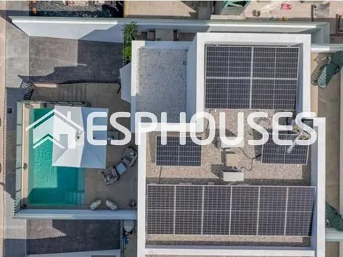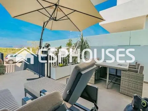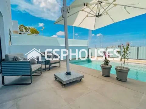 Preciosa villa adosada nueva con piscina climatizada y azotea en Dolores. El actual propietario incluso lo convirtió en una piscina de agua salada. La villa data de marzo de 2023 y está equipada con todo el lujo imaginable. Se han elegido materiales de lujo y la casa está lista para entrar a vivir inmediatamente. Con un luminoso salón, una preciosa cocina abierta y un dormitorio en la planta baja con vestidor y baño en suite y un aseo de invitados independiente (algo único en España). En la 1ª planta encontramos 2 dormitorios y un 2º baño y acceso a una terraza contigua. Con un gran espacio de sótano debajo de la casa, que se puede utilizar para varios otros propósitos, esta casa tiene mucho espacio y lujo. La casa está ubicada en una nueva zona residencial donde todavía hay varias casas en construcción, pero no es necesario esperar un año para esta casa. Las playas de arena dorada de 15 km de longitud de Guardamar del Segura se pueden alcanzar en unos 20 minutos. A los aeropuertos de Alicante y Murcia – Corvera se puede llegar respectivamente en unos 30 minutos para Alicante y unos 45 minutos para Murcia – Corvera. Más información en nuestro sitio web.