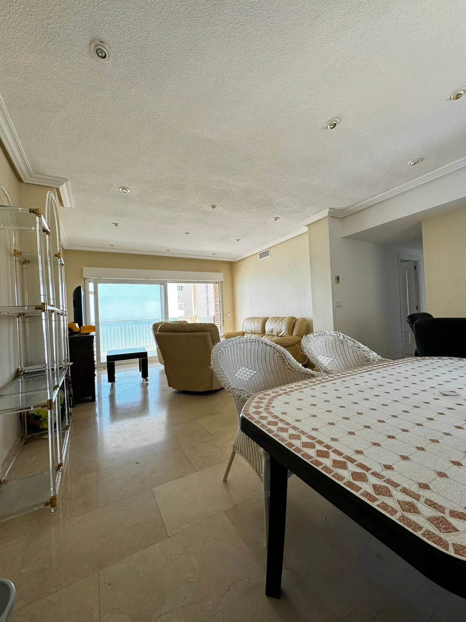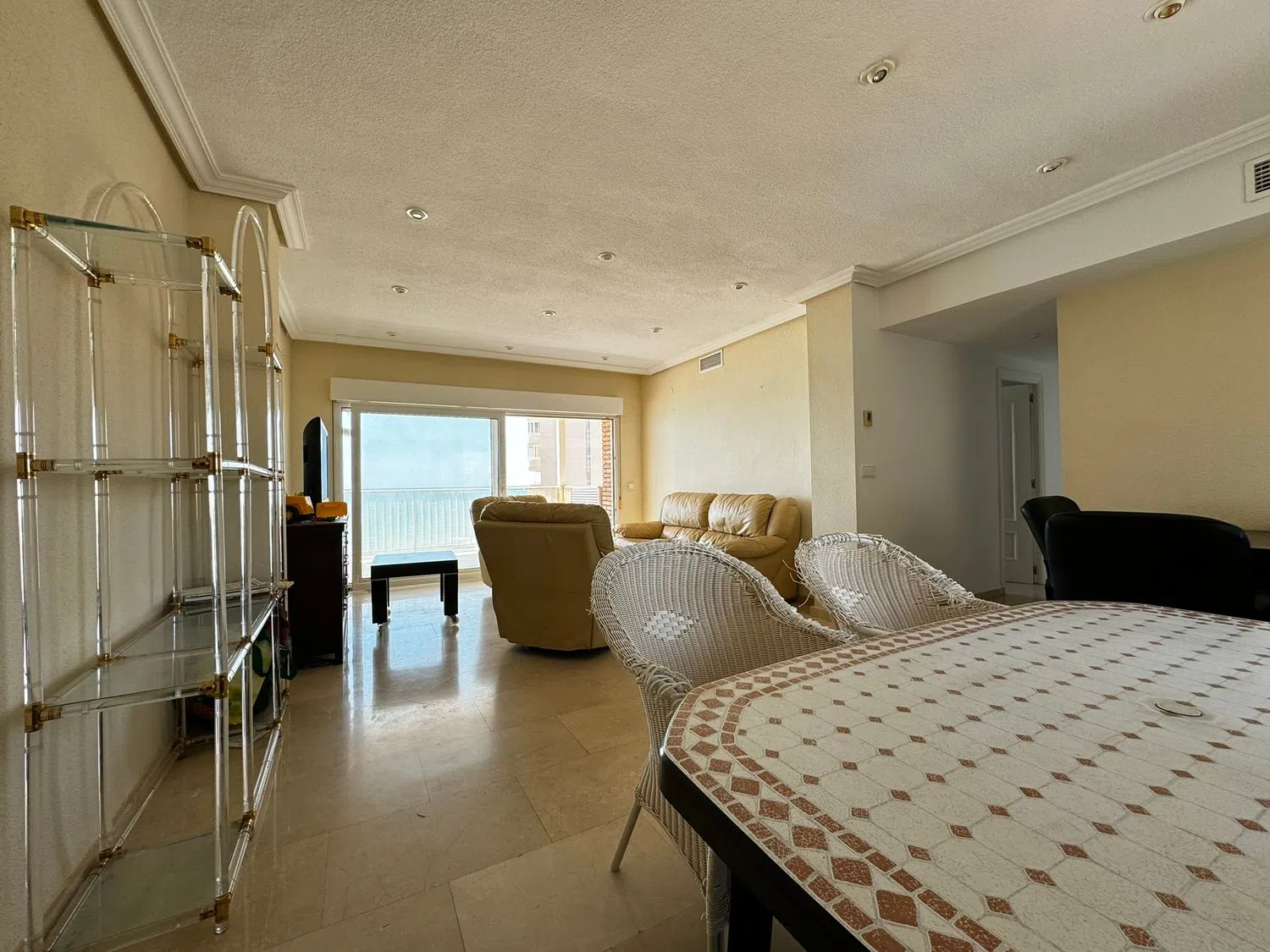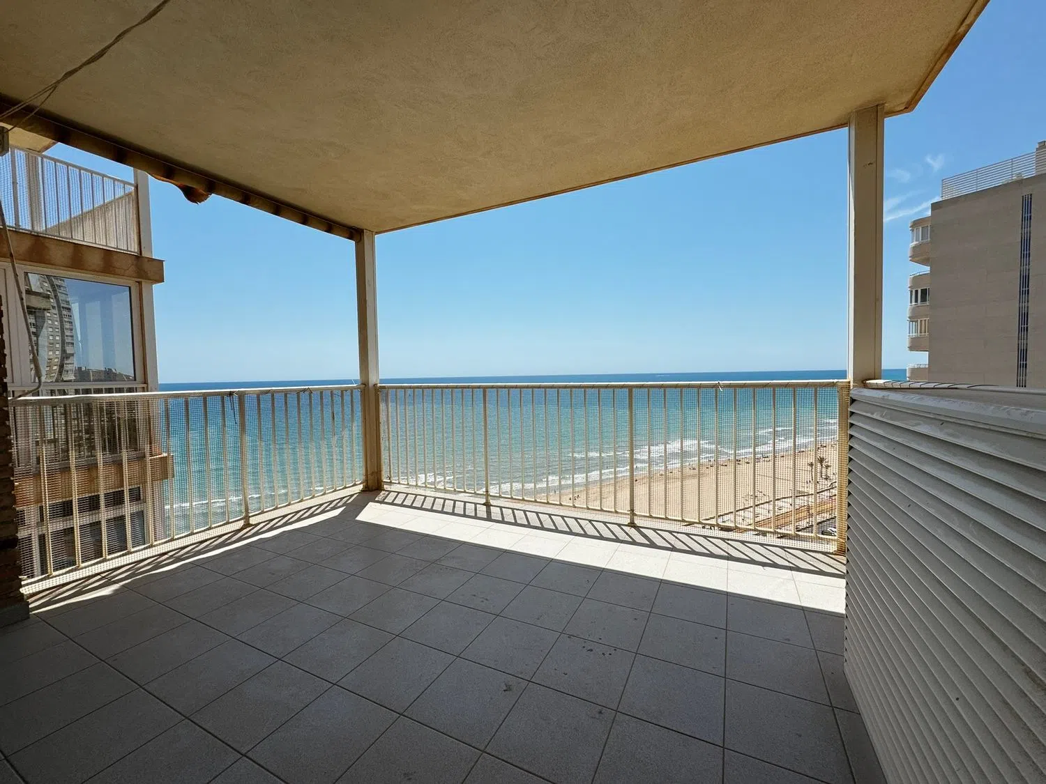 Przedstawiamy wspaniałe mieszkanie w pierwszej linii od morza, z niesamowitym widokiem na całą zatokę plaży, zaledwie 15 metrów od piaszczystego wybrzeża. To piękne mieszkanie, usytuowane na wyższym piętrze z windą, oferuje niezrównane widoki. Składa się z dwóch sypialni, z możliwością przekształcenia jednego z pomieszczeń, które wcześniej było traktowane jako sypialnia, w przestronny salon. Dzięki temu uzyskujemy dużą przestrzeń w salonie, który łączy się z dużym tarasem, idealnym do letnich wakacji nad morzem, w cichej i spokojnej okolicy. Na terenie nieruchomości znajdują się również dwa łazienki oraz wygodny parking.