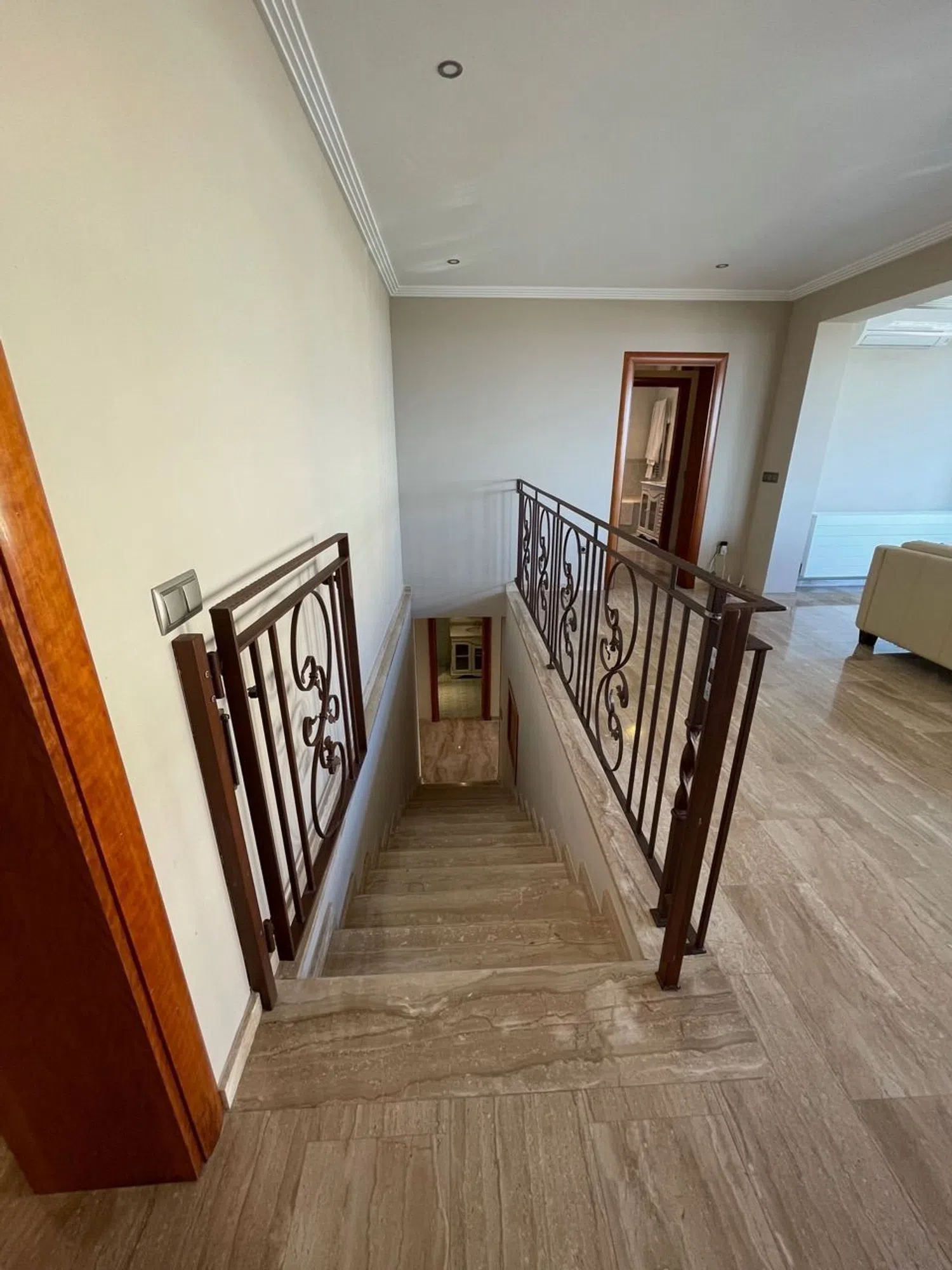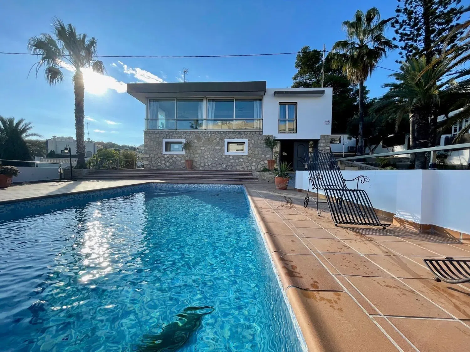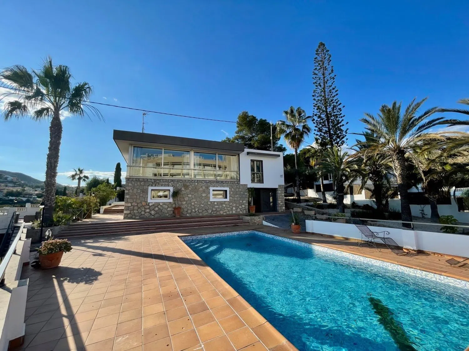 Główna część domu składa się z czterech sypialni oraz trzech łazienek, z których jedna jest łazienką w suite. Kuchnia, wyposażona w meble z naturalnego drewna wiśniowego, jest funkcjonalna i elegancka. Przestronny salon z jadalnią ma ogromne okno o wymiarach 11 x 2,5 m, które zapewnia panoramiczny widok na morze.