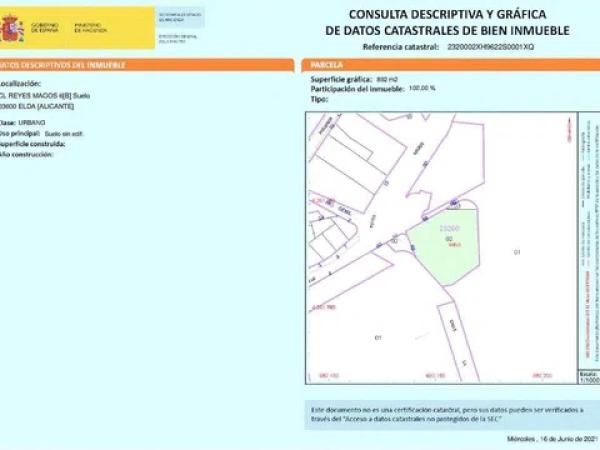 Suelo urbano no consolidado de 892 m² para uso residencial de vivienda colectiva, esta situado en el barrio de la estación, frente al jardín del río, en el municipio de Elda, provincia de Alicante. Posibilidad de edificar 26 viviendas repartidas en 4 alturas. La edificabilidad queda definida por volumetría, mediante la alineación a fachada, el fondo edificable y las alturas, que aparecen grafiadas en el plano de ordenación del PGO. El solar tiene permitidos diferentes usos, residencial, industrial, terciario comercial y de oficinas, hotelero, dotacional y de equipamiento.