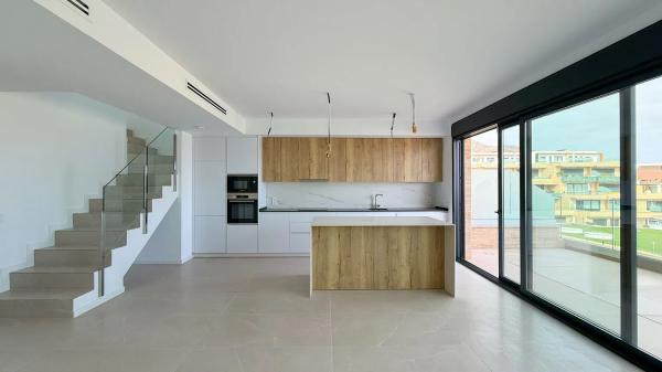 **Двухэтажная квартира-пентхаус в комплексе STONE: Идеальное место для жизни и отдыха** Представляем вашему вниманию уникальную возможность приобрести двухэтажную квартиру-пентхаус в престижном комплексе STONE. Это жилье идеально подходит для большой семьи или временного отдыха. Расположенная в закрытой урбанизации с превосходной инфраструктурой, квартира предлагает доступ к двум бассейнам, сауне, спортивному залу, падель-корту и детской площадке. Общая площадь квартиры составляет 235 м², из которых 177 м² - полезная площадь. Просторный салон с кухней в американском стиле и выходом на террасу станет сердцем вашего нового дома. Кухня оборудована современной техникой и островом для приготовления блюд. В квартире три спальни, каждая из которых имеет собственную ванную комнату и гардероб. Система вентиляции и кондиционирования обеспечивает комфорт в любое время года, а теплые полы в ванных комнатах добавляют уюта. Три террасы, одна из которых частично накрыта, предлагают возможность наслаждаться солнцем или установить систему защиты от него. Южная ориентация двух террас позволяет разместить мебель и джакузи для максимального расслабления. В стоимость входят два парковочных места для больших автомобилей и техническое помещение для хранения личных вещей. Квартира находится на третьем этаже с лифтом и имеет доступ, адаптированный для людей с ограниченной подвижностью. Энергетический класс A гарантирует низкое потребление энергии и минимальные выбросы CO2. Не упустите шанс стать владельцем этого великолепного пентхауса!