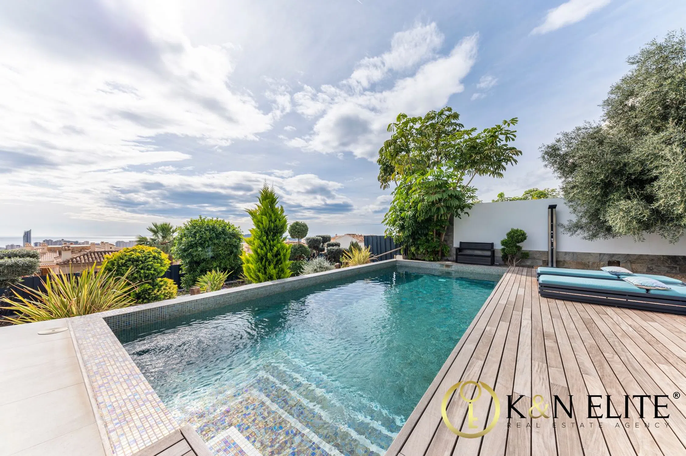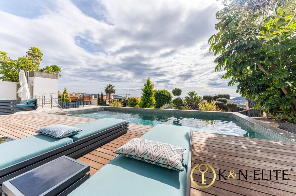 Ubicada en la prestigiosa urbanización Sierra Cortina, esta villa moderna redefine el concepto de lujo y confort. Construida con materiales de la más alta calidad y amueblada con piezas hechas a medida, ofrece una experiencia única con impresionantes vistas al mar y al skyline de Benidorm. Distribuida en tres niveles, la villa cuenta con 5 dormitorios, 5 baños y 1 aseo. En la planta baja, encontramos un elegante salón abierto con cocina de diseño y comedor, que se conecta directamente con una terraza donde podrás disfrutar de vistas panorámicas. Este nivel también alberga un dormitorio con baño en suite. En la primera planta, tres dormitorios, cada uno con su propio baño, terraza privada y vistas al mar. Además un exclusivo vestidor proporciona el máximo confort. El sótano, lleno de luz natural gracias a un patio interior, ofrece multiples posibilidades, actualmente distribuido en un salón con zona de biblioteca y cine, despacho, gimnasio con baño, aseo, lavandería, sala de máquinas y trastero. Este espacio puede adaptarse a tus necesidades, con acceso tanto desde el interior como desde el exterior, ideal para convertirlo en un apartamento de invitados o una zona de entretenimiento adicional. El exterior es igualmente impresionante, con una piscina privada de agua salada, zona chill-out, barbacoa con comedor y aparcamiento privado para dos coches. Un ascensor exterior conecta directamente con la planta baja para mayor comodidad. Equipamiento excepcional: Esta villa de diseño moderno, construida en 2019, ha sido decorada con un gusto impecable y equipada con aire acondicionado central, calefacción por suelo radiante en toda la casa y gimnasio con máquinas Technogym. Además, cuenta con paneles solares de alta gama, lo que garantiza la autosuficiencia energética y elimina los gastos de electricidad. Ubicación privilegiada: Situada en una zona residencial tranquila y exclusiva, la villa se encuentra a solo unos minutos de los principales servicios de Benidorm, incluyendo centros comerciales, supermercados, restaurantes y tiendas. La playa más cercana, la Cala de Finestrat, está a tan solo 3,5 km. La urbanización ofrece también acceso a pistas de tenis, pádel y el reconocido restaurante Rice, además de estar cerca de campos de golf y rutas de senderismo. Una oportunidad única de vivir en una villa que combina lujo, comodidad y sostenibilidad en una de las zonas más cotizadas de la Costa Blanca.