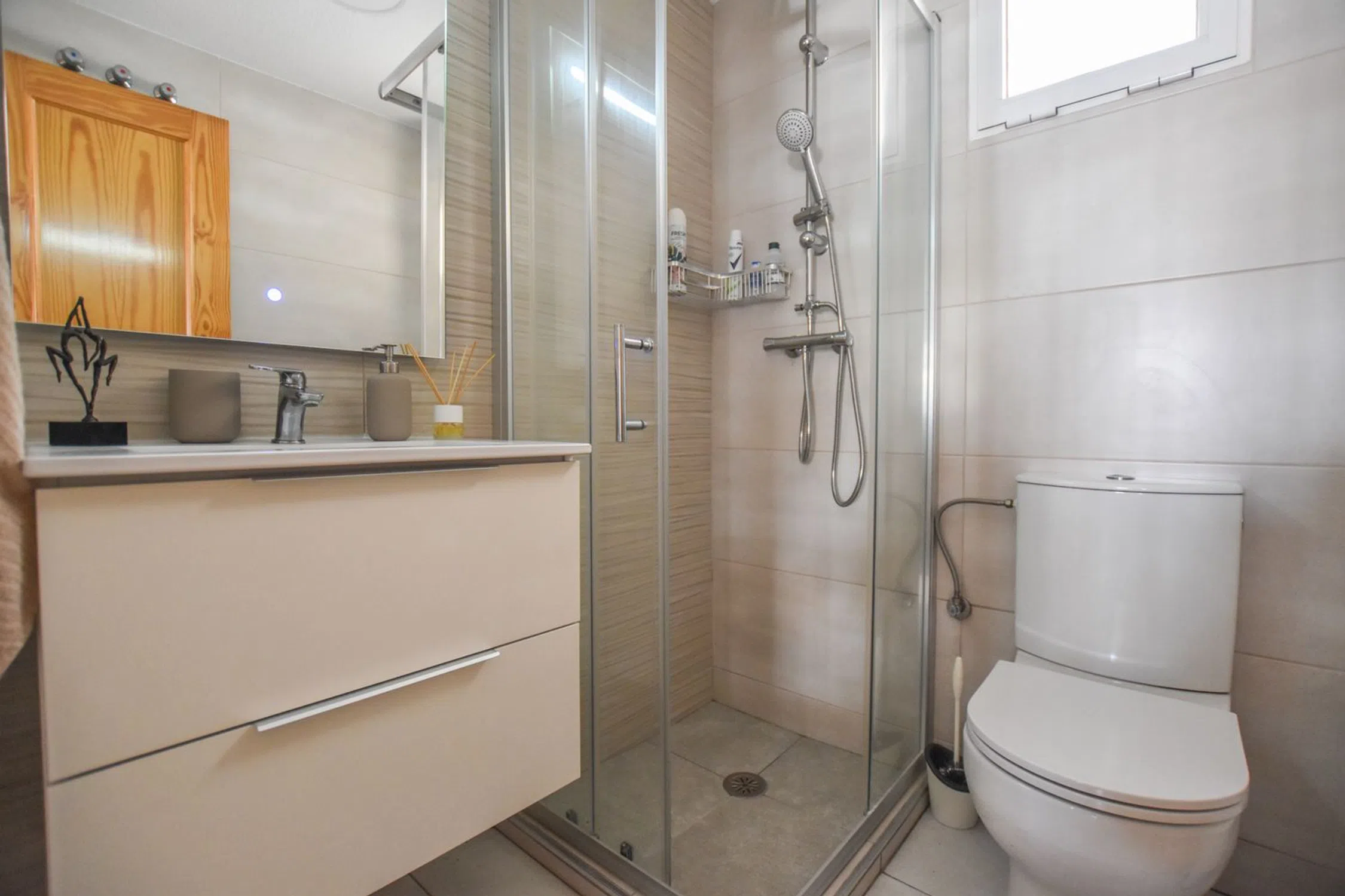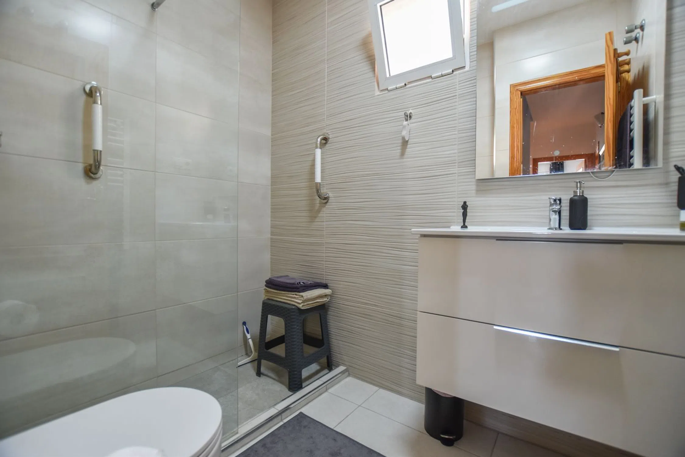 Preciosa casa adosada de 3 dormitorios y 3 baños. Bien mantenida. Entrada de abundante luz natural. Completamente amueblada y con electrodomésticos. Cocina independiente de buen tamaño con patio cerrado. Aire acondicionado (frío y calor). El dormitorio principal tiene baño en suite. Dos de los tres dormitorios tienen armarios empotrados y aire acondicionado. Persianas en todas las ventanas. Rejas de seguridad en todas las ventanas y puerta. Ventilador de techo. Terraza acristalada en la entrada. Amplio solárium y una amplia y luminosa terraza/jardín. Orientada al norte y cerca de la zona comunitaria. Ubicada en una urbanización tranquila y bien mantenida con piscina comunitaria, pista de tenis, zona de juegos infantiles y jardines comunitarios. Situada en la zona alta de Gran Alacant, cerca de todos los servicios. Gran Alacant es un barrio de Santa Pola que acoge a residentes de todas las edades: niños para quienes se está construyendo un segundo colegio de primaria, personas en edad laboral y jubilados. Hay propietarios que tienen su segunda residencia en Gran Alacant, y por qué no, cuando la zona disfruta de más de 300 días de sol al año. Contamos con la hermosa playa del Carabasí, con sus pasarelas que protegen las dunas y donde se pueden practicar actividades como paddle surf, snorkel y kayak. Para quienes disfrutan del relax, se pueden alquilar tumbonas. En Gran Alacant hay muchas oportunidades para caminar, montar en bicicleta o simplemente disfrutar del paisaje y la fauna, con senderos que conducen al Faro y a la pasarela elevada de Gran Alacant, así como al parque natural del Clot de Galvany. Gran Alacant cuenta con una amplia selección de supermercados, pequeños comercios, restaurantes y bares. Estos últimos ofrecen entretenimiento con noches de concursos y karaoke, además de cobertura deportiva. Santa Pola está a un corto trayecto en autobús o coche desde Gran Alacant. El castillo o fortaleza amurallada de Santa Pola alberga exposiciones, mercados medievales, bodas y eventos de fin de año. A solo 5 minutos a pie se encuentra la zona portuaria, donde podrá disfrutar de una bebida, una comida o un paseo para ver los numerosos barcos y yates amarrados. A solo 15 minutos de Gran Alacant se encuentra la cosmopolita ciudad de Alicante. Para los interesados en la historia, encontrará dos castillos, el museo MARQ con la Oficina de Propiedad Intelectual de la UE y la Ciudad de la Luz.