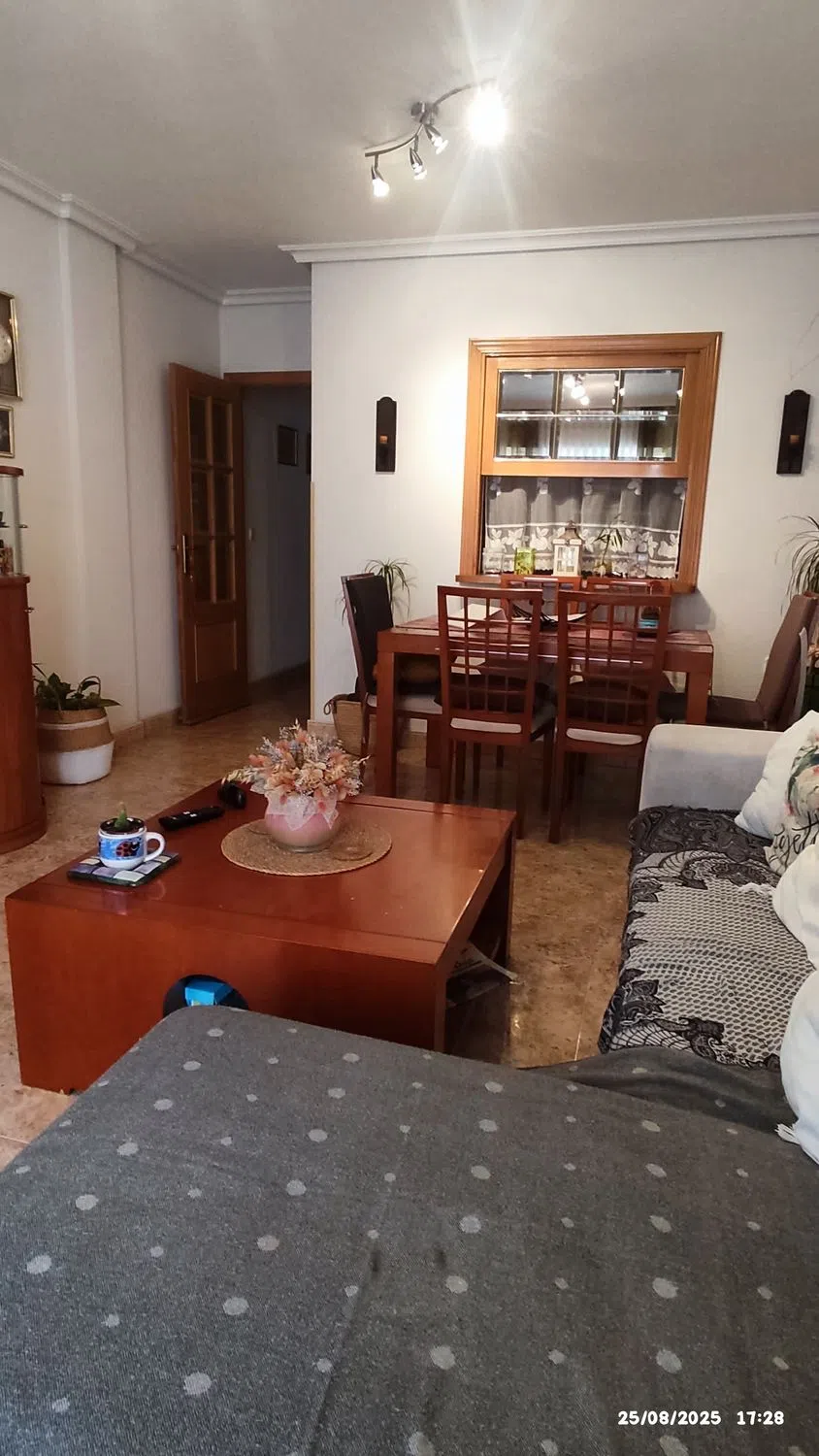 se vende piso en el centro de Guardamar del Segura, muy buena ubicación, cerca de Mercadona y a 600 metros de la playa de la roquetas, rodeado de todo tipo de comercios, en muy buenas condiciones listo para entrar a vivir con vecinos todo el año, dispone de aire acondicionado, armarios empotrados, se vende semi amueblado, con todos los electrodomésticos en la cocina, baño reformado con ducha, con poco gasto de comunidad.
