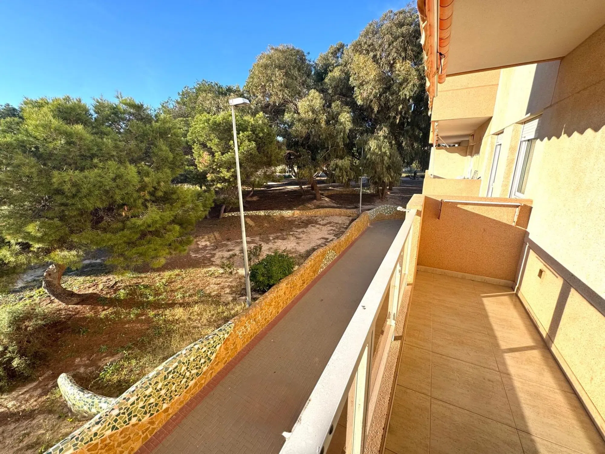 Este maraviloso y acogedor apartamento se encuentra en una de las mejores zonas de la localidad de Guardamar del Segura - parque Sur cullos mayores privilegios son la tranquilidad y la cercania a la playa. Se encuentra en la primera planta del edificio de 5 alturas denominado "Parque" y que fue construido en el año 1998. El edificio se conserva en buenas condiciones, dispone del ascensor asi como el acceso peatonal y de minusvalidos. El apartamento tiene 72 m2 de superficie construida y 53 m2 de superficie util. Dispone de 2 dormitorios, ambos con su ventana al exterior, armario empotrado y mobiliario. El baño es bastante amplio y ha sido completado con la ducha y bidet. El salon se separa de la cocina con una barra americana y esta completamente amueblado. La cocina ofrece muebles basicos y esta semi equipada. La vivienda tiene orientacion sur y vistas al parque desde todas sus habitaciones. La terraza dispone de toldo y tendedero para ropa. A tan solo 200 metros esta la playa, a 150m el supermercado mas proximo es Carreforu Express y el centro urbano esta a tan solo 10 minutos caminando.