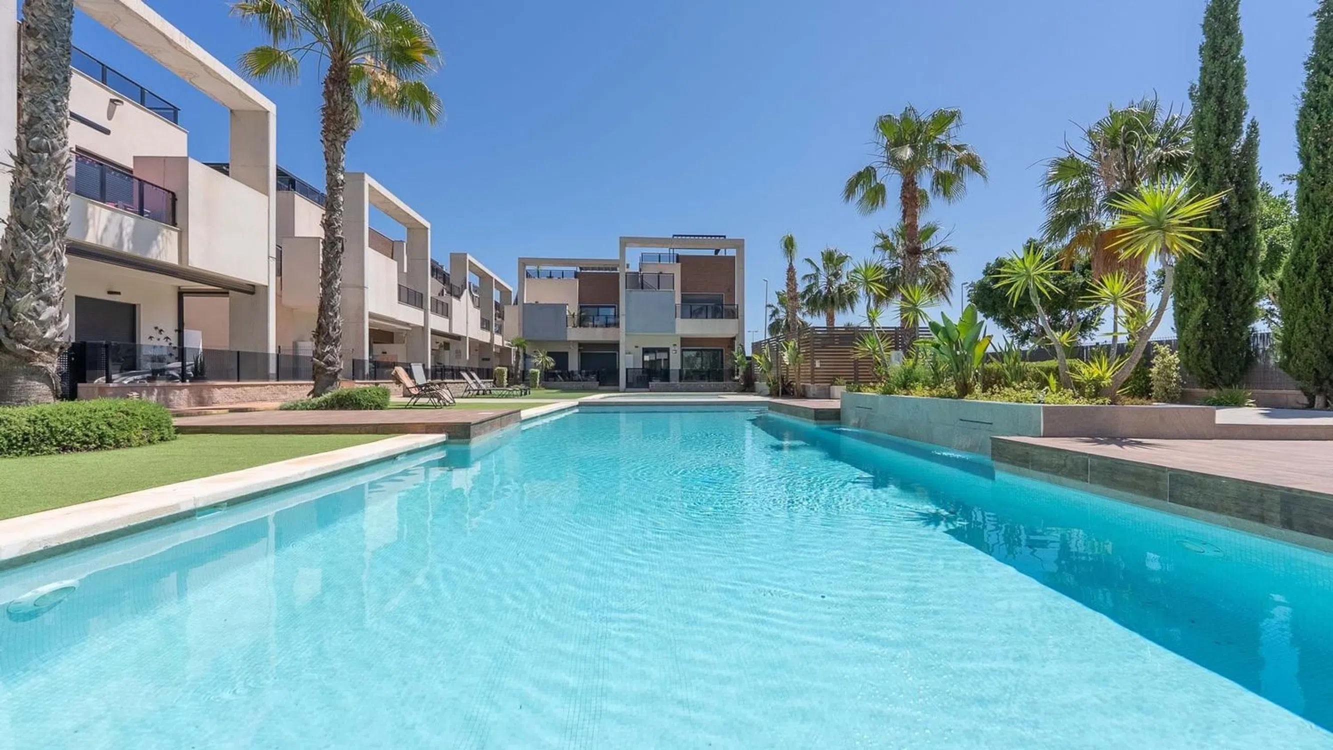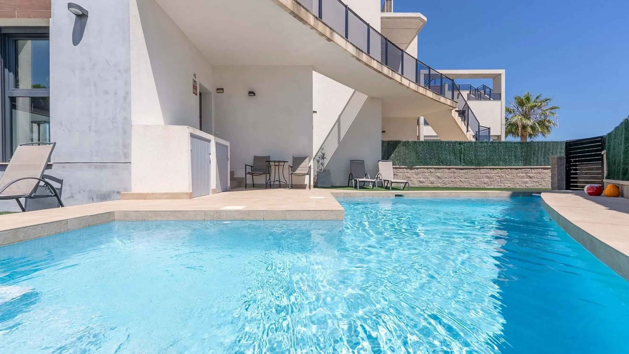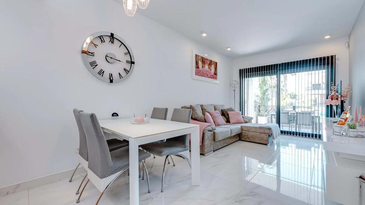Nos complace presentar este impresionante apartamento en planta baja, esquinero, de 2 dormitorios y 2 baños con piscina privada, garaje y vistas directas a los jardines comunitarios y la piscina en El Raso. Situado en la codiciada comunidad cerrada de El Raso, este excepcional apartamento en planta baja y esquinero ofrece una vida de lujo con un espacio exterior inigualable, que incluye una piscina privada, amplios jardines y una terraza con vistas a la piscina y los jardines comunitarios, bellamente mantenidos. Construido hace apenas unos años, el apartamento se encuentra en una de las parcelas más grandes de la urbanización, lo que lo convierte en un hallazgo raro. Al entrar por una puerta privada, se le da la bienvenida a un jardín delantero soleado con su propia piscina privada, un área de servicio cubierta con espacio para una lavadora y un generoso jardín lateral con una elegante área de descanso cubierta. En la parte trasera, una terraza cubierta ofrece el lugar perfecto para relajarse y desconectar mientras disfruta de vistas abiertas a los impresionantes jardines comunitarios y al área de la piscina. En el interior, el apartamento está bellamente presentado en un estilo moderno con un diseño de planta abierta. La sala de estar y el comedor son luminosos y espaciosos, y se benefician de luz natural adicional gracias a su posición de esquina, y fluyen a la perfección hacia una cocina elegante y totalmente equipada. Hay dos amplios dormitorios dobles con armarios empotrados, incluido un dormitorio principal con baño con ducha y un baño de invitados contemporáneo adicional. Para aumentar aún más su atractivo, el apartamento cuenta con una plaza de aparcamiento subterráneo privado y un trastero independiente, ideal para bicicletas, palos de golf o equipo de playa. El complejo cerrado en sí está impecablemente mantenido, con exuberantes jardines y amplias áreas para sentarse y tomar el sol alrededor de la piscina comunitaria. Esta propiedad ofrece la combinación perfecta de estilo, espacio y comodidad, ideal como casa de vacaciones, propiedad de inversión o residencia permanente. No se pierda esta rara oportunidad, ¡programe su visita hoy mismo! 5 Real Estate es la agencia inmobiliaria internacional de tarifa fija y servicio completo de más rápido crecimiento en España, con numerosas oficinas en el norte y el sur de la Costa Blanca, así como en la región de Murcia. Estamos comprometidos a brindar un servicio transparente y de primera clase a todos nuestros clientes, ya sean compradores o vendedores. Desde el momento en que se ponga en contacto con nosotros por primera vez, se dará cuenta de la diferencia que brindamos y promovemos como estándar. Puede estar seguro de que está tratando con profesionales eficientes y confiables con muchos años de experiencia en el sector inmobiliario español. En 5 Real Estate solo vendemos propiedades que están directamente listadas con nosotros, lo que significa que conocemos personalmente a cada uno de los vendedores, sus hogares y las áreas en las que se encuentran. Dada nuestra extensa cartera de propiedades listadas directamente, estamos seguros de que podemos encontrar la propiedad adecuada para satisfacer sus necesidades. Así que, haga una consulta hoy mismo y descubra por qué somos tan diferentes y por qué nos estamos convirtiendo en la agencia preferida tanto para compradores como para vendedores.