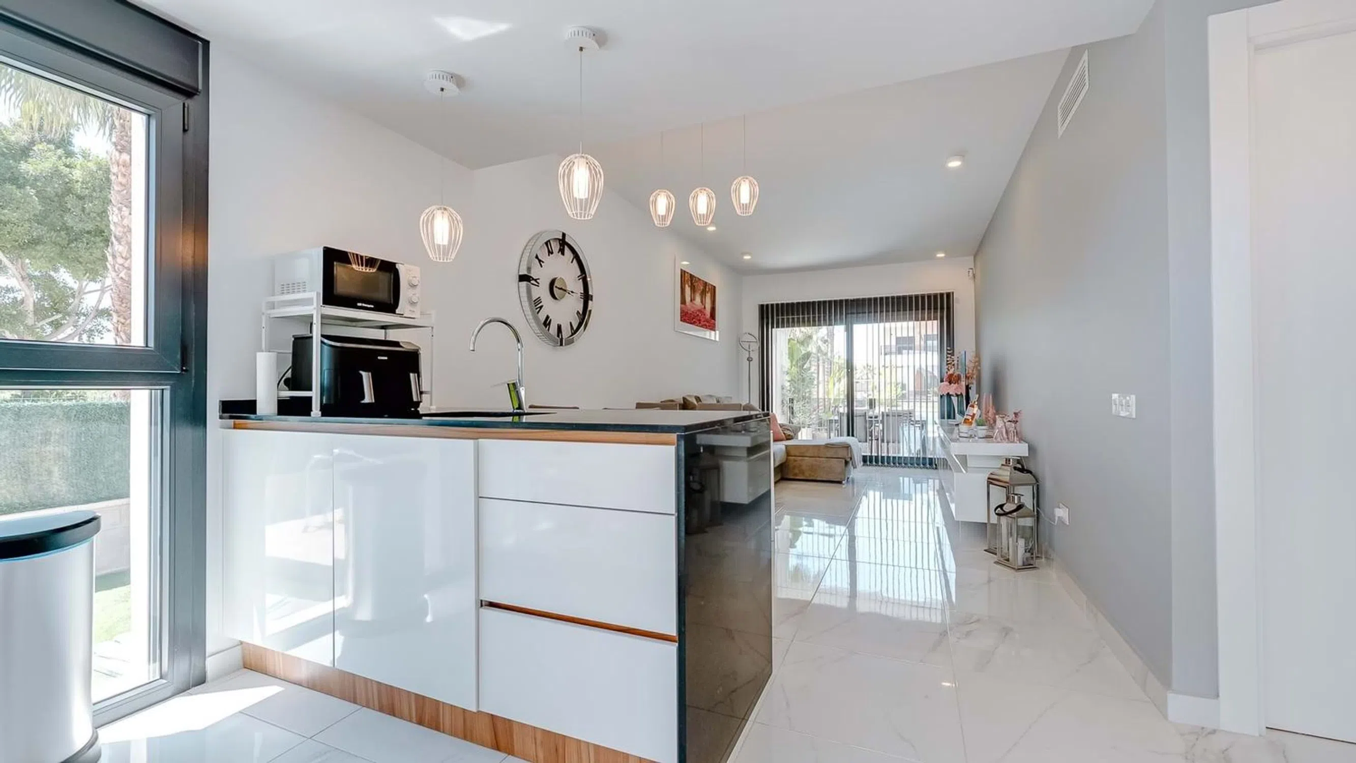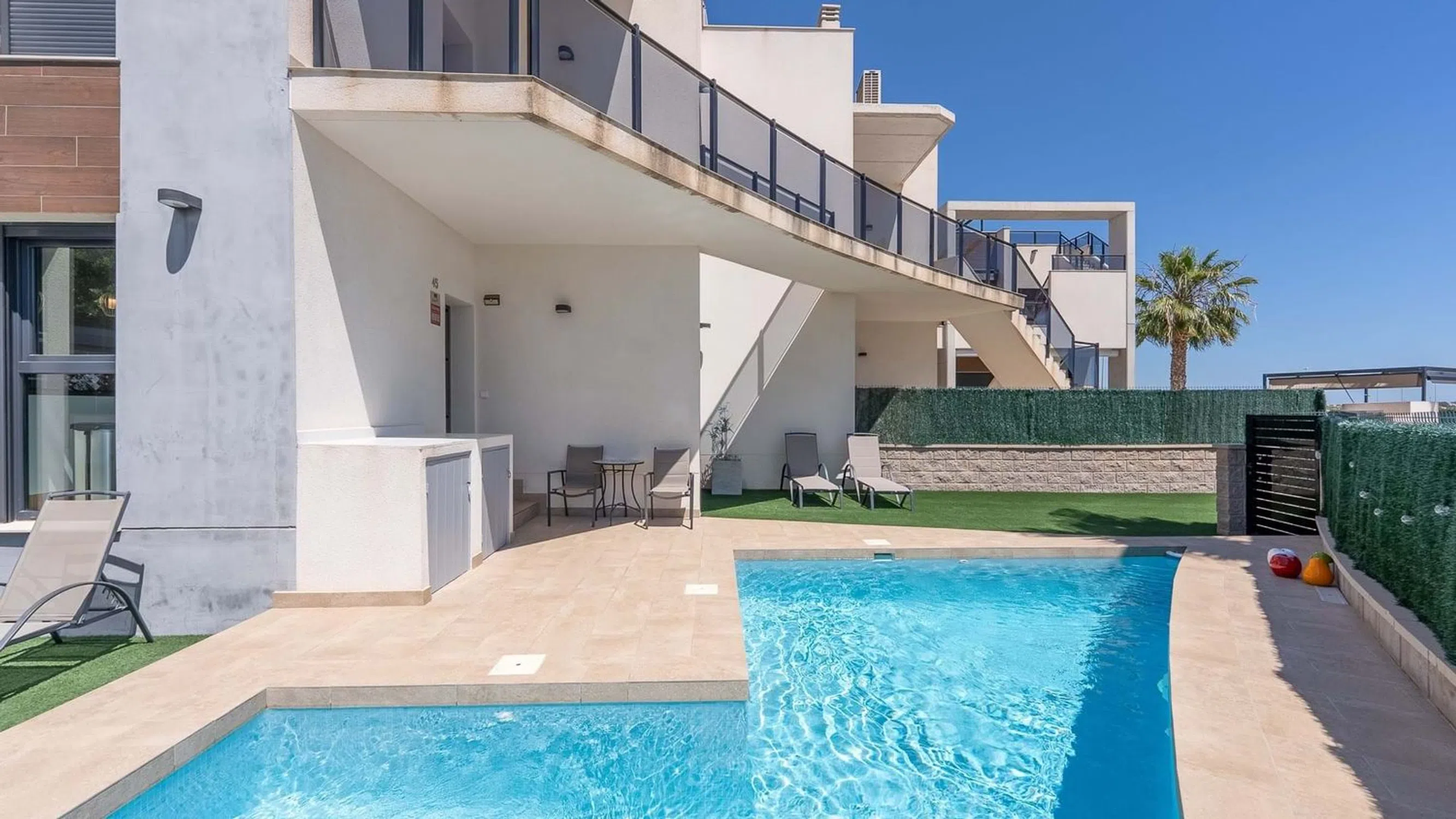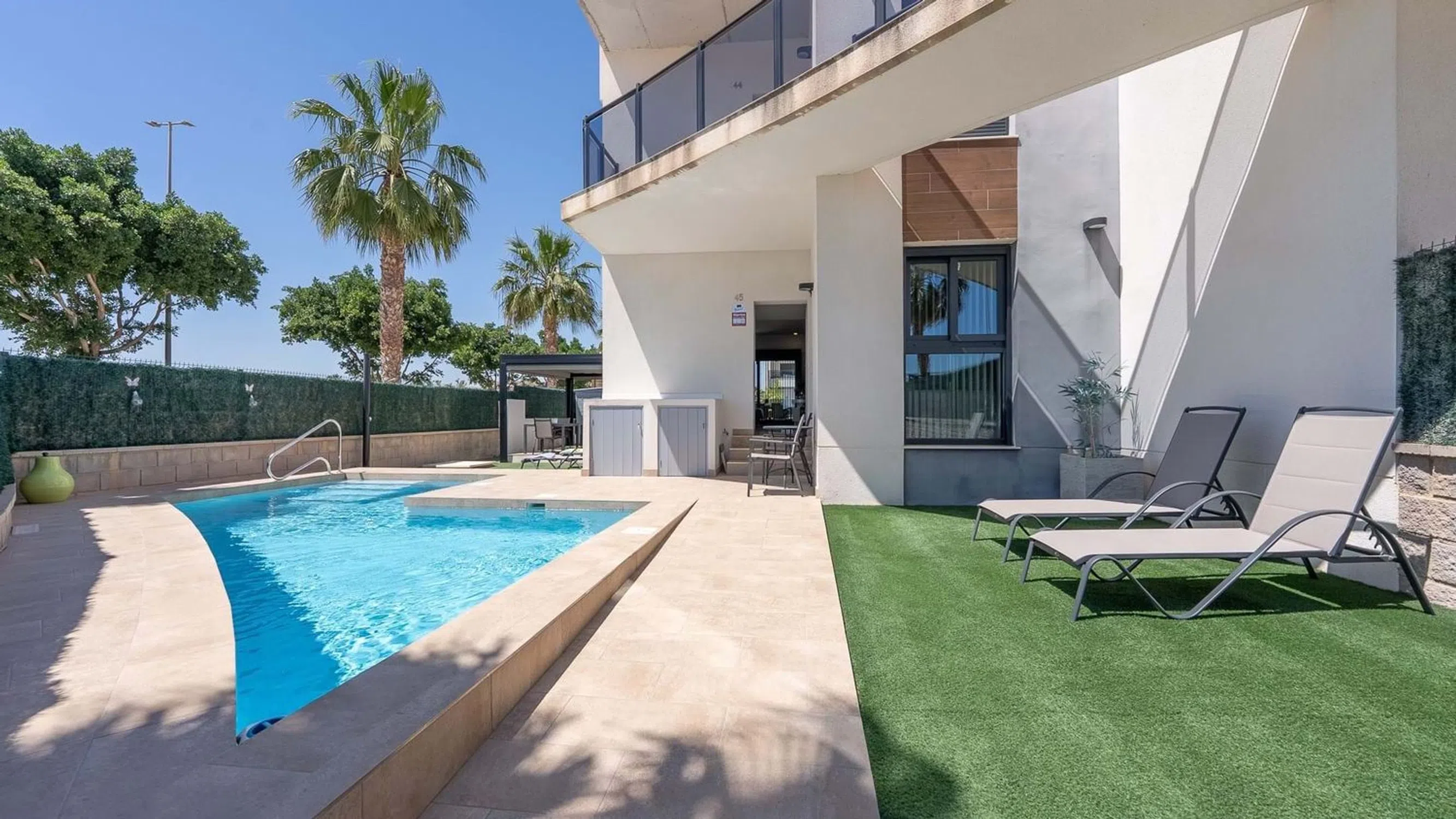 Nos complace presentar este impresionante apartamento en planta baja, esquinero, de 2 dormitorios y 2 baños con piscina privada, garaje y vistas directas a los jardines comunitarios y la piscina en El Raso. Situado en la codiciada comunidad cerrada de El Raso, este excepcional apartamento en planta baja y esquinero ofrece una vida de lujo con un espacio exterior inigualable, que incluye una piscina privada, amplios jardines y una terraza con vistas a la piscina y los jardines comunitarios, bellamente mantenidos. Construido hace apenas unos años, el apartamento se encuentra en una de las parcelas más grandes de la urbanización, lo que lo convierte en un hallazgo raro. Al entrar por una puerta privada, se le da la bienvenida a un jardín delantero soleado con su propia piscina privada, un área de servicio cubierta con espacio para una lavadora y un generoso jardín lateral con una elegante área de descanso cubierta. En la parte trasera, una terraza cubierta ofrece el lugar perfecto para relajarse y desconectar mientras disfruta de vistas abiertas a los impresionantes jardines comunitarios y al área de la piscina. En el interior, el apartamento está bellamente presentado en un estilo moderno con un diseño de planta abierta. La sala de estar y el comedor son luminosos y espaciosos, y se benefician de luz natural adicional gracias a su posición de esquina, y fluyen a la perfección hacia una cocina elegante y totalmente equipada. Hay dos amplios dormitorios dobles con armarios empotrados, incluido un dormitorio principal con baño con ducha y un baño de invitados contemporáneo adicional. Para aumentar aún más su atractivo, el apartamento cuenta con una plaza de aparcamiento subterráneo privado y un trastero independiente, ideal para bicicletas, palos de golf o equipo de playa. El complejo cerrado en sí está impecablemente mantenido, con exuberantes jardines y amplias áreas para sentarse y tomar el sol alrededor de la piscina comunitaria. Esta propiedad ofrece la combinación perfecta de estilo, espacio y comodidad, ideal como casa de vacaciones, propiedad de inversión o residencia permanente. No se pierda esta rara oportunidad, ¡programe su visita hoy mismo! 5 Real Estate es la agencia inmobiliaria internacional de tarifa fija y servicio completo de más rápido crecimiento en España, con numerosas oficinas en el norte y el sur de la Costa Blanca, así como en la región de Murcia. Estamos comprometidos a brindar un servicio transparente y de primera clase a todos nuestros clientes, ya sean compradores o vendedores. Desde el momento en que se ponga en contacto con nosotros por primera vez, se dará cuenta de la diferencia que brindamos y promovemos como estándar. Puede estar seguro de que está tratando con profesionales eficientes y confiables con muchos años de experiencia en el sector inmobiliario español. En 5 Real Estate solo vendemos propiedades que están directamente listadas con nosotros, lo que significa que conocemos personalmente a cada uno de los vendedores, sus hogares y las áreas en las que se encuentran. Dada nuestra extensa cartera de propiedades listadas directamente, estamos seguros de que podemos encontrar la propiedad adecuada para satisfacer sus necesidades. Así que, haga una consulta hoy mismo y descubra por qué somos tan diferentes y por qué nos estamos convirtiendo en la agencia preferida tanto para compradores como para vendedores.