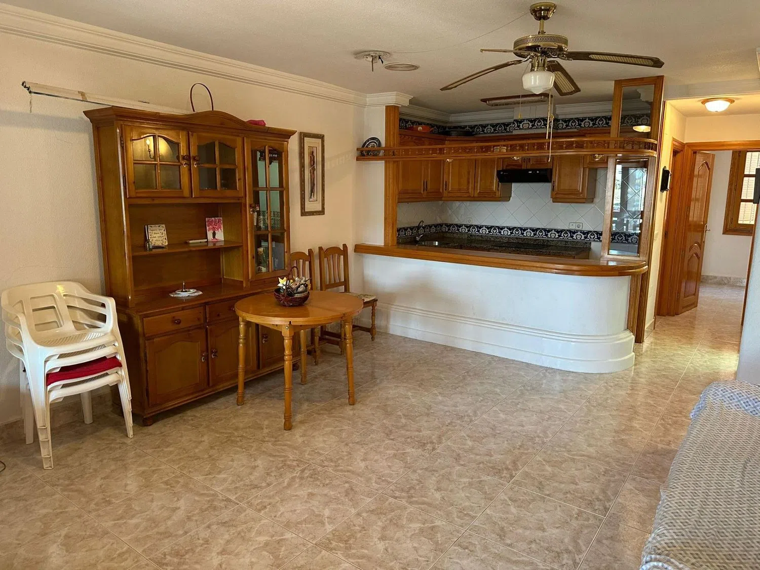 Kuchnia w amerykańskim stylu jest w pełni wyposażona w nowoczesne meble oraz sprzęty AGD. Na parterze znajdują się dwa przytulne sypialnie, każda z wbudowanymi szafami, oraz dodatkowy pokój w piwnicy z podwójnym łóżkiem.