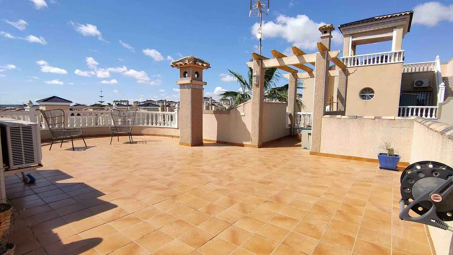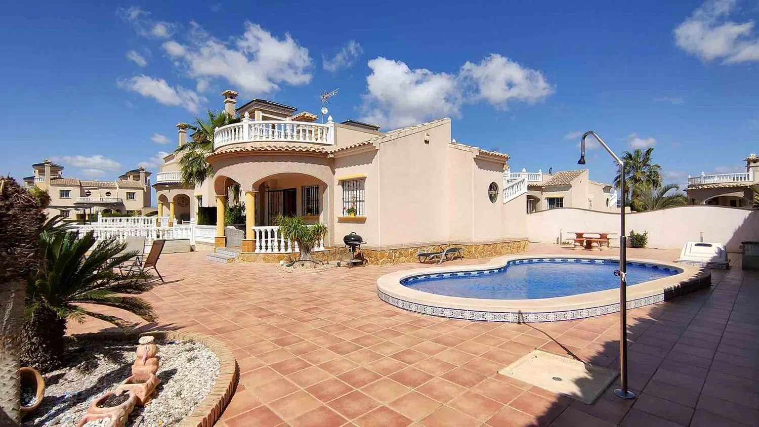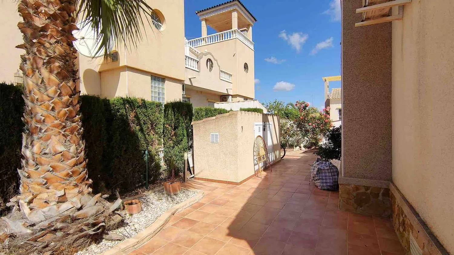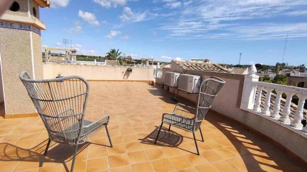 Przestronny, nasłoneczniony dom usytuowany na działce z ogrodem i prywatnym basenem, w odległości krótkiego spaceru od uzdrawiającego jeziora w malowniczej okolicy. Powierzchnia domu wynosi 106 m2, a działka ma 445 m2. Nieruchomość została zaprojektowana na dwóch poziomach. Na parterze znajduje się przestronny salon, otwarta kuchnia z dostępem do pomieszczenia gospodarczego, trzy sypialnie oraz dwa łazienki. Z salonu można wyjść na dużą taras-słoneczny z oszałamiającymi widokami na okolicę oraz lagunę. W dolnej części domu znajduje się prywatny parking. Na terenie działki znajduje się ogród, kilka palm, basen oraz strefa grillowa. Nieruchomość jest w doskonałym stanie, nie wymaga remontów ani dodatkowych inwestycji i sprzedawana jest z meblami oraz sprzętem AGD. Komplek zapewnia również wspólny basen oraz tereny zielone do relaksu. Położony w najlepszej części okolicy, w pobliżu licznych barów, restauracji, parków oraz niedzielnego targu. Zaledwie 5 minut jazdy samochodem do miasta z pięknymi plażami oraz do innego popularnego kurortu. Doskonała opcja zarówno na wakacje, jak i na stały pobyt.