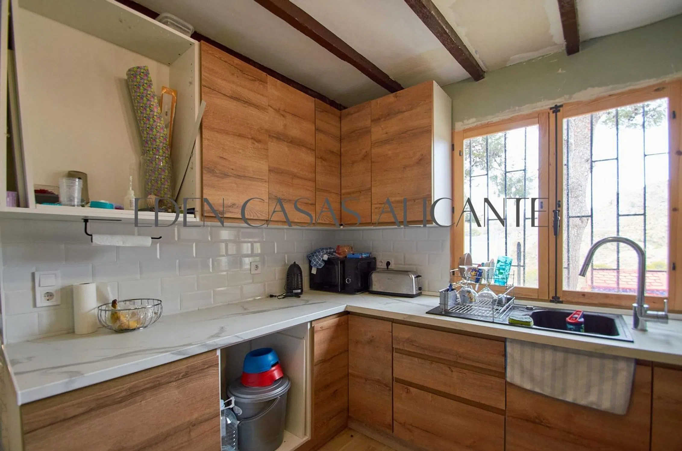 **Solo compradores en efectivo, no es posible hipotecar la vivienda ** Impresionante finca rústica parcialmente reformada con impresionantes vistas al valle y al campo hasta el mar. La propiedad está situada en una zona tranquila con pocos vecinos a lo largo de un camino de 1 km de tierra, pero bien comunicada con la carretera principal y la red de autopistas. Propiedad rural de dos plantas en la planta baja encontramos una terraza con bonitas vistas al valle y al mar en el horizonte. Dentro de la propiedad hay una cocina independiente, moderna y recientemente reformada. Amplio comedor y dos salones. La escalera recién renovada conduce a una primera planta con hermosas vigas de madera, 4 dormitorios y 1 cuarto de baño con ducha y bañera independiente, moderno y recién renovado. La propiedad tiene una posible piscina para reformar y dos caravanas/casas móviles en el exterior para restaurar, que podrían utilizarse como alojamiento para invitados, trastero o, posiblemente, como cocina al aire libre. Etc. La propiedad también cuenta con una cueva ideal para utilizar en verano como bodega o como almacén exterior. La cocina y el cuarto de baño han sido renovados para añadir un toque moderno a esta encantadora casa tradicional. Se ha instalado un sistema de paneles solares en la parcela, actualmente sin baterías, pero con capacidad para 20 kW. La casa no dispone de suministro de agua ni de fosa séptica, por lo que compradores tendrían que instalar un depósito de agua y recibir suministros de agua con un deposito. 12.000 litros de agua por entrega cuestan aproximadamente 100 € para unos 3 meses, dependiendo del consumo. La instalación de un sistema de depósito de agua costaría alrededor de 2.500 € y un sistema de fosa séptica costaría alrededor de 6.000 €. Jijona (en valenciano y oficialmente Xixona) es un gran pueblo de montaña situado en el interior de la provincia de Alicante. Es mundialmente famosa por sus turrones, un dulce navideño elaborado con almendras, y por sus helados y granizados. La localidad cuenta con unos 7.000 habitantes y dispone de todos los servicios necesarios, gasolinera, numerosas zonas verdes con parques infantiles, un moderno centro deportivo con piscina, bancos, colegios y un gran supermercado, entre otros. La calle principal del pueblo es un bonito bulevar con numerosos bares, restaurantes, bancos y pequeñas tiendas que conduce a la preciosa escuela primaria. La calle cobra vida en diciembre, cuando se celebra la famosa feria navideña y cientos de visitantes se agolpan al son de los villancicos para comprar productos tradicionales y regalos de Navidad. Situado a 25 km al norte de la ciudad de Alicante y a menos de 30 minutos de la costa y del mar Mediterráneo. El pueblo está enclavado en las laderas de la montaña Peña Roja, rodeado de bosques de pinos y robles, y disfruta de unas vistas increíbles de la costa, lo que lo convierte en un lugar perfecto para practicar deportes al aire libre como el senderismo, el ciclismo y la escalada. La localidad goza de un clima privilegiado y de sol durante todo el año, con inviernos frescos y veranos calurosos y muy pocas precipitaciones. Las propiedades en venta en Jijona suelen tener pocos vecinos, por lo que si busca una propiedad en el campo con una parcela grande y tranquila, bonitas vistas y muy poco ruido, Jijona es una opción muy interesante que ofrece precios muy competitivos, por lo que es posible sacar mucho más partido a su inversión comprando una propiedad en Jijona. Esta propiedad no es adecuada para turismo de corta duración ni para uso comercial.