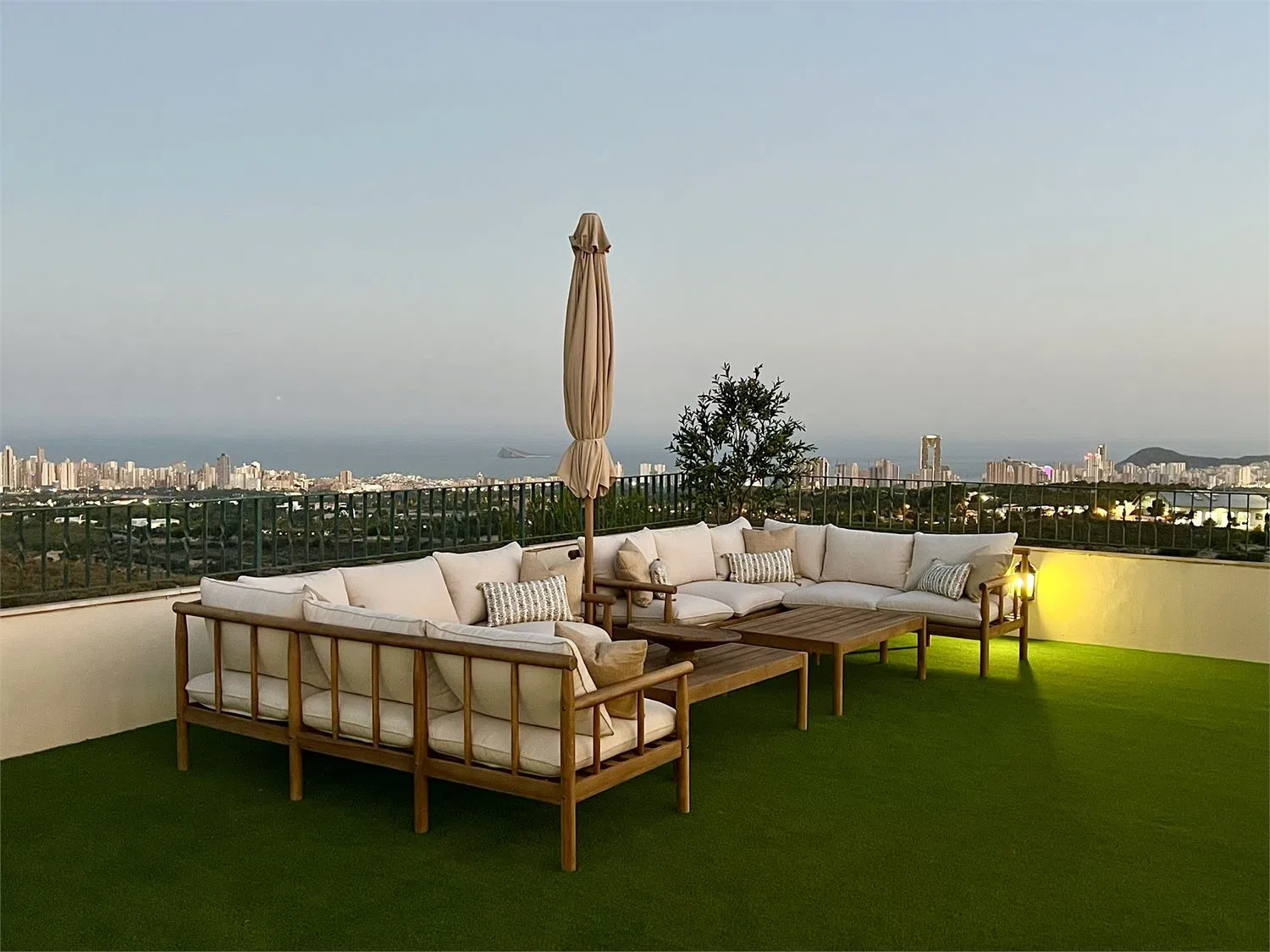 Niepodważalną ozdobą tej nieruchomości jest obszerna taras o powierzchni 170 m², zaprojektowany jako prawdziwe miejsce relaksu na świeżym powietrzu. Miejsce to wyposażone jest w różne strefy do wypoczynku i towarzyskich spotkań, idealne do spędzania słonecznych popołudni i magicznych wieczorów pod gwiazdami. Taras oferuje panoramiczne widoki, sięgające od Calpe do Benidorm oraz Alicante w dni jasne, zapewniając styl życia, który ciężko porównać z innymi ofertami. Jego rozmiar i aranżacja dają poczucie bogatego ogrodu przy minimalnej konserwacji, co czyni go idealnym dla osób ceniących piękno oraz wygodę.