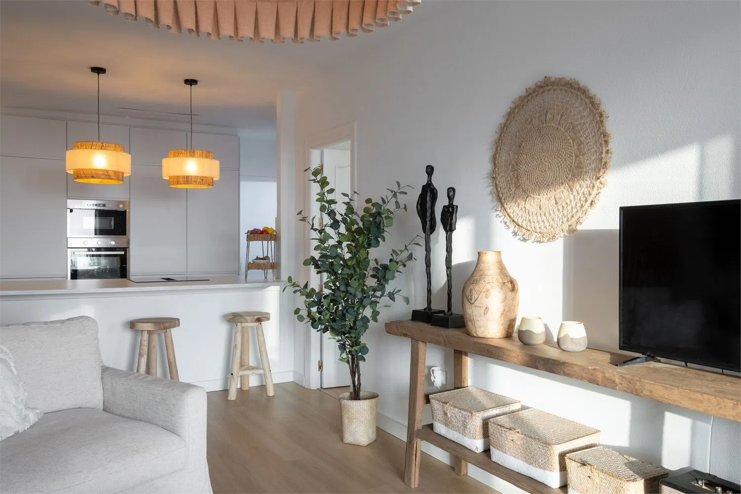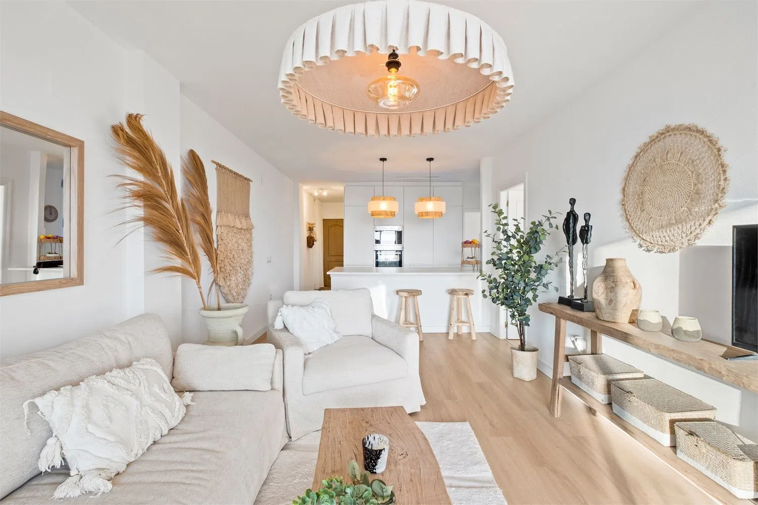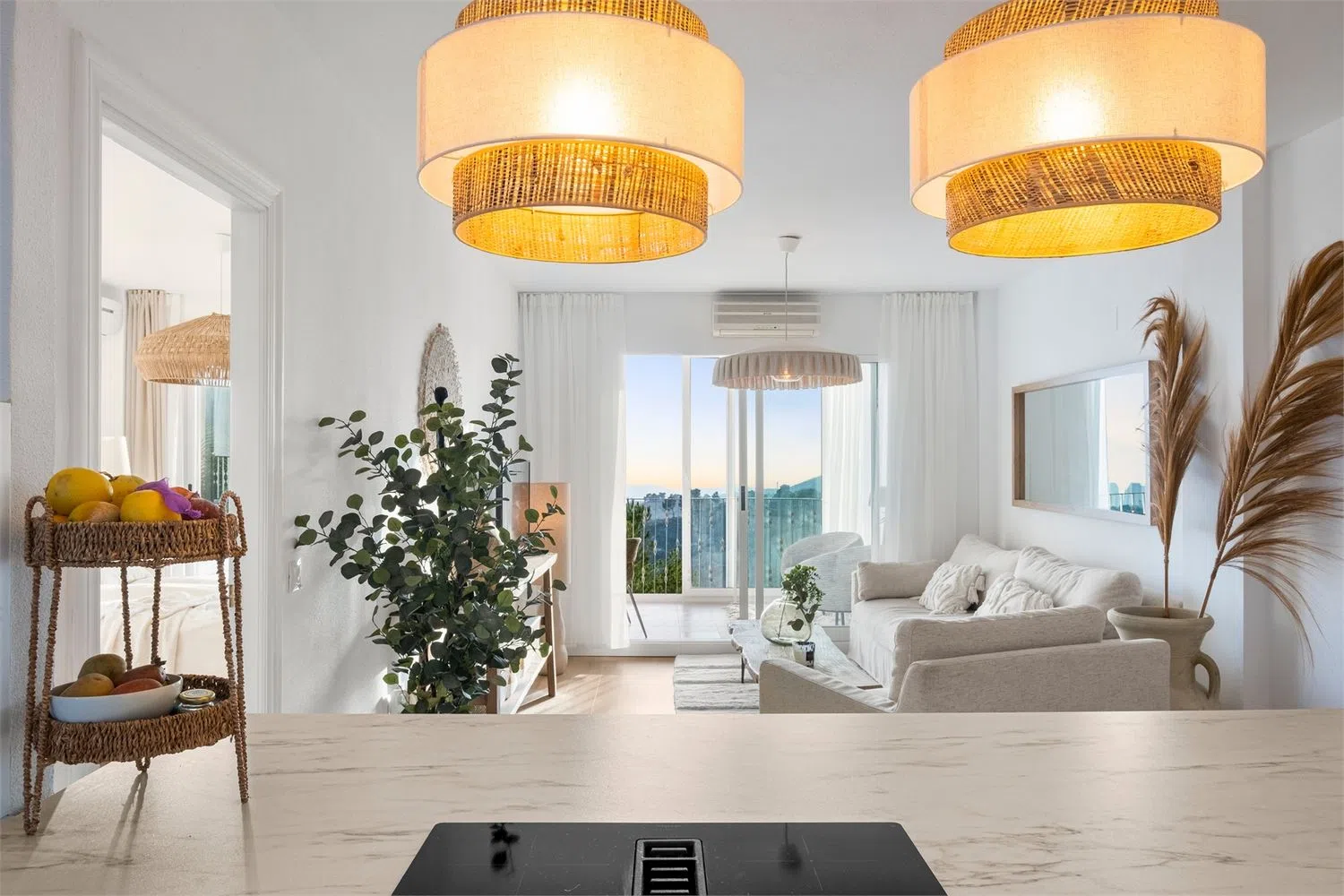 Nieruchomość składa się z trzech przestronnych sypialni, w tym spektakularnej głównej z bezpośrednim dostępem do tarasu oraz dwóch gustownie urządzonych łazienek, które podnoszą komfort codziennych rytuałów. W pełni odnowiona, otwarta kuchnia z wysokiej klasy sprzętem AGD perfekcyjnie wpisuje się w przestrzeń dzienną, czyniąc ją idealną zarówno do codziennych posiłków, jak i wyjątkowych okazji.
