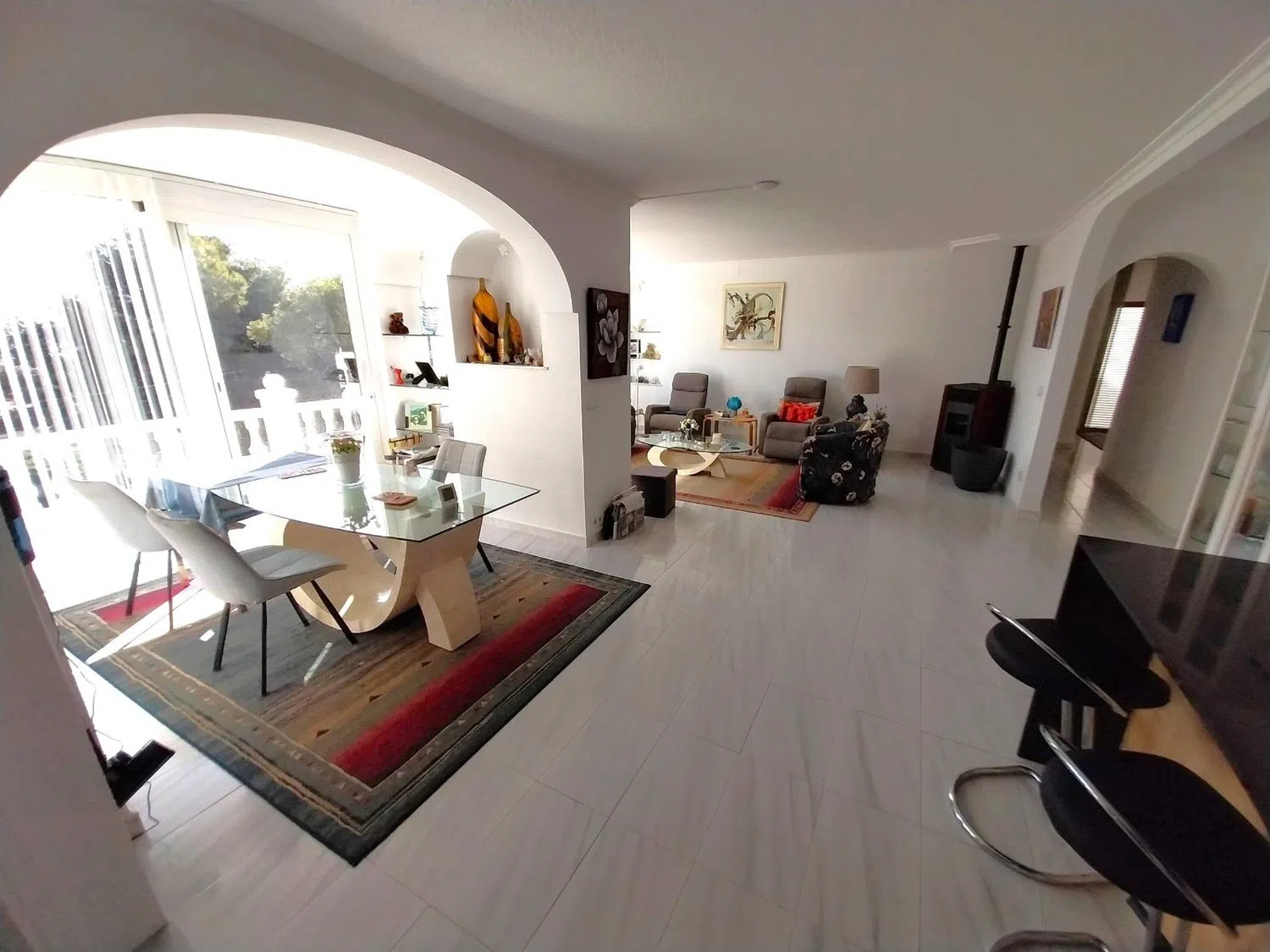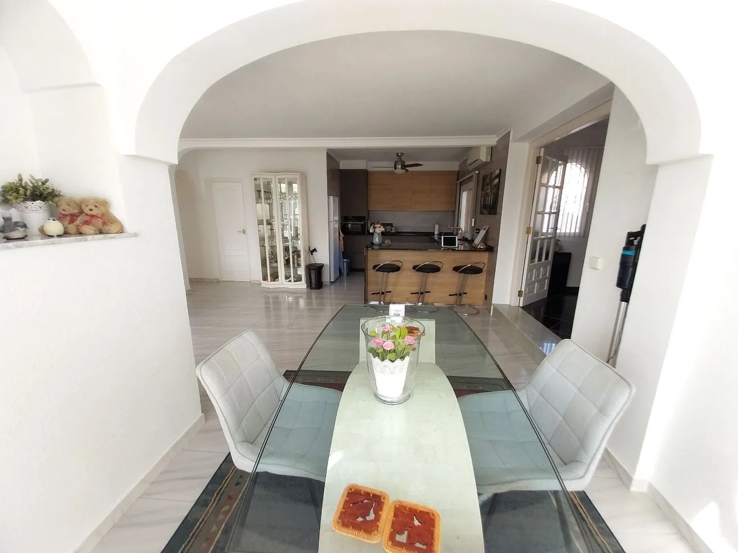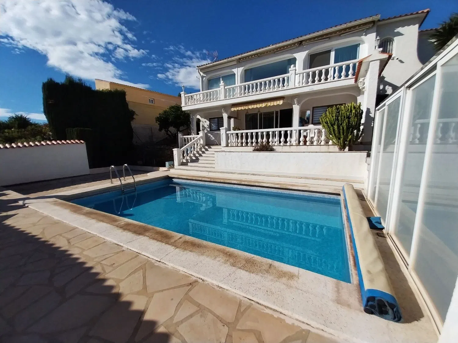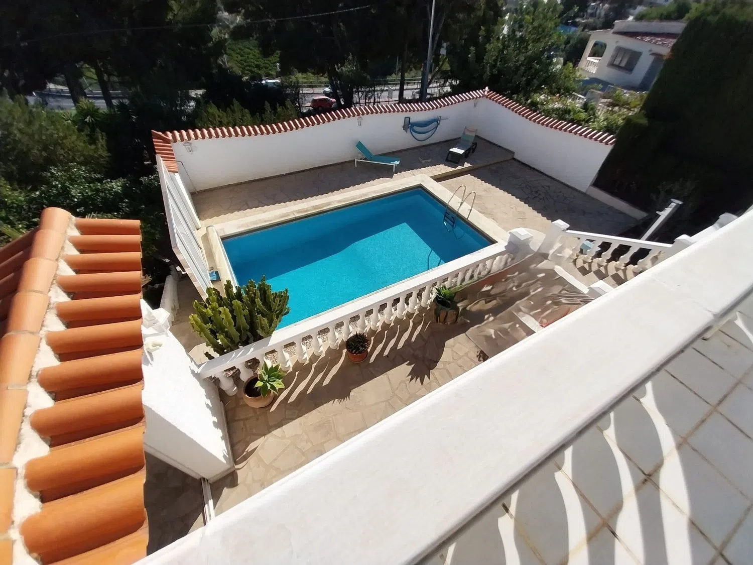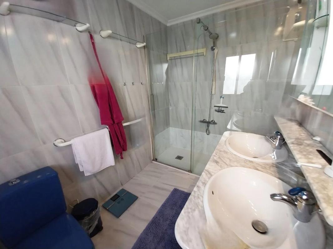 Pod domem znajduje się całkowicie niezależne mieszkanie dla gości, z salonem i otwartą kuchnią, dwoma sypialniami oraz odnowioną łazienką. Do mieszkania przynależy również taras oraz bezpośredni dostęp do prywatnego basenu i ogrodu. Nieruchomość oferuje liczne tarasy oraz pomieszczenia gospodarcze, a także prywatny garaż i wiele dodatkowych miejsc parkingowych.