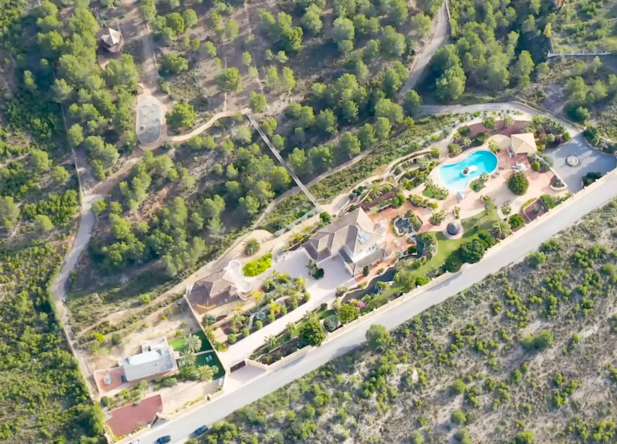 El paraíso privado de un millonario: la finca de lujo definitiva Para quienes buscan privacidad y un estilo de vida opulento, esta exclusiva villa es un sueño hecho realidad. Con innumerables características de primera calidad, esta propiedad es verdaderamente única. Asegúrese de ver el video para experimentar toda su grandeza. Aspectos destacados de la finca: Elegancia al aire libre: una piscina tropical con una cocina al aire libre totalmente equipada y duchas. Residencia principal: Espaciosa sala de estar de concepto abierto con un gran hall de entrada, una majestuosa escalera y una lujosa cocina abierta. Habitaciones con baño privado, garaje doble con habitaciones para el personal y casa de conserje. Piscina cubierta y zona de fiestas: piscina climatizada, jacuzzi, gimnasio, duchas y un salón de fiestas en la azotea con cocina independiente. Casa de huéspedes: totalmente privada y vallada, con dos dormitorios, una cocina elegante y un baño. Adiciones exquisitas: una réplica de un aviario inspirado en el zoológico de Birmingham, una plataforma para helicópteros, una enorme casa en el árbol, una cancha de pádel y un campo de petanca. Características del agua serena: un río artificial con una cascada, un estanque de koi y una cabaña africana para relajarse en verano. Paraíso paisajístico: diseñado por un reconocido arquitecto paisajista, el jardín de 34.000 m² está regado por dos fuentes de agua naturales para obtener agua gratuita con un sistema de depósito automático. Esto es más que una casa, es un extraordinario paraíso privado en la Costa Blanca. Puedes comprar la finca o puedes comprar la compania ( acciones).