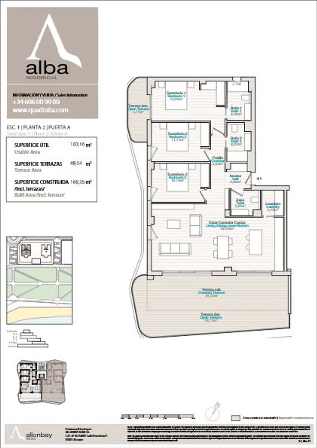 EXCLUSIVO APARTAMENTO DE OBRA NUEVA A 50 M DEL MAR Vive la vida mediterránea desde un exquisito apartamento en segunda planta, orientado al mar, dentro de la exclusiva promoción Allonbay Alba. Con 100 m² construidos de interior, esta vivienda de 3 dormitorios, 2 baños completos y 1 aseo te ofrece espacio, diseño y luminosidad en cada rincón. Una vivienda diseñada con exquisito detalle, que ofrece cocina totalmente equipada, aire acondicionado centralizado con sistema Air Zone, calefacción por suelo radiante, baños completos con sanitarios suspendidos, muebles, espejos y mamparas de ducha, persianas automáticas, sistema de domótica y mucho más. Disfruta de una terraza de 50 m², perfecta para contemplar el mar, tomar el sol o cenar al aire libre. Ubicado en una urbanización de ensueño que cuenta con piscina, jardines, gimnasio, sauna y zona infantil, este hogar combina comodidad, modernidad y tranquilidad a pocos pasos del mar y de los atractivos de Villajoyosa y Benidorm.