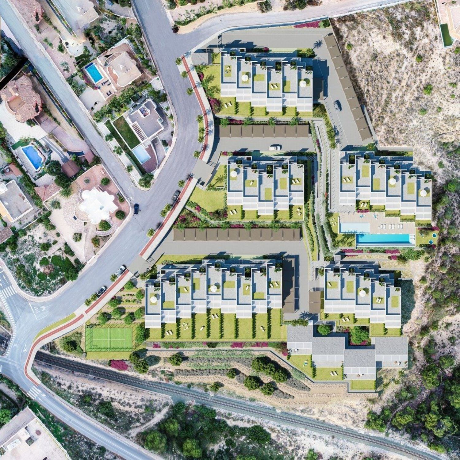 Osiedle położone jest w malowniczej miejscowości, która oferuje pełen zakres usług przez cały rok, a także lokalne atrakcje, pyszne jedzenie oraz tradycyjne festiwale. W odległości 15 minut znajduje się duże miasto, z którego można łatwo dotrzeć do lotniska, stacji szybkiej kolei oraz portu, a także skorzystać z rozbudowanej infrastruktury zdrowotnej i rozrywkowej. W zaledwie 8 minut dotrzesz do innego popularnego ośrodka turystycznego, gdzie znajdują się centra handlowe oraz bogata oferta usług rekreacyjnych.