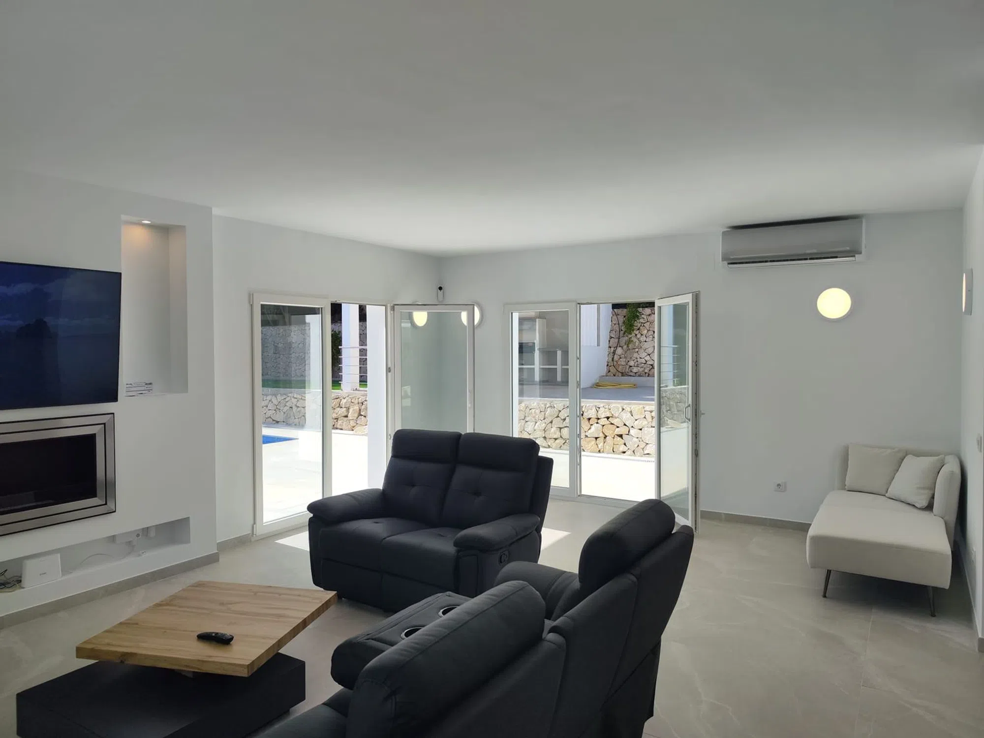 Descubre esta exclusiva villa, perfectamente situada a tan solo 5 minutos de Moraira. Ofreciendo una comodidad incomparable tanto en el interior como en el exterior, esta propiedad ejemplifica la vida lujosa. Características principales: Espacios habitables elegantes: La amplia y luminosa sala de estar se abre a la perfección a una amplia terraza al aire libre, que brinda acceso directo a la zona de la piscina y a una cocina de verano totalmente equipada, perfecta para el entretenimiento y la relajación. Cocina Gourmet: Disfrute de una cocina de última generación con electrodomésticos de primera línea, acabados impecables y abundante espacio de almacenamiento, ideal para cualquier entusiasta culinario. Alojamiento confortable: Esta villa cuenta con tres dormitorios dobles y tres baños completos, todos bellamente decorados con accesorios modernos y elegantes espejos de baño. Amplio estacionamiento y servicios adicionales: La planta baja incluye un garaje seguro con espacio para hasta cuatro coches, con una estación de carga para coches eléctricos. Además, esta planta alberga un cómodo lavadero y un aseo de invitados. Tecnología avanzada: La vivienda está equipada con un sistema domótico de última generación y una instalación solar, lo que garantiza una calificación energética "A" para una óptima eficiencia y sostenibilidad. Encanto Mediterráneo: El exterior cuenta con un jardín de bajo mantenimiento que conduce a una impresionante fachada que combina piedra y líneas elegantes, capturando la esencia del diseño mediterráneo. ¡No pierda la oportunidad de ser dueño de esta fantástica propiedad! Póngase en contacto con nosotros hoy mismo para programar una visita y experimentar el epítome de la vida de lujo.