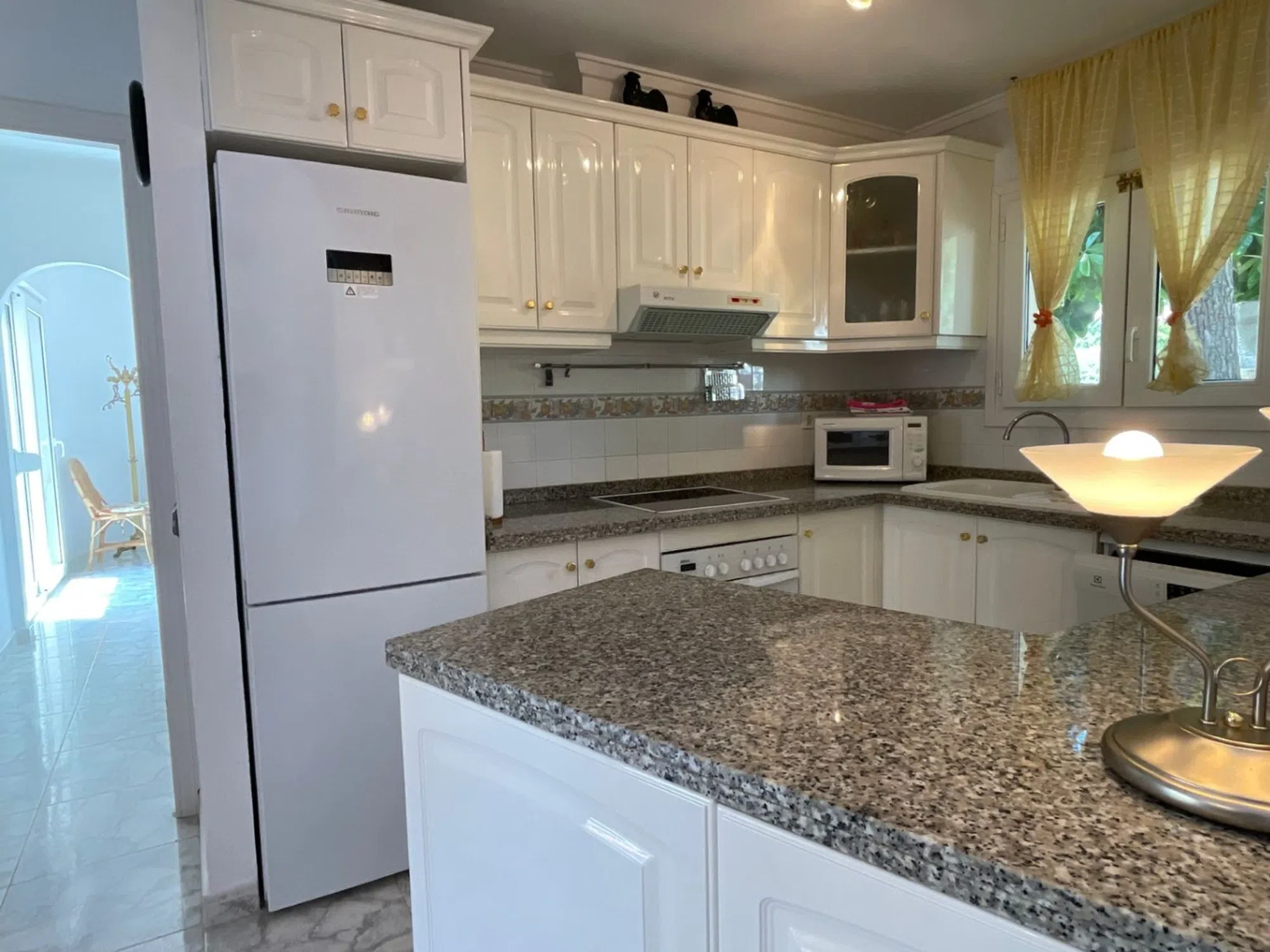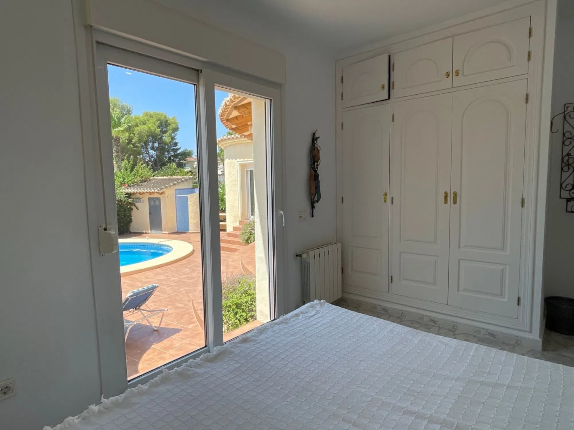Esta encantadora villa es de estilo tradicional, cuenta con 3 habitaciones y 3 baños, y ofrece vistas que permiten vislumbrar el Mediterráneo y el Peñón de Ifach, desde la habitación de arriba. La zona de naya, a la sombra, tiene vista a la piscina en forma de riñón y desde aquí, las puertas francesas te llevan al área de salón, comedor y cocina de concepto abierto. Las estancias son luminosas y acogedoras, y la cocina está totalmente equipada. En este nivel hay dos habitaciones dobles con armarios empotrados y puertas correderas que dan directamente a la naya y a la zona de la piscina. Una habitación es en suite y la otra tiene acceso al baño de cortesía. Una elegante escalera curva conecta el área de salón con la tercera habitación, que cuenta con baño en suite. Esta habitación se abre a un bonito balcón, con un pequeño vistazo al mar. También hay un espacio de almacenamiento debajo de las escaleras. Fuera, hay una ducha de piscina que tiene tanto agua caliente como fría, y la lavadora se encuentra en la casa de la piscina. Esta hermosa propiedad se beneficia además de su jardín consolidado, a través del cual un camino conduce a la amplia entrada y al garaje. Ubicada en la popular zona de Moravit, la ubicación no podría ser mejor, con supermercados, restaurantes, bares y una playa a poca distancia y el pueblo de Moraira a solo un corto trayecto en coche.