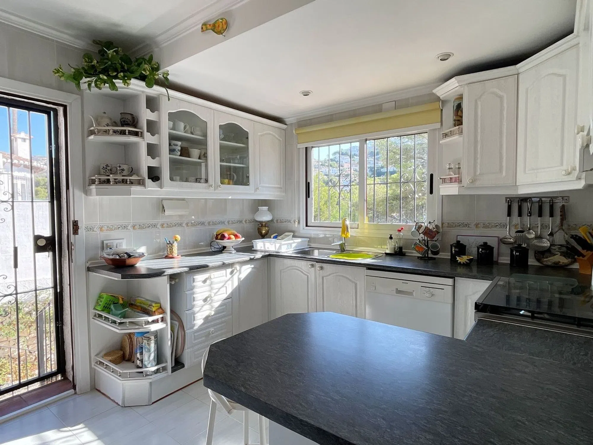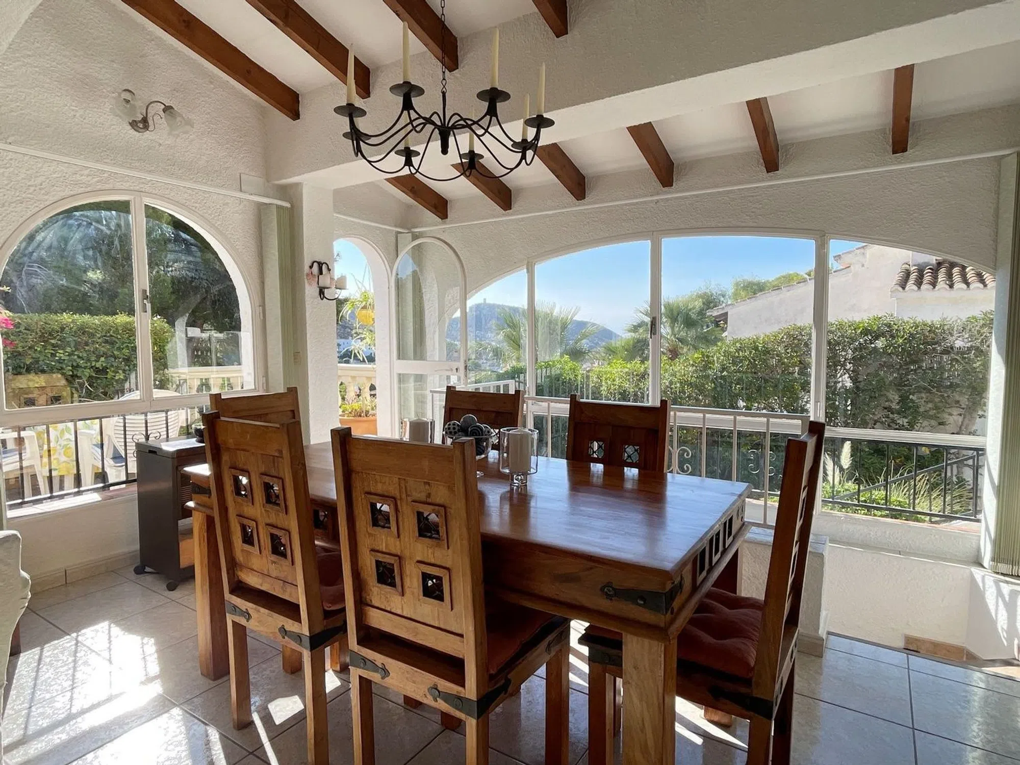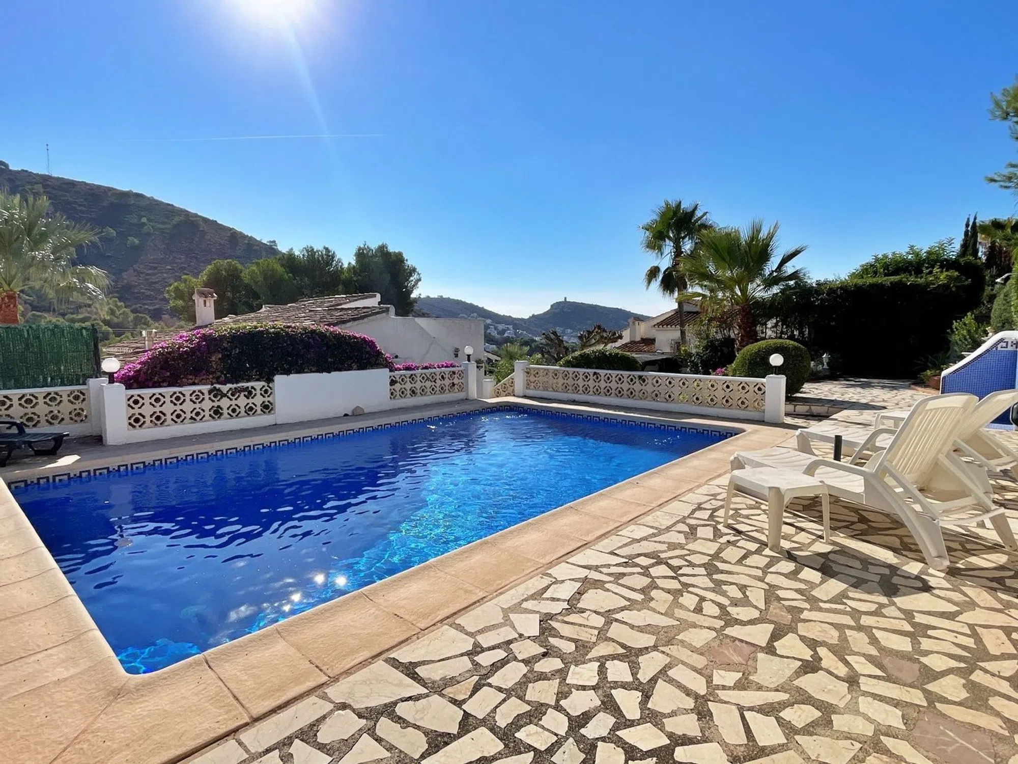 Bienvenido a esta encantadora y privada casa mediterránea, idealmente ubicada a poca distancia de la playa de El Portet y del vibrante pueblo de Moraira. La propiedad se accede a través de una puerta de entrada manual o de una entrada peatonal, con escalones que llevan a la puerta principal. En el interior, se le da la bienvenida con un salón y comedor de planta abierta que disfruta de hermosas vistas hacia El Portet y el valle. Desde el área de comedor, hay escalones que bajan, mientras que una puerta separada se abre a una soleada terraza, el lugar perfecto para disfrutar del desayuno con una vista al mar. El salón se conecta con un pasillo que lleva a una cocina separada completamente equipada con acceso directo al jardín. En este nivel, también encontrará un dormitorio doble con un baño familiar, así como un segundo dormitorio con baño en suite. La planta baja ofrece un versátil espacio de oficina con acceso directo al exterior, junto con una amplia suite principal que cuenta con un baño en suite. El exterior de la propiedad es igualmente acogedor, con jardines maduros y paisajísticos y senderos que serpentean a través de diferentes niveles, respaldados por un sistema de riego. Detrás de la casa se encuentra una impresionante piscina de 8x5m, proporcionando el refugio perfecto para relajarse y entretenerse. Con orientación sureste, la propiedad disfruta de una excelente exposición al sol durante todo el día. Con su entorno pacífico, hermosas vistas y cercana proximidad tanto a la playa como al pueblo, esta casa combina a la perfección encanto, privacidad y conveniencia.