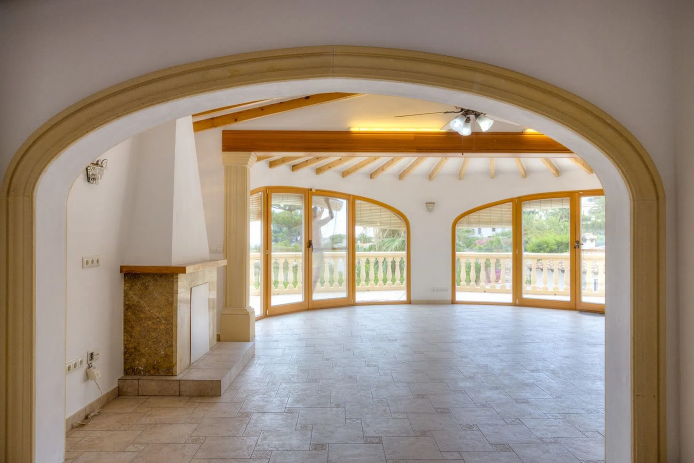Villa de estilo tradicional con vistas panorámicas al mar en MorairaEsta villa de estilo tradicional en Moraira ofrece vistas panorámicas al mar y está convenientemente ubicada a solo unos minutos en coche del centro y de la Playa l'Ampolla. A poca distancia a pie encontrará una zona comercial con bares, restaurantes y un supermercado. La propiedad se encuentra en excelentes condiciones y cuenta con un salón principal de planta abierta y bien proporcionado, y un amplio dormitorio principal, ambos con magníficas vistas al mar. Con una superficie construida de 415,43 m², la propiedad incluye una casa principal y un alojamiento independiente para invitados de 110,89 m², además de una piscina privada. Características destacadas de la propiedad Salón de 70,24 m². Orientación sur con excelente exposición solar. Calefacción por suelo radiante con termostatos individuales. Aire acondicionado frío/calor. Gran privacidad en una tranquila calle residencial sin ruido de tráfico. Alarma de seguridad y carpintería exterior de calidad con doble acristalamiento y manillas con alarma. • Aparcamiento cerrado para varios vehículos y plaza de aparcamiento cubierta para dos coches. Paneles solares fotovoltaicos. Dos apartamentos de invitados independientes (posibilidad de conectar zonas). Detalles de la propiedadLa vivienda principal, en la planta superior, cuenta con un salón diáfano de 70,24 m² con cocina moderna, salón y comedor. El dormitorio principal, con su propia suite de 33,21 m², también se encuentra en esta planta. Tanto el salón como el dormitorio principal dan a una terraza-balcón de 53,41 m² con vistas al mar. Esta planta también incluye un dormitorio de invitados, un baño y un despacho/tercer dormitorio con acceso al jardín. La planta baja consta de un apartamento de invitados independiente con dos dormitorios, dos baños, un despacho, un salón, un trastero y una terraza cubierta junto a la piscina de 53,41 m².