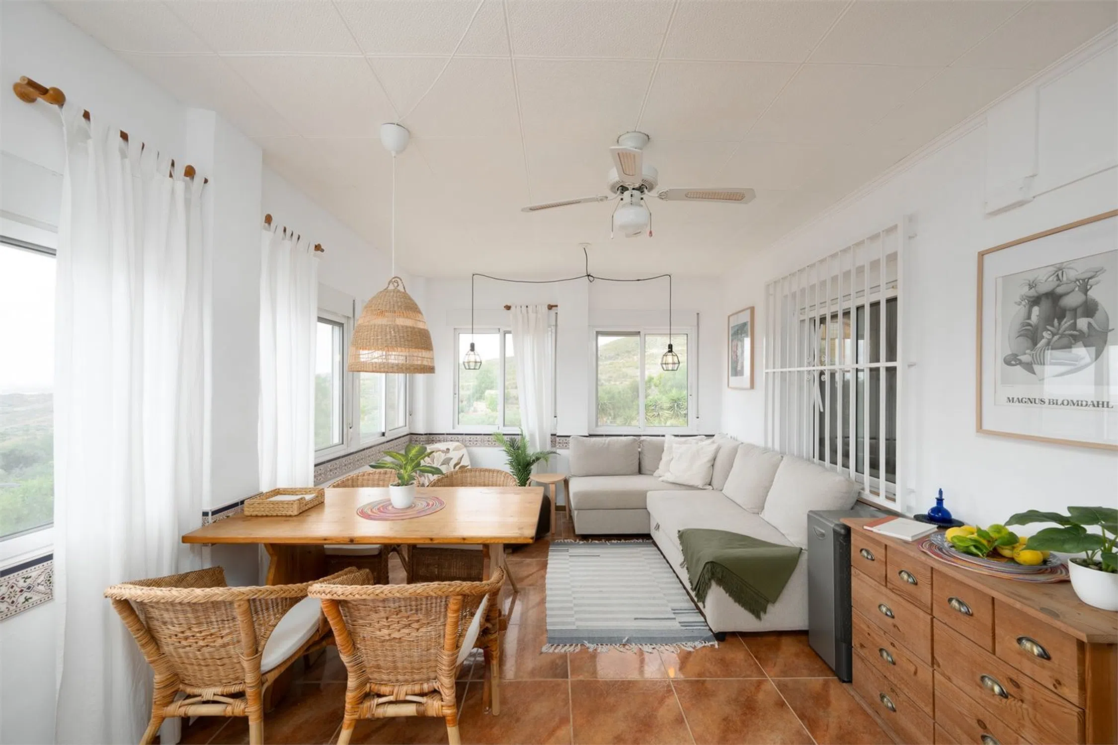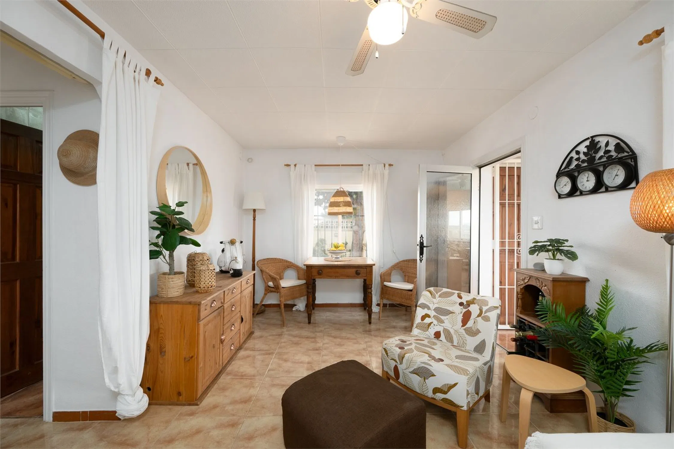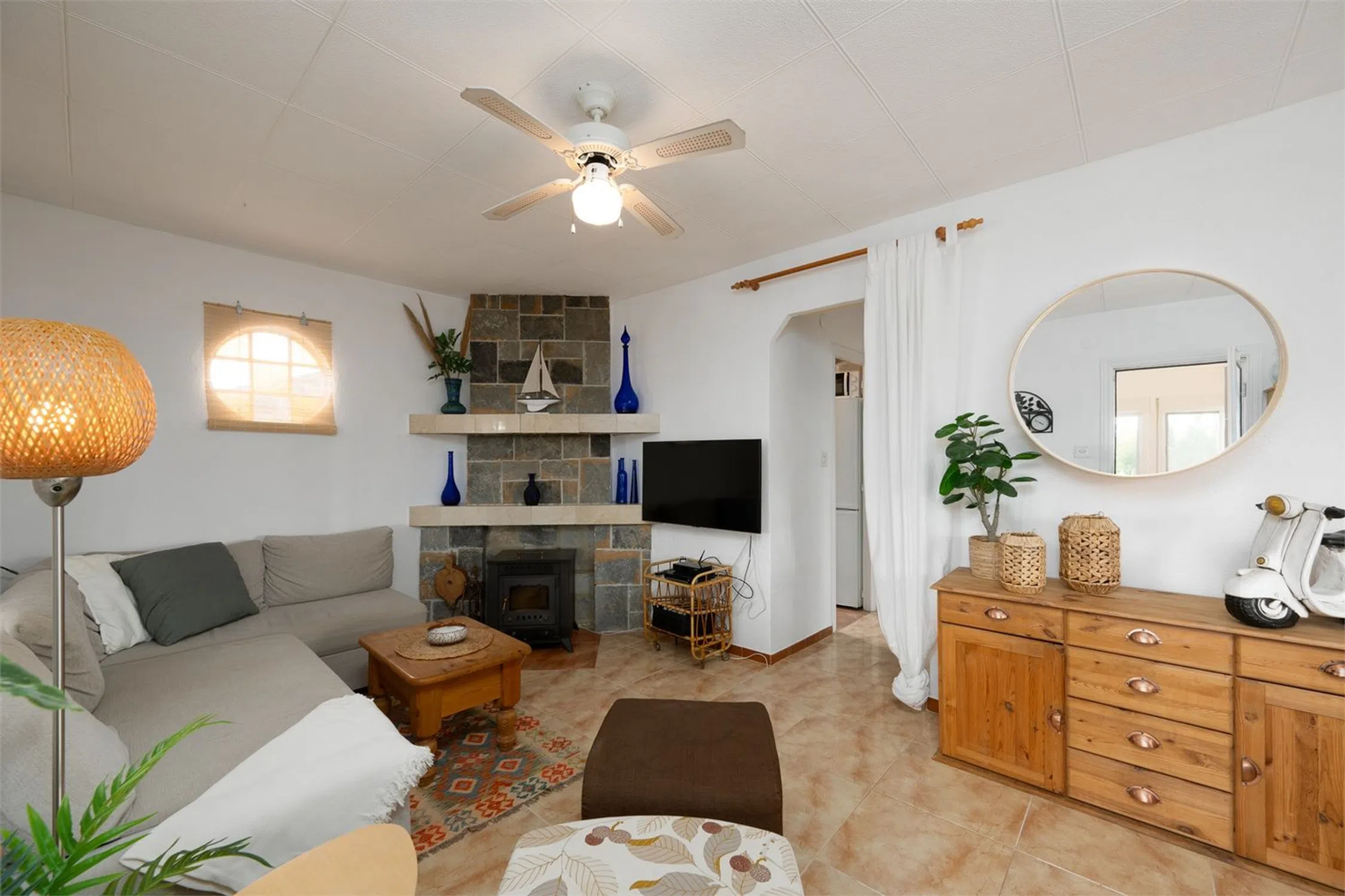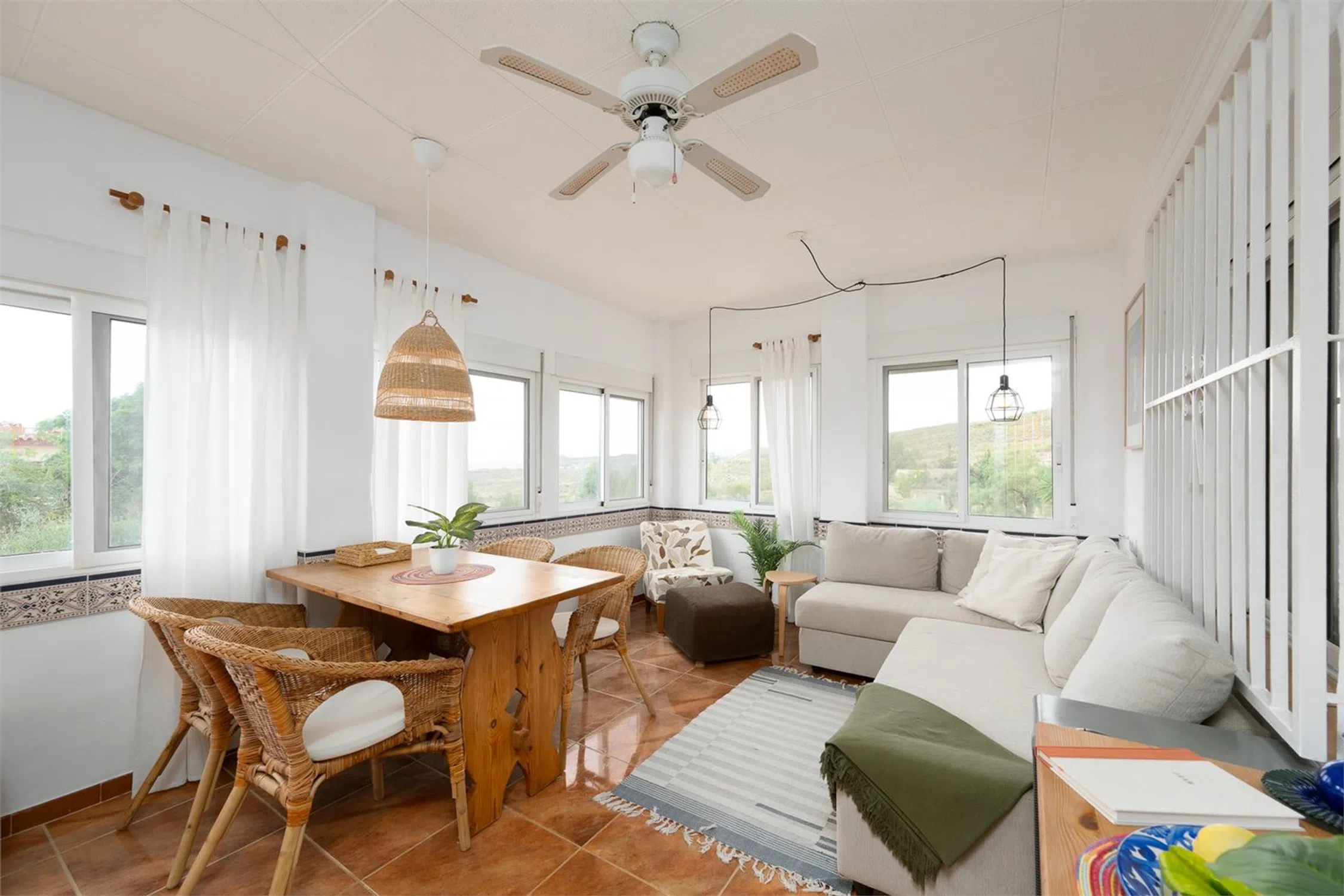 Chalet con piscina y vistas! Esta encantadora villa de dos plantas se encuentra en una parcela de aproximadamente 2000 m² y cuenta con tres dormitorios, dos baños y un amplio garaje. La vivienda cuenta con camas adicionales gracias a la incorporación de sofás cama, lo que da un total de 8 plazas para dormir en la casa principal y 4 plazas en la zona de invitados. La casa cuenta con piscina privada, jacuzzi y una vegetación madura alrededor de la propiedad que proporciona un entorno exterior privado y verde. Aquí vivirá en un oasis de paz rodeado de montañas, pero cerca de todo lo necesario para disfrutar de una maravillosa vida bajo el sol. La casa se distribuye en dos plantas y presenta una distribución sencilla y funcional. Los dormitorios se distribuyen entre las plantas, lo que permite tanto el alojamiento familiar como las instalaciones para invitados. La planta baja cuenta con cocina independiente, salón y dormitorio con baño, perfecto para invitados o para actividades de alquiler. La casa se mantiene en un nivel excelente y está lista para entrar a vivir de inmediato. Hay aire acondicionado instalado en casi toda la casa y el salón también tiene chimenea. Hay agradables zonas para pasar tiempo al aire libre y en el interior con familiares y amigos, y el precioso jardín ofrece amplio espacio para organizar barbacoas, fiestas en la piscina y un parque infantil. Junto a la casa también hay una terraza acristalada, perfecta para los meses más frescos. La villa también cuenta con un práctico garaje con trastero. La villa se encuentra en una zona tranquila a las afueras de Alicante. La playa más cercana está a unos 20-25 minutos en coche. El aeropuerto de Alicante-Elche está a unos 30 minutos en coche, lo que facilita el acceso incluso a quienes viajan diariamente o reciben visitas internacionales. El centro de Alicante se encuentra a unos 30 minutos, donde podrá disfrutar de una amplia oferta gastronómica, cultural y nocturna. RESIDENCIA Jardín El jardín está bien cuidado y tiene una superficie de aproximadamente 2000 m². Está parcialmente pavimentado y es de fácil mantenimiento, pero también cuenta con césped, árboles y plantas para disfrutar. Hay una amplia piscina privada con tumbonas. En el jardín hay varias zonas de estar y, en la parte trasera de la casa, un comedor más amplio y un jacuzzi. Desde la parcela se disfruta de una hermosa vista a las montañas y a los numerosos olivos. Planta superior Porche acristalado Una luminosa sala exterior con otra zona de sofás y mesa de comedor. Salón Una amplia sala con amplio espacio para varias zonas de estar o muebles de comedor. Cuenta con chimenea y ventanas en diferentes direcciones que dejan entrar la luz. Hay un split de aire acondicionado instalado. Aseo Inodoro completamente alicatado con lavabo, ducha y ventana. Recibidor En el recibidor hay un aparato de aire acondicionado, muy práctico para refrescar o calentar los dormitorios. Dormitorio 1 Amplio dormitorio con paredes pintadas de blanco, ventilador de techo, armarios empotrados y espacio para una cama doble. Dormitorio 2 Un dormitorio un poco más pequeño, pero con armario empotrado, ventilador de techo y espacio para dos camas individuales. Planta inferior Casa de invitados Salón Una bonita habitación con muebles claros, espacio para un grupo de sofás, un sillón y un mueble de TV. Dormitorio 3 Un amplio dormitorio con espacio para armarios y una cama doble. Baño 2 Un baño completamente alicatado y fresco. Cocina Cocina completa con espacio de almacenamiento y todos los electrodomésticos. Ventanas y buenas encimeras. Garaje Un amplio garaje que también funciona como trastero y lavadero.