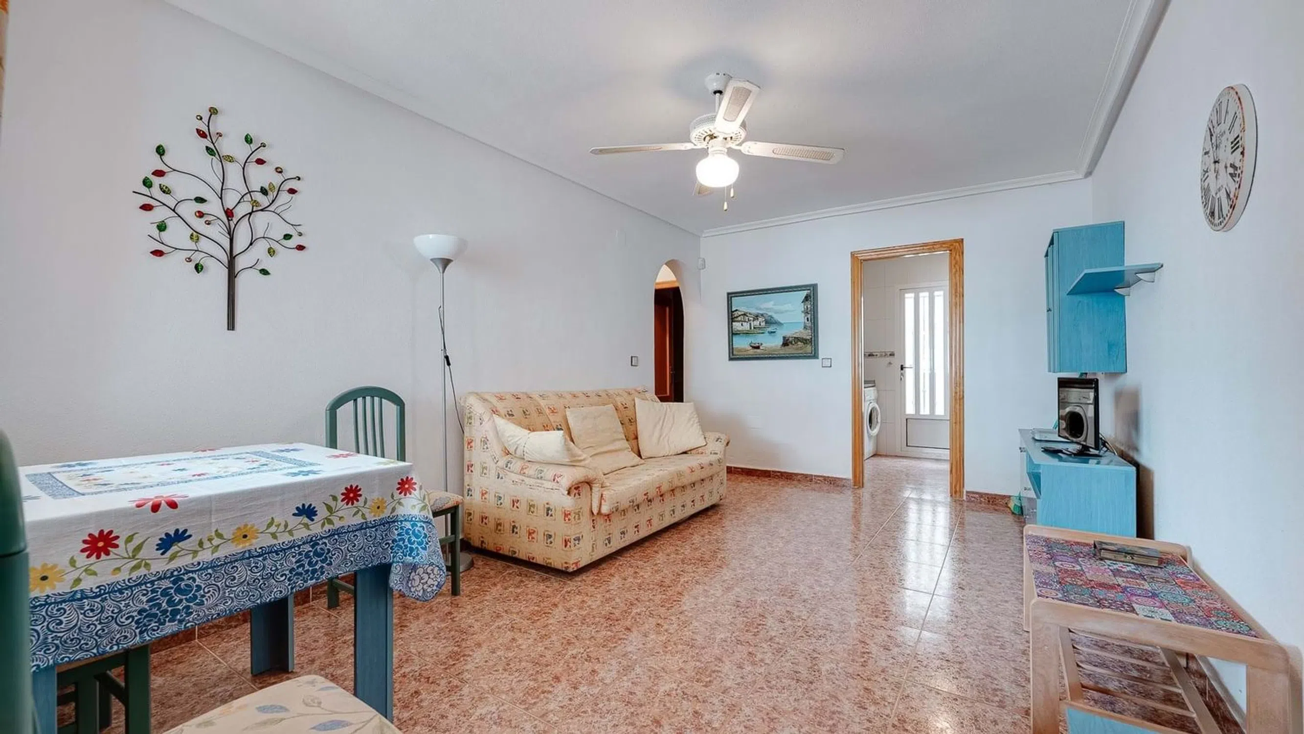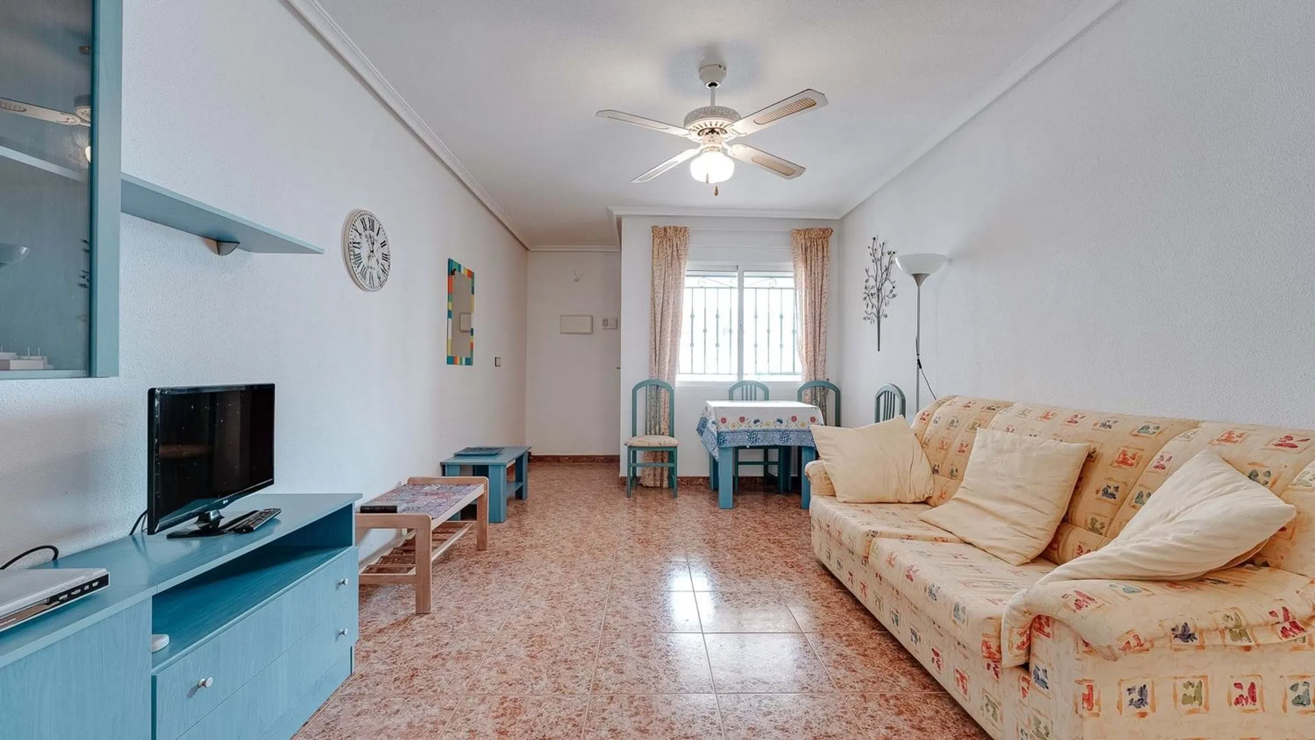 Nos complace presentar este encantador apartamento en planta baja de 2 dormitorios con amplia terraza en el codiciado Vistabella Golf. Ubicado en la deseable comunidad de Vistabella Golf, este bien presentado apartamento en planta baja de 2 dormitorios y 1 baño ofrece un generoso espacio habitable interior y exterior, todo a un corto paseo de la hermosa piscina comunitaria y los servicios locales. Situada en una tranquila calle residencial, la propiedad le da la bienvenida con un espacioso jardín delantero, perfecto para cenar al aire libre o tomar el sol. Un solo escalón conduce a una terraza cubierta, ideal para la relajación a la sombra y fácilmente cerrada para crear una habitación adicional o un solárium de invierno. La puerta principal se abre a una luminosa y espaciosa sala de estar y comedor, que ofrece un espacio confortable para la vida cotidiana. Esta fluye a la perfección hacia una cocina totalmente equipada con una zona de lavadero abierta contigua, que proporciona mayor practicidad y almacenamiento. Desde el espacio principal de la sala de estar, un pequeño pasillo conduce a dos dormitorios de buen tamaño, ambos con armarios empotrados, y un moderno baño familiar ubicado en el medio. El apartamento disfruta de acceso a una fantástica piscina comunitaria ubicada a solo una calle de distancia, rodeada de áreas para tomar el sol y sentarse, perfectas para disfrutar del estilo de vida mediterráneo. Ya sea que esté buscando una residencia permanente o una escapada de vacaciones, esta encantadora propiedad en Vistabella Golf ofrece una gran oportunidad en una ubicación vibrante y bien conectada. 5 Real Estate es la agencia inmobiliaria internacional de tarifa fija y servicio completo de más rápido crecimiento en España, con numerosas oficinas en el norte y el sur de la Costa Blanca, así como en la región de Murcia. Estamos comprometidos a brindar un servicio transparente y de primera clase a todos nuestros clientes, ya sean compradores o vendedores. Desde el momento en que se ponga en contacto con nosotros por primera vez, se dará cuenta de la diferencia que brindamos y promovemos como estándar. Puede estar seguro de que está tratando con profesionales eficientes y confiables con muchos años de experiencia en el sector inmobiliario español. En 5 Real Estate solo vendemos propiedades que están directamente listadas con nosotros, lo que significa que conocemos personalmente a cada uno de los vendedores, sus hogares y las áreas en las que se encuentran. Dada nuestra extensa cartera de propiedades listadas directamente, estamos seguros de que podemos encontrar la propiedad adecuada para satisfacer sus necesidades. Así que, haga una consulta hoy mismo y descubra por qué somos tan diferentes y por qué nos estamos convirtiendo en la agencia preferida tanto para compradores como para vendedores.