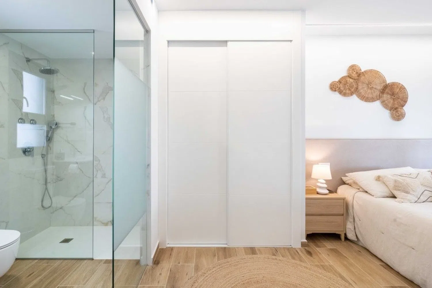 Ten piękny apartament oferuje wiele udogodnień, w tym klimatyzację z funkcją chłodzenia i ogrzewania z regulacją temperatury, dodatkową przestrzeń na przechowywanie, system domofonowy oraz bezpieczne miejsce parkingowe. Ekskluzywny kompleks dysponuje również wspaniałym wspólnym basenem, małym siłownią oraz boiskiem do petanki. W przypadku bardziej szczegółowych informacji, zachęcamy do kontaktu z nami.