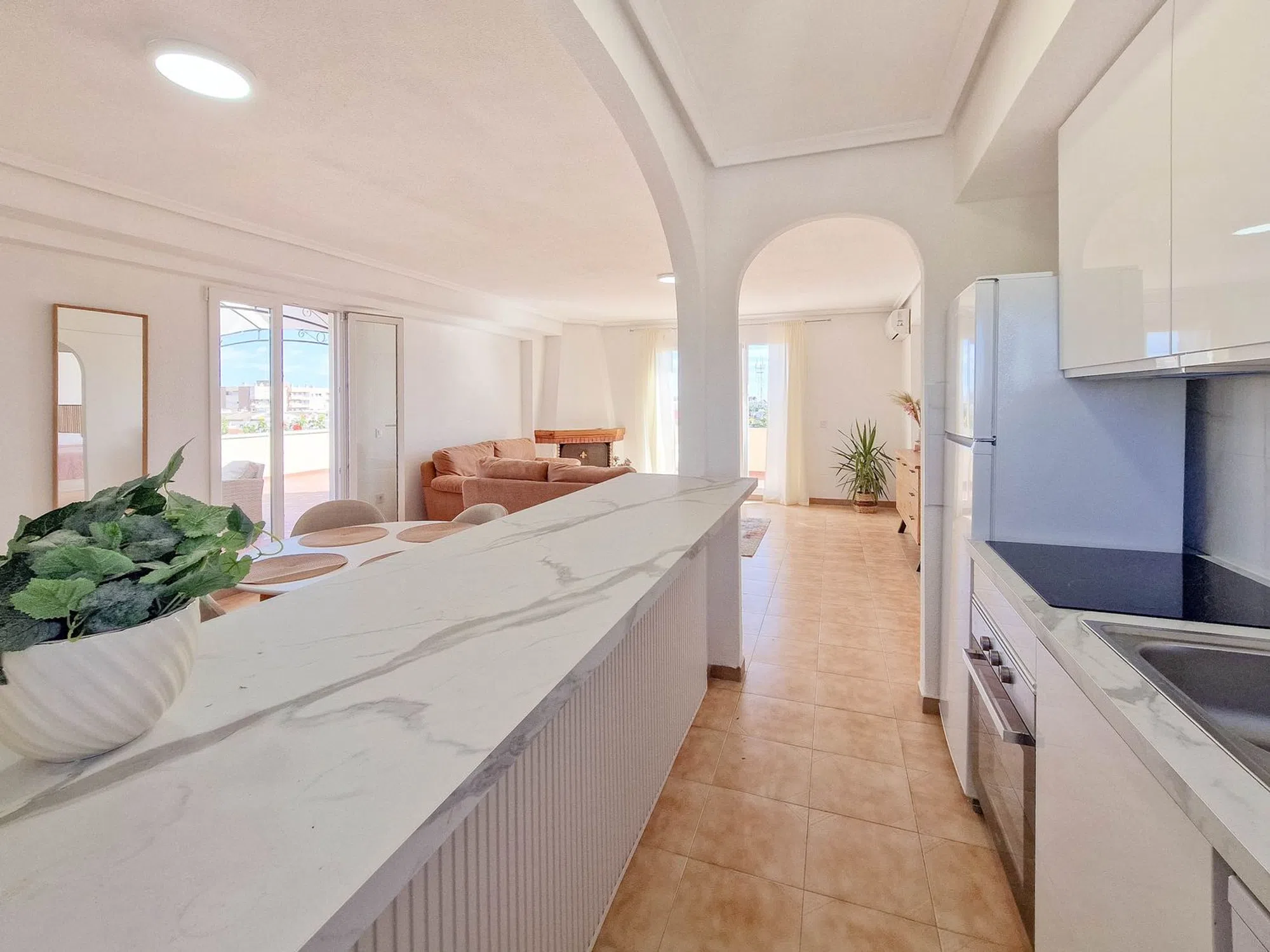 Atico renovado en Punta Prima! Ven a conocer este atico renovado ubicado en el corazon de Punta Prima. Con un amplio Solarium y una segunda terraza orientada al sur para disfrutar del sol durante todo el año y que dejen entrar mucha luz natural en todos los rincones de la propiedad. Un interior fresco y moderno con dos dormitorios y dos baños. Excelente ubicacio rodeado de todo tipo de restaurantes y bares, supermercados y demas servicios. La playa esta a menos de 1km, por lo que pùedes disfrutar de un paseo junto al mar.