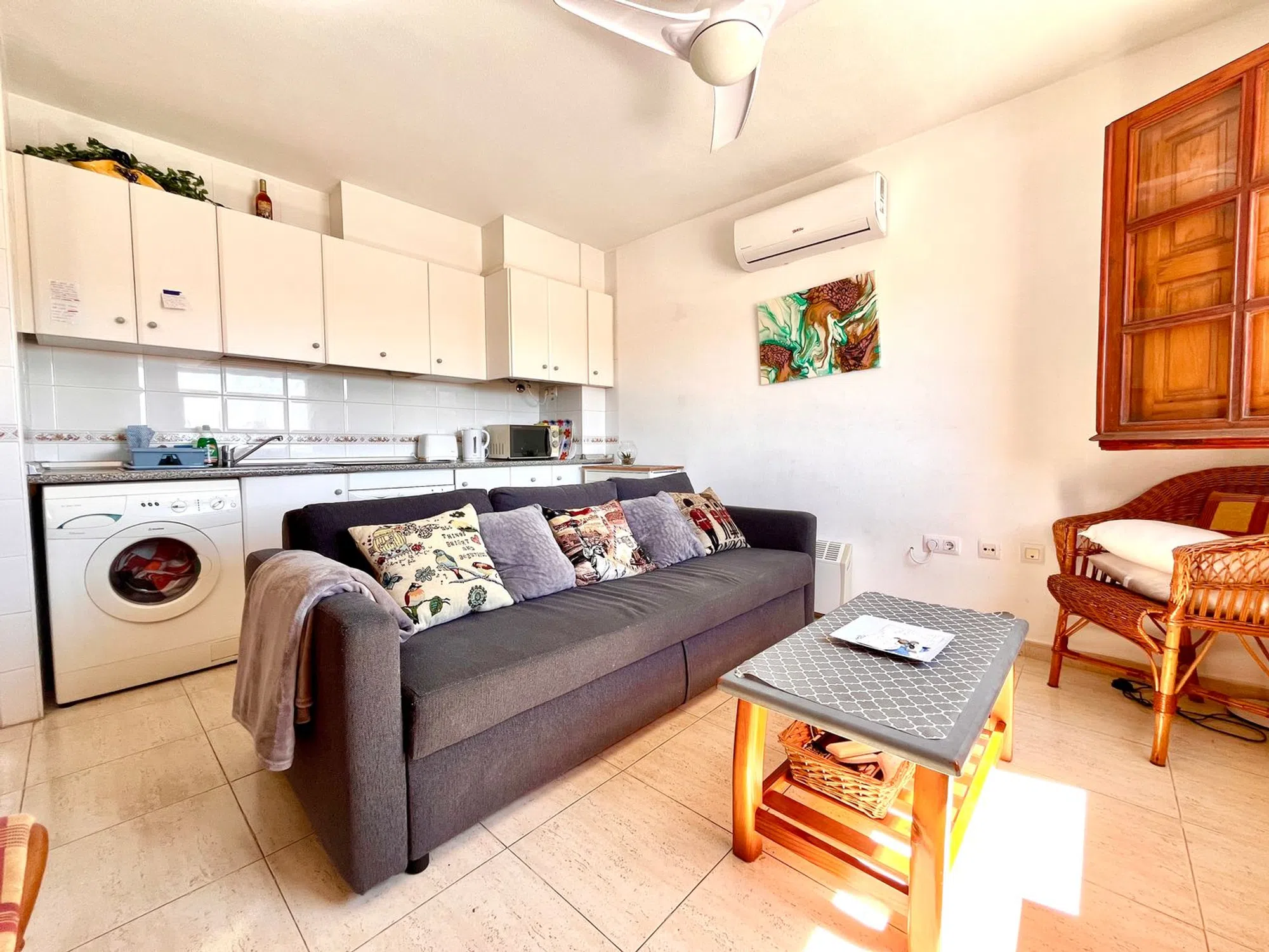 ¡GANGA! Apartamento en planta alta en Playa Flamenca. 2 dormitorios 1 baño Cerca del bar de la piscina Aparcamiento fuera de la carretera Precioso apartamento completamente amueblado, a menos de 10 minutos a pie del bar y restaurante de la piscina de pago con minigolf. Ideal como casa de vacaciones para cerrar y dejar, situado en un complejo cerrado con aparcamiento fuera de la carretera. A solo 5 minutos a pie de tiendas, bares, restaurantes y parques locales. A solo 10 minutos a pie del popular mercado de los sábados y a solo 20 minutos a pie del centro comercial La Zenia Boulevard. A solo 5 minutos en coche de las hermosas playas de la costa o de los campos de golf.