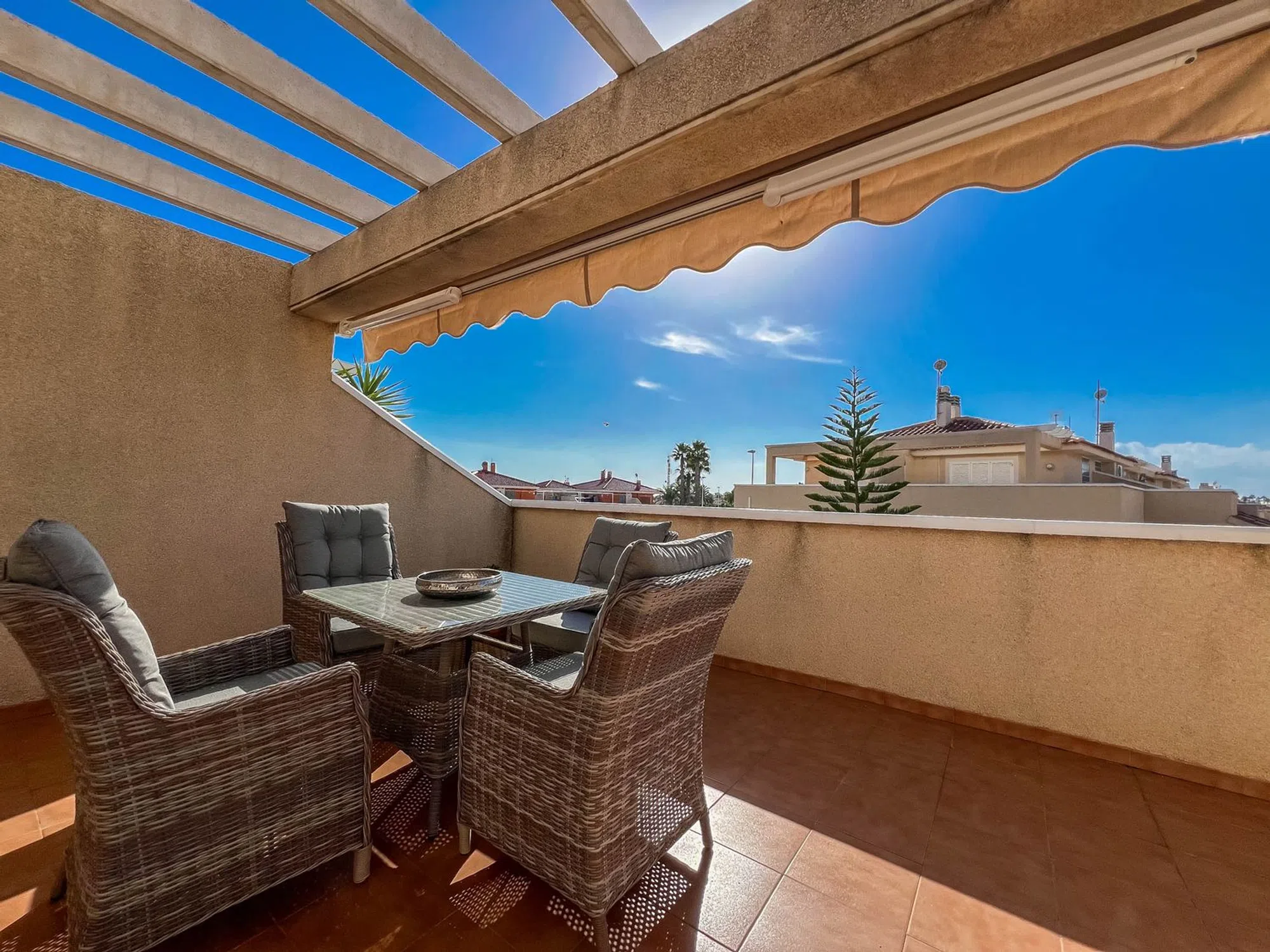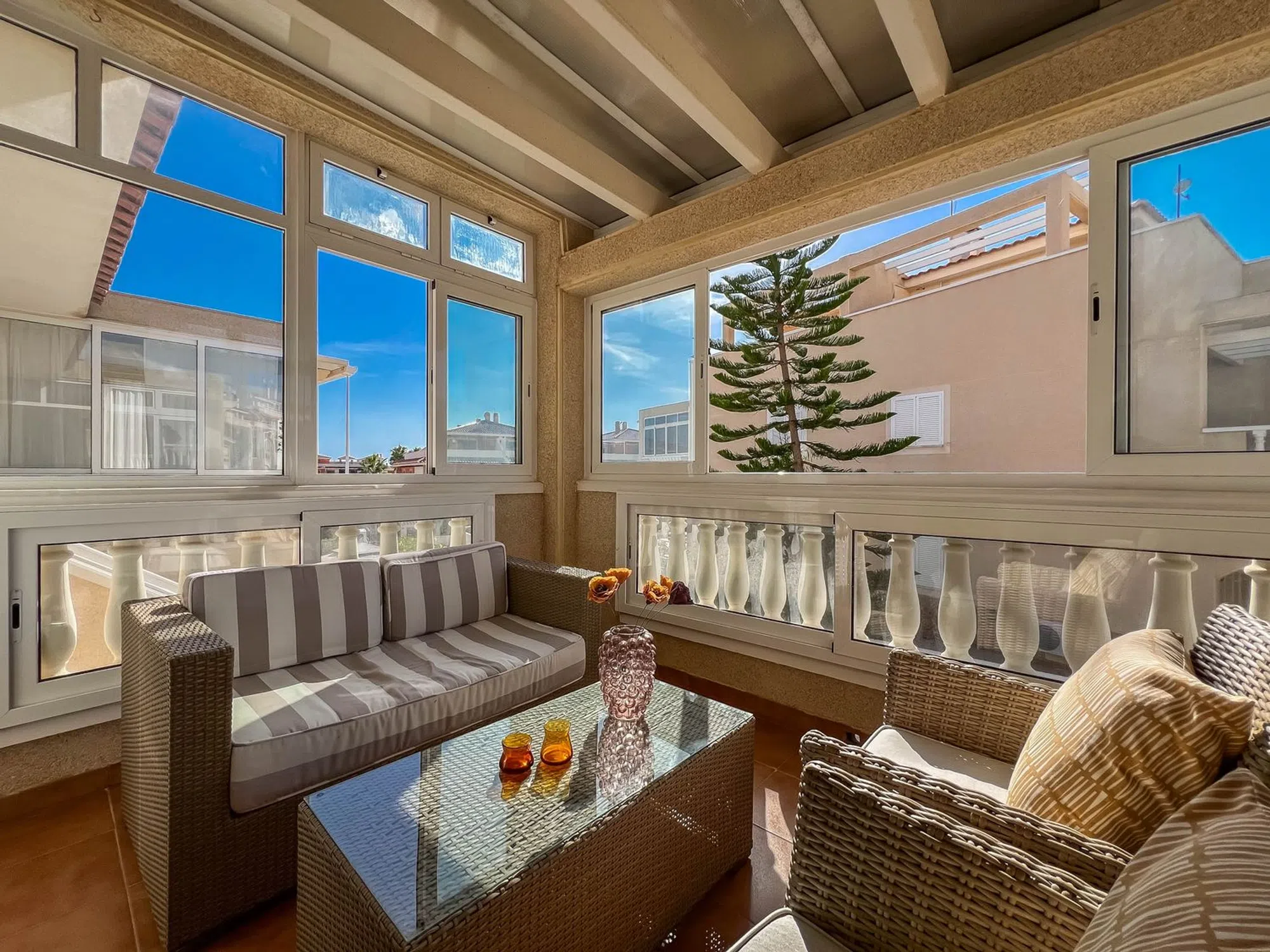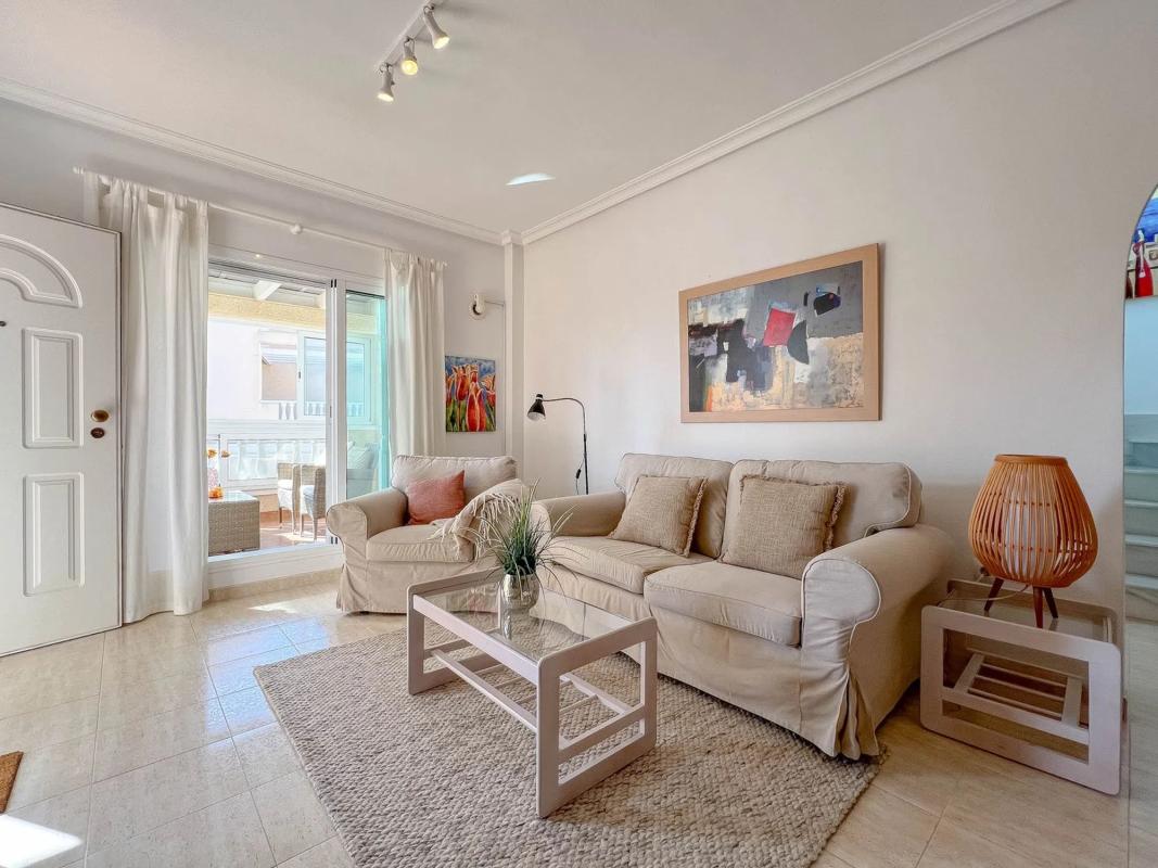 Ático en Zeniamar V! En el popular residencial Zeniamar V, presentamos un fantástico ático con una encantadora orientación suroeste! La vivienda está distribuida en dos plantas y ofrece amplios espacios con dos salones, dos baños, dos dormitorios, un balcón acristalado y un solarium. La urbanización, muy bien cuidada, cuenta con dos zonas comunitarias con piscina. La ubicación es excelente, a poca distancia a pie de bares, restaurantes, minigolf y un centro de pádel. Además, tanto las tiendas como las hermosas playas se encuentran a solo unos minutos en coche. La vivienda se vende completamente amueblada y lista para entrar a vivir!