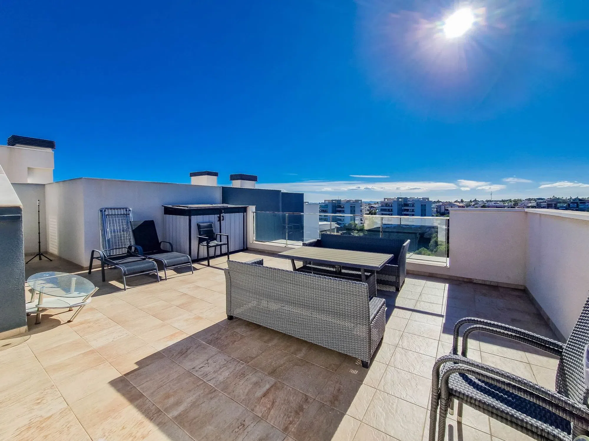 Hermoso Atico con Solarium Moderno ático en Los Dolses orientado al sur diseñado para ofrecer confort, estilo y una calidad de vida excepcional con 3 dormitorios y 2 baños, uno de ellos ensuite. Luminoso salón-comedor con acceso directo a una terraza acristalada, perfecta para relajarte durante todo el año. Desde la vivienda se accede también a un espectacular solárium, ideal para tomar el sol y disfrutar al aire libre con total privacidad. Incluye plaza de garaje. Exclusiva urbanización que ofrece piscina comunitaria, spa, gimnasio y parque infaltil. A pocos minutos camiando encuentras todo lo necesario: supermercados, restaurantes y demas servicios.