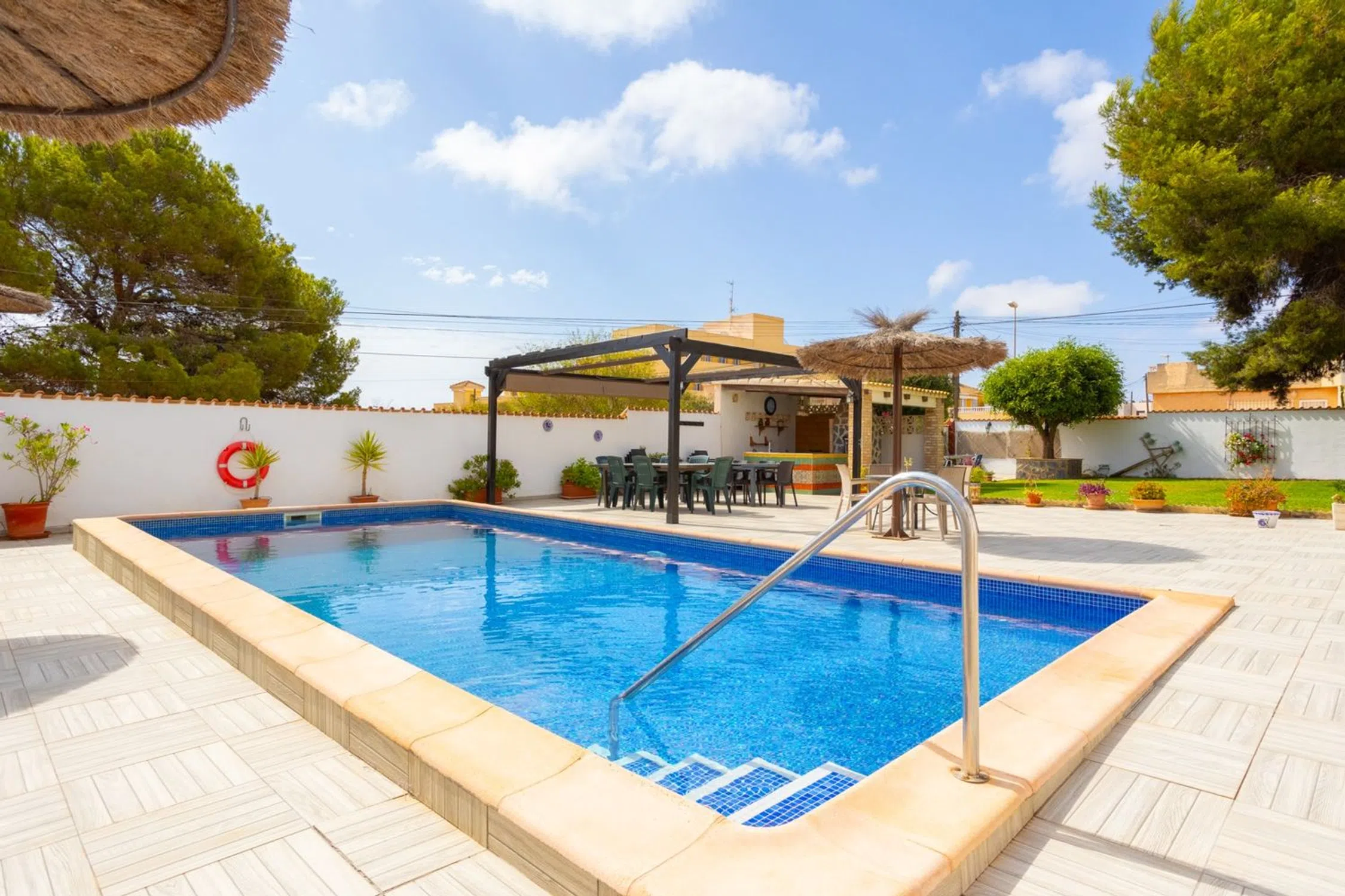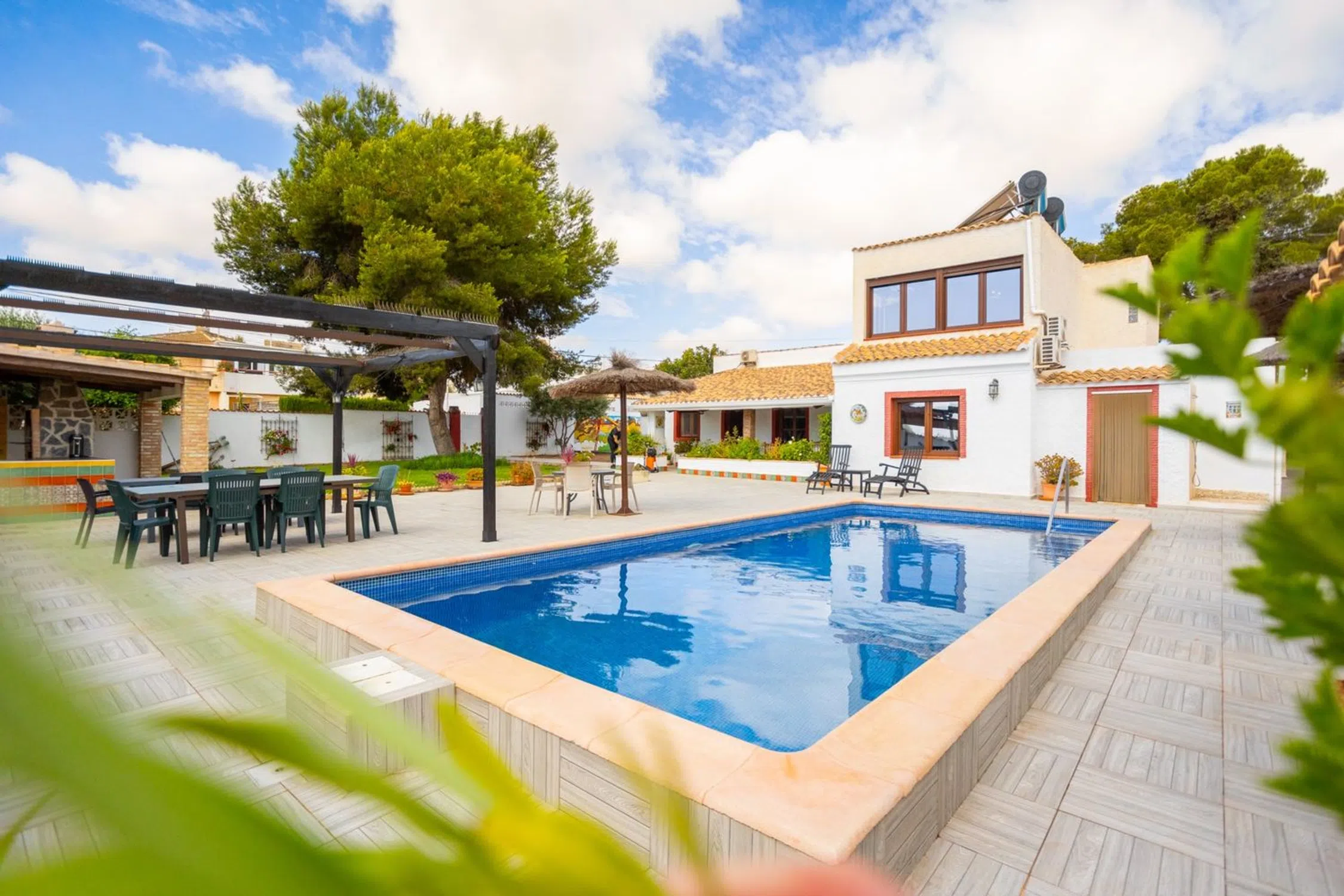 Amplia y cuidada villa con piscina climatizada y proximidad al mar, golf y entretenimiento: perfecta para familias numerosas o alquileres vacacionales. Una cálida bienvenida a Lomas de Cabo Roig, una zona agradable y popular en el sur de la Costa Blanca, y a esta generosa villa con nueve dormitorios, piscina privada climatizada, licencia turística y fantásticas áreas al aire libre. Una elección perfecta para quienes buscan una casa de vacaciones espaciosa para una familia extensa, para vivir entre generaciones o para quienes desean invertir en una casa con potencial de alquiler. La casa se distribuye en diez estancias, nueve de ellas dormitorios, y es luminosa, está bien planificada y muy bien cuidada. Aquí hay mucho espacio tanto para descansar como para socializar, ya sea para pasar tiempo con sus seres queridos u ofrecer a los huéspedes una estadía cómoda con mucho espacio privado. La gran trama es un sueño en sí misma. Aquí encontrará: Piscina privada climatizada: para disfrutar del baño durante todo el año Cocina al aire libre: perfecta para largas tardes de barbacoa y cenas sociales. Mucho espacio para tumbonas, muebles de salón y socialización. Aparcamiento para tres coches directamente en la parcela. La villa está ubicada en una zona tranquila pero céntrica, a poca distancia de tiendas, restaurantes y servicios locales. En pocos minutos se puede llegar a hermosas playas mediterráneas, como Playa Pequeña Cabo Roig, ya sea en coche o en bicicleta. Los entusiastas del golf tienen una amplia selección de campos de golf de primer nivel cerca, incluidos: Las Ramblas Golf Las Colinas Golf & Country Club Real Club de Golf Campoamor Le invitamos a experimentar esta fantástica propiedad en el sitio o digitalmente: ¡contáctenos para obtener más información o reservar una visita!