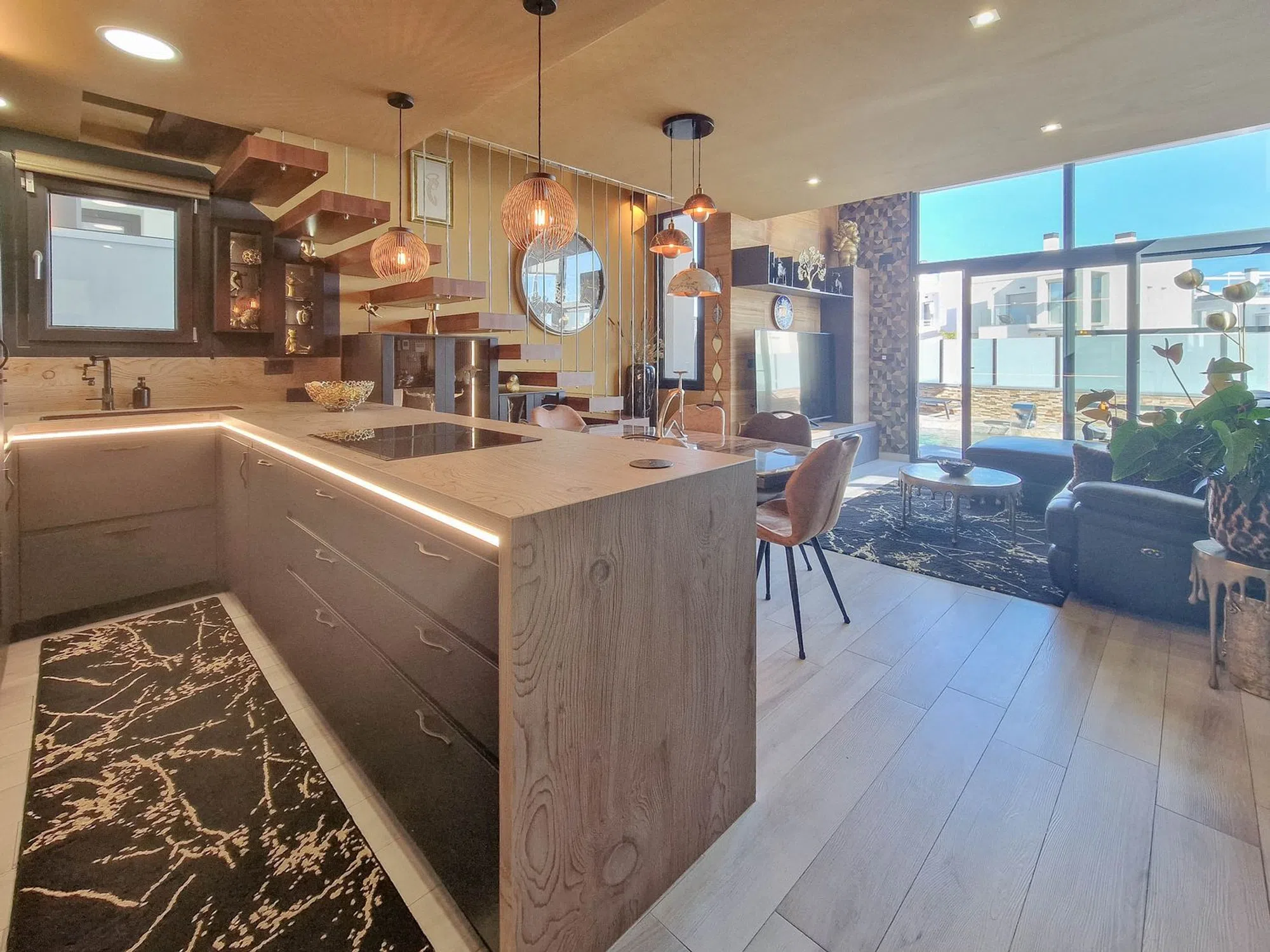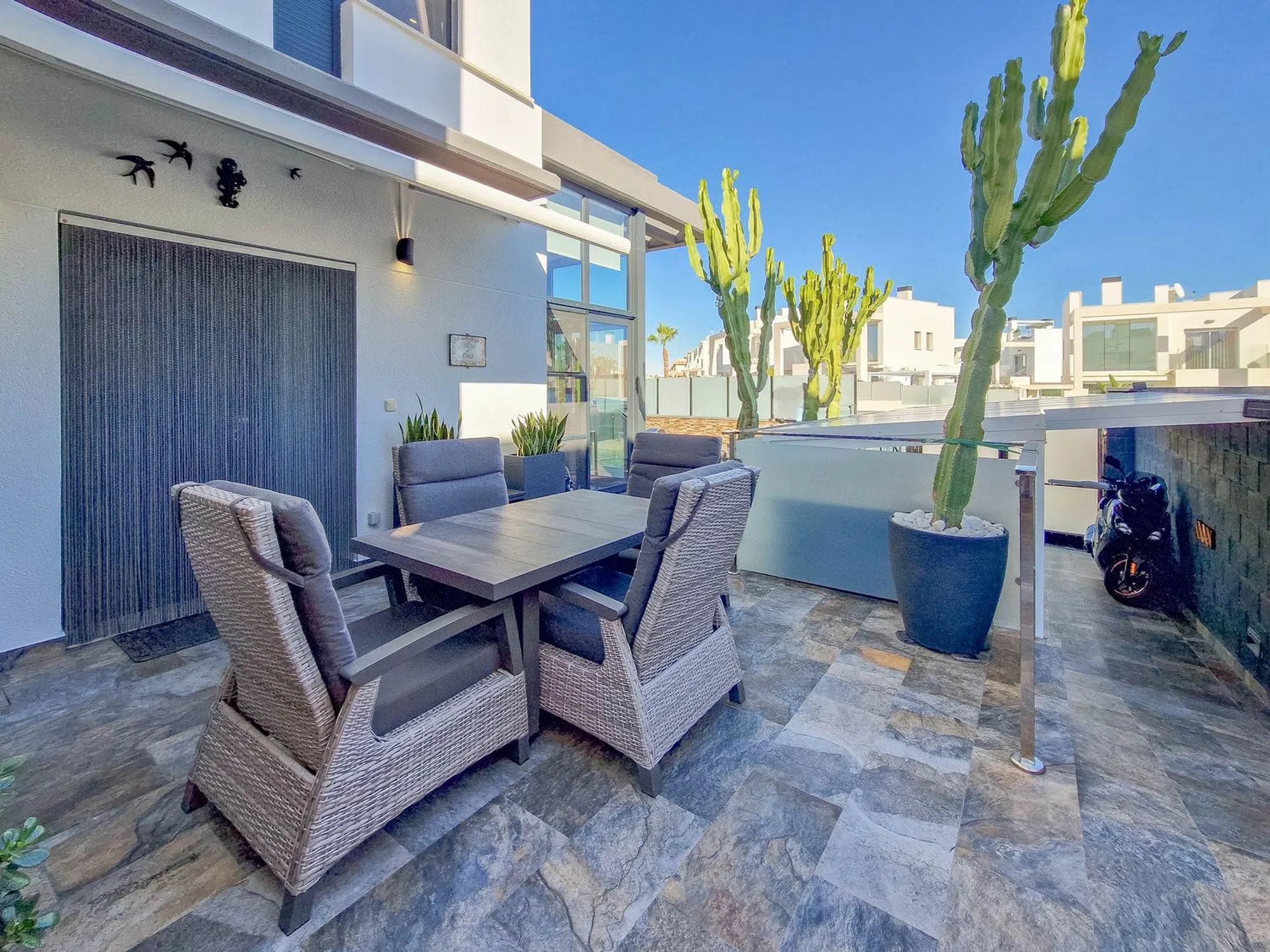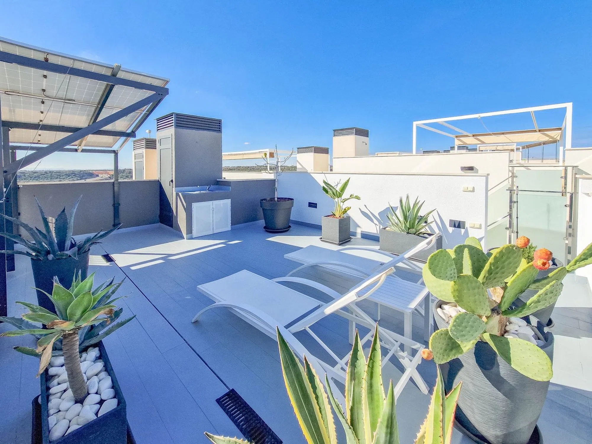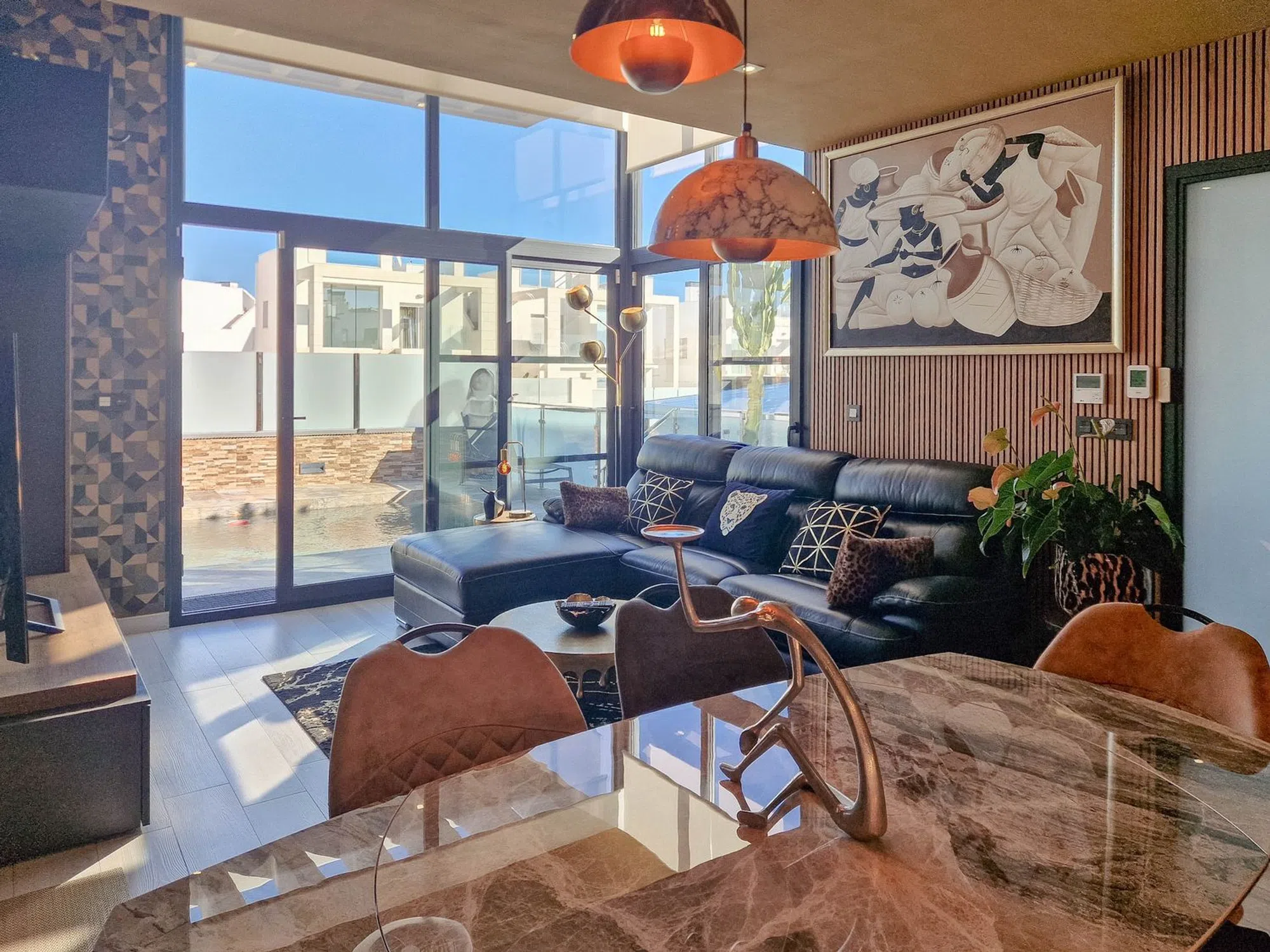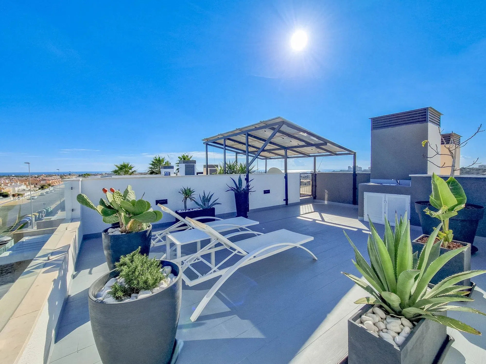 Chalet con piscina privada Hermosa villa en Lomas de Cabo Roig con piscina privada, 3 dormitorios y 3 baños. Su interior destaca por un diseño moderno y decoración elegante con doble altura de techo en la sala de estar y escaleras de bonito diseño hasta la planta superior. Dispone de solárium con vistas al mar, perfecto para disfrutar del clima mediterráneo, paneles solares instalados y aparcamiento dentro de la propiedad. Excelente ubicacion muy cerca de una zona de restaurantes, bares y supermercado. las playas de Cabo Roig a escazos 5 minutos en coche. Una vivienda ideal para quienes buscan estilo, confort y privacidad en una ubicación privilegiada.