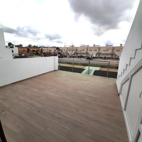 EXCLUSIVO BUNGALOW PLANTA ALTA EN VISTABELLA GOLF – LLAVE EN MANO, NUEVO A ESTRENAR, CON SOLÁRIUM PRIVADO Descubre esta magnífica propiedad ubicada en uno de los complejos residenciales más demandados de la Costa Blanca: Vistabella Golf. Se trata de un bungalow de planta alta de nueva construcción, entregado llave en mano y equipado al más alto nivel. Ideal tanto como vivienda habitual, segunda residencia o inversión para alquiler vacacional. LLAVE EN MANO – ENTRA A VIVIR DESDE EL PRIMER DÍA Esta propiedad está totalmente amueblada y equipada con electrodomésticos nuevos de primeras marcas. Solo tienes que traer tu maleta. Disfruta del confort desde el primer momento, sin esperas ni reformas. CARACTERÍSTICAS DESTACADAS 2 dormitorios dobles con armarios empotrados 2 baños completos de diseño moderno y acabados de calidad Amplio solárium privado con vistas abiertas, ideal para disfrutar del sol todo el año Salón-comedor luminoso, con grandes ventanales y salida directa a la terraza Cocina abierta completamente equipada con muebles altos y bajos, encimera moderna y electrodomésticos integrados Aire acondicionado por conductos (frío/calor) instalado Paneles solares incluidos: hogar energéticamente eficiente y respetuoso con el medio ambiente Sistema de agua caliente eficiente, bajo consumo Piscina comunitaria de diseño contemporáneo con zona ajardinada Plaza de aparcamiento incluida en el precio Orientación suroeste: disfruta de luz natural durante todo el día Materiales de alta calidad, acabados impecables y diseño moderno UBICACIÓN – VISTABELLA GOLF Situado en una zona tranquila pero con todos los servicios cerca, Vistabella Golf es una urbanización privada con seguridad y una cuidada estética mediterránea. En su interior encontrarás: Campo de golf de 18 hoyos Supermercado, farmacia, restaurantes, cafeterías, gimnasio y pistas de pádel Amplias zonas verdes y rutas para caminar o andar en bici A solo 15-20 minutos en coche de las playas de Orihuela Costa, Torrevieja y Guardamar Excelente conexión con la AP-7 y fácil acceso a aeropuertos de Alicante y Murcia LA CASA QUE BUSCABAS, YA TE ESTÁ ESPERANDO Una propiedad llave en mano como esta no sale al mercado todos los días: nueva, completamente equipada, con vistas, luz, plaza de parking, piscina y en un entorno seguro, verde y moderno.