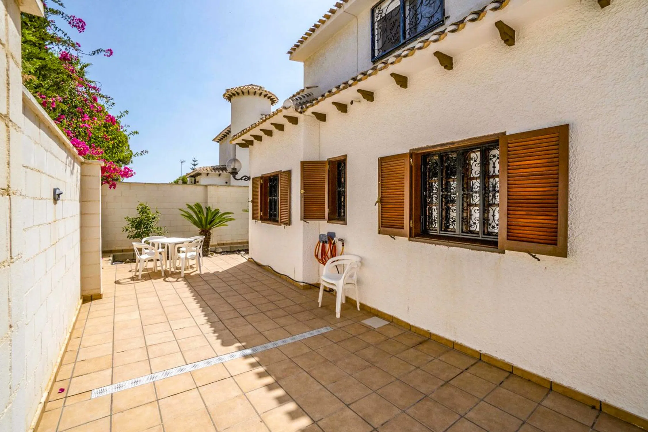 Casa cerca de la playa con piscina En la popular zona de La Zenia, a poca distancia a pie de hermosas playas de arena, restaurantes populares y cerca del centro comercial La Zenia Boulevard. Presentamos una encantadora casa con amplias terrazas orientadas al suroeste y piscina privada. La vivienda está bien cuidada y se distribuye en dos plantas con cuatro dormitorios, todos con armarios empotrados, y dos baños. Además, cuenta con un amplio salón con chimenea y una cocina contigua con lavadero. Debajo de la casa hay un garaje privado con buen espacio de almacenamiento. ¡Contáctanos para más información!