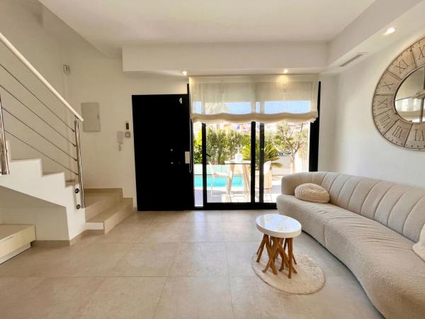 ✨ Características destacadas: 90 m² construidos distribuidos en dos plantas. Jardín privado de 54 m², ideal para disfrutar del aire libre todo el año. Piscina privada con fuente decorativa, perfecta para relajarte con estilo y frescura. 3 dormitorios amplios y 3 baños modernos con calefacción por suelo radiante. � Zona exterior privilegiada: Solárium con vistas despejadas: disfruta del sol y la tranquilidad. Balcón, zona de barbacoa y jardín cuidado: espacios ideales para reuniones familiares y momentos de relax. � Ubicación excelente: Situada en una zona residencial tranquila con acceso fácil a: Supermercados Colegios Instalaciones de ocio.